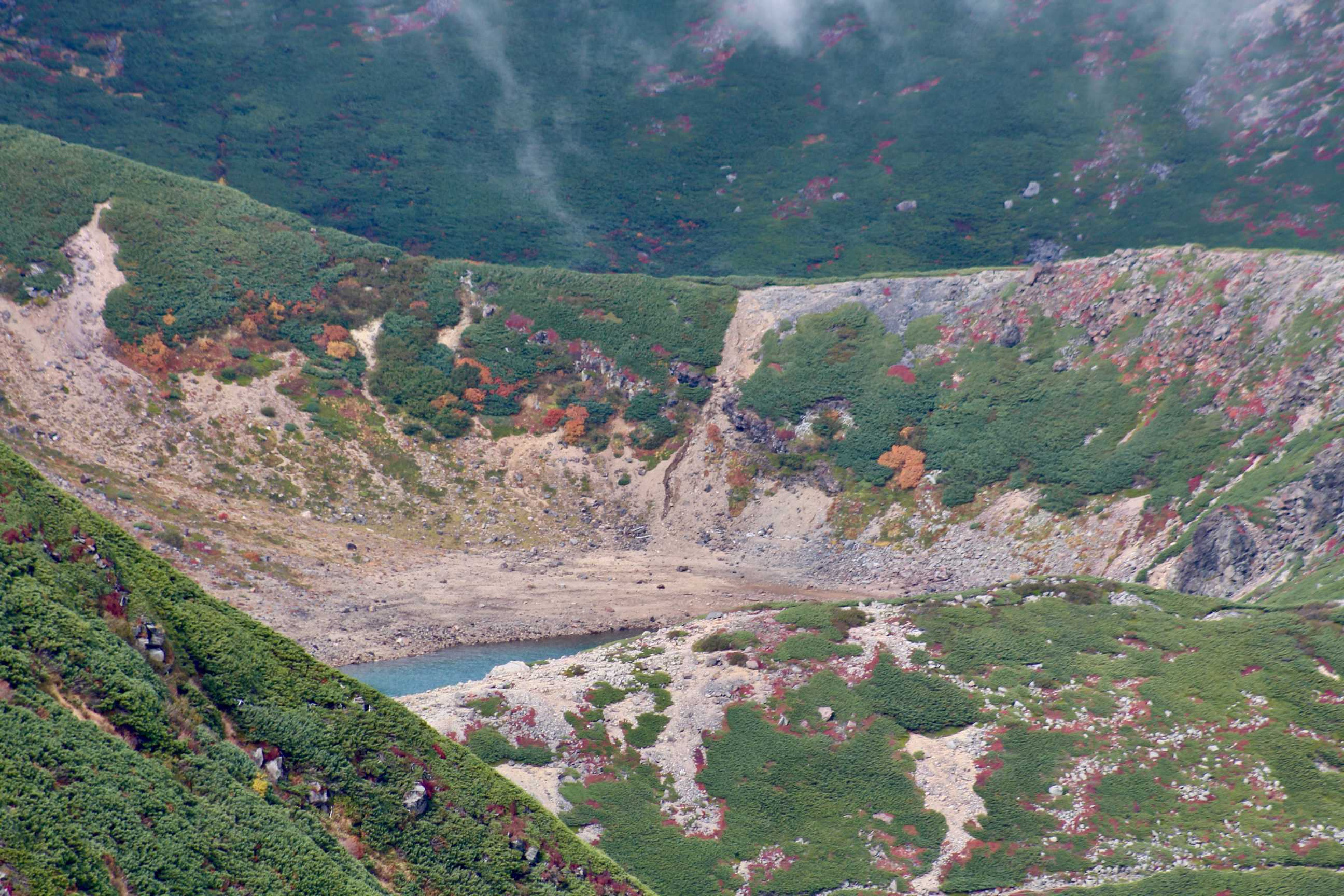 見えました!僅かなコバルトブルーの水を湛えた三の池!