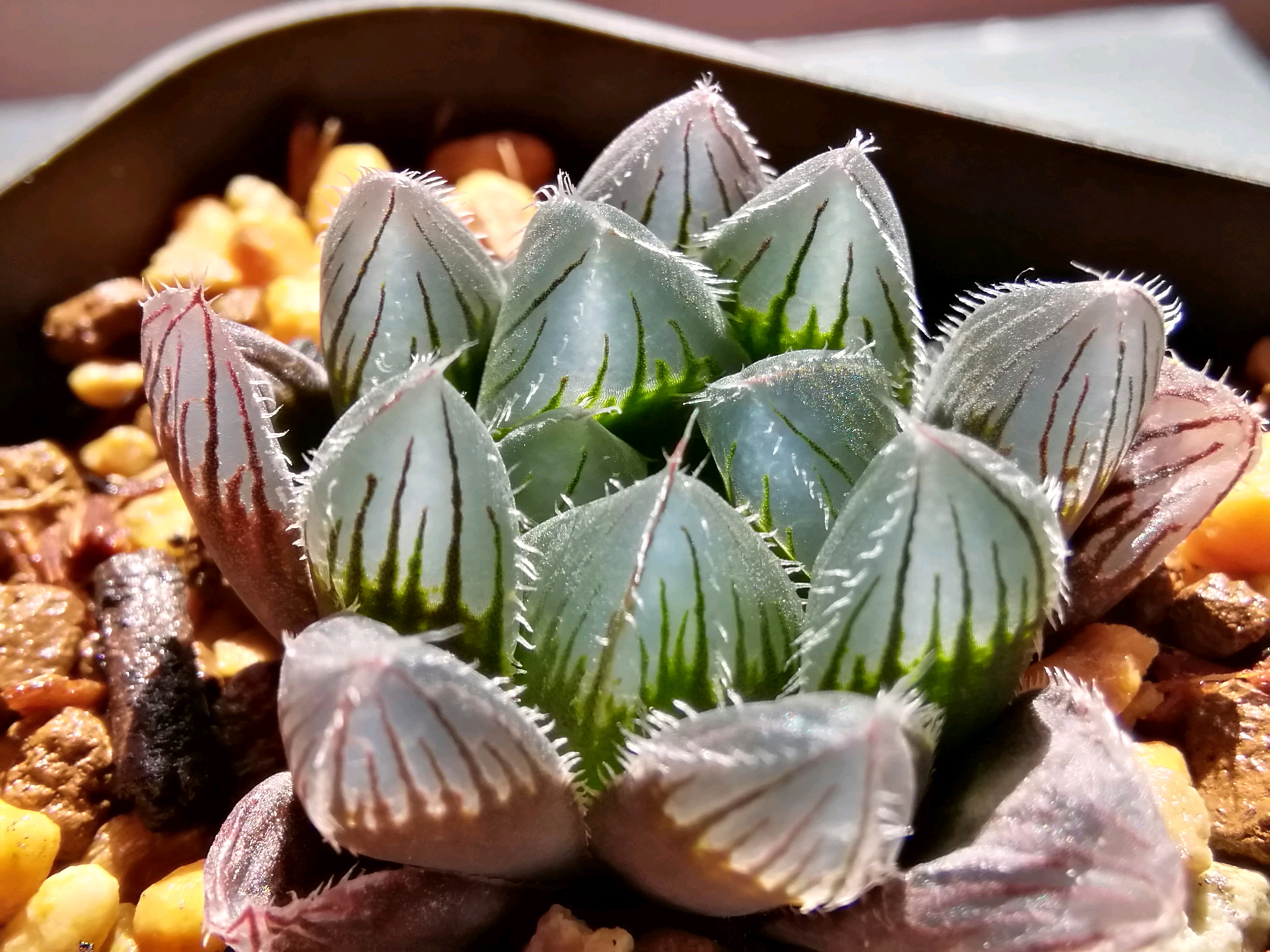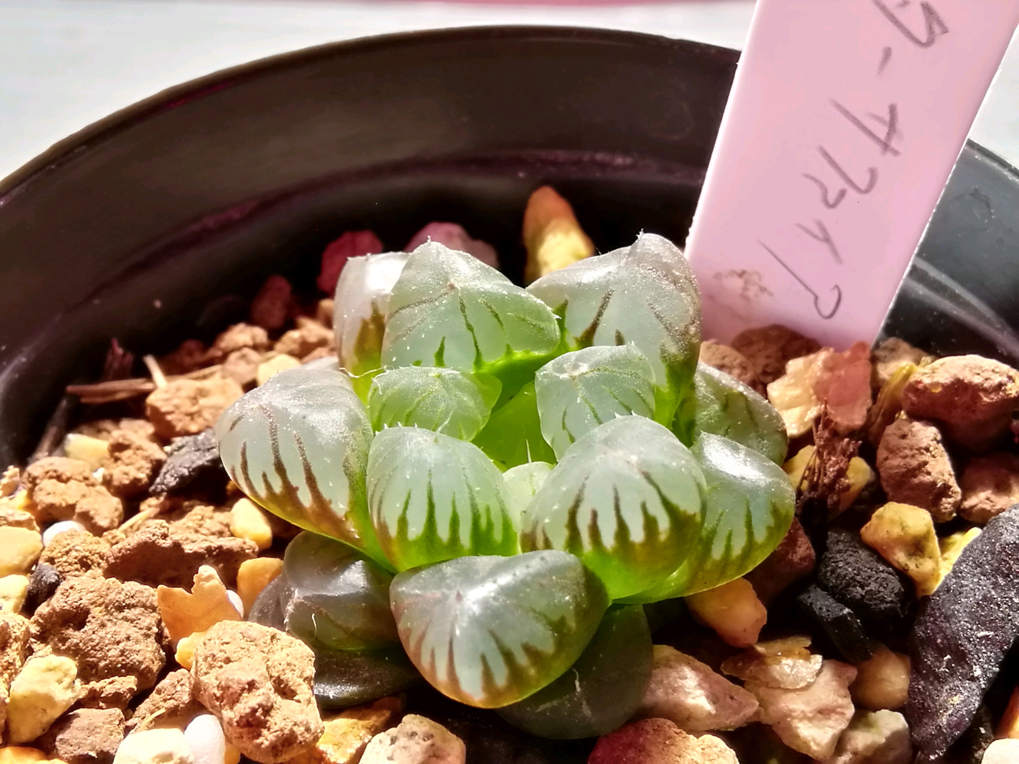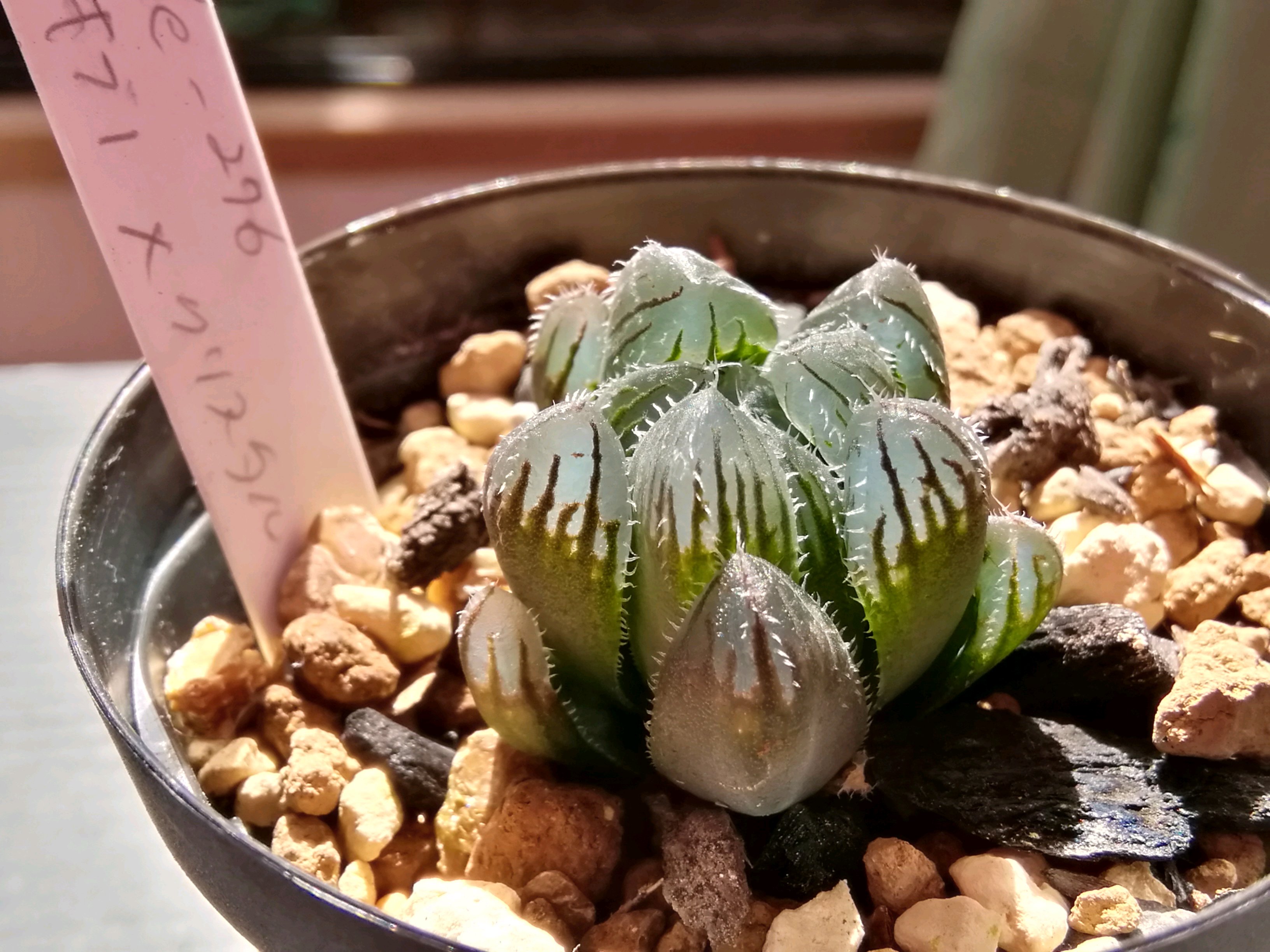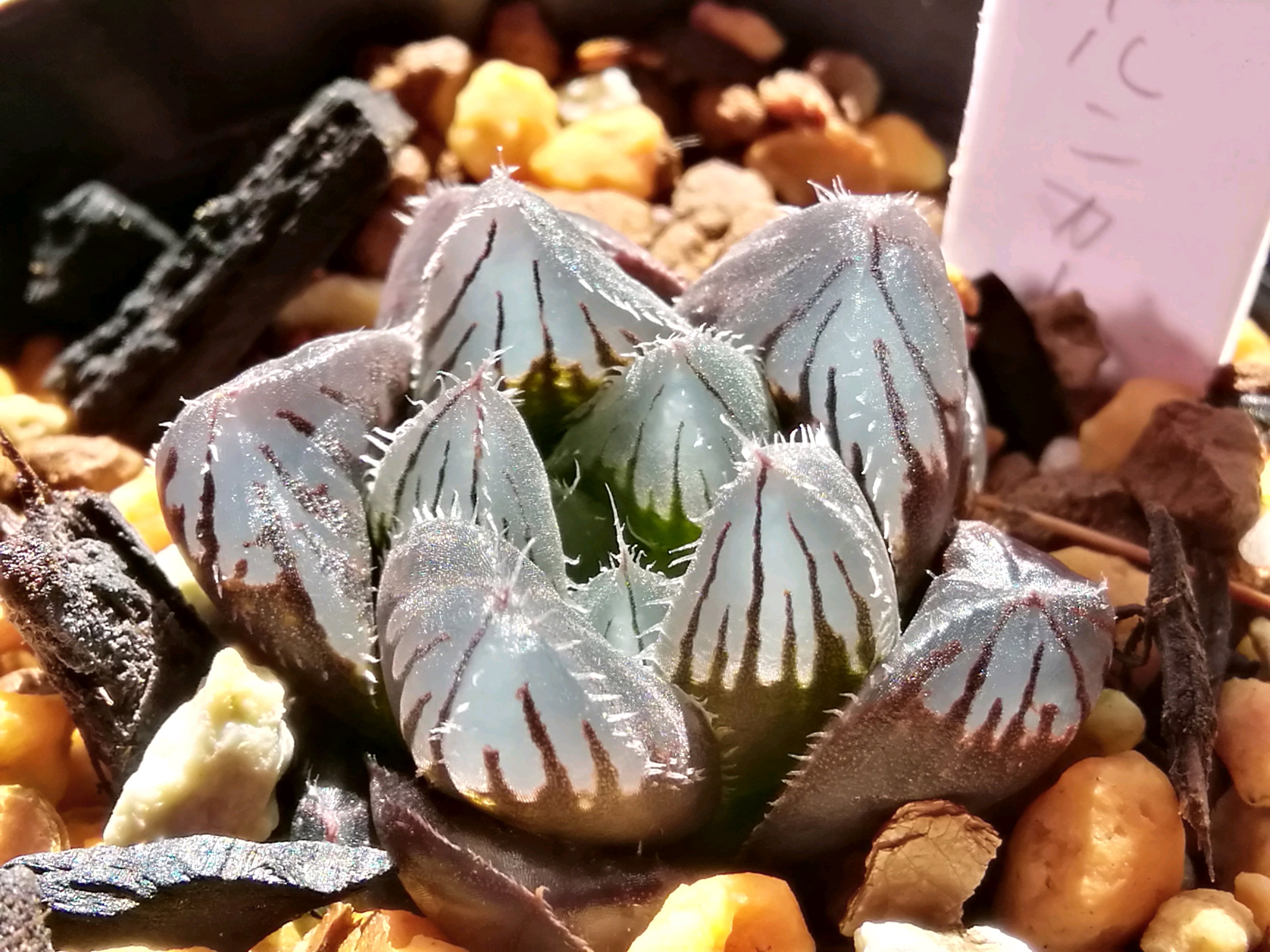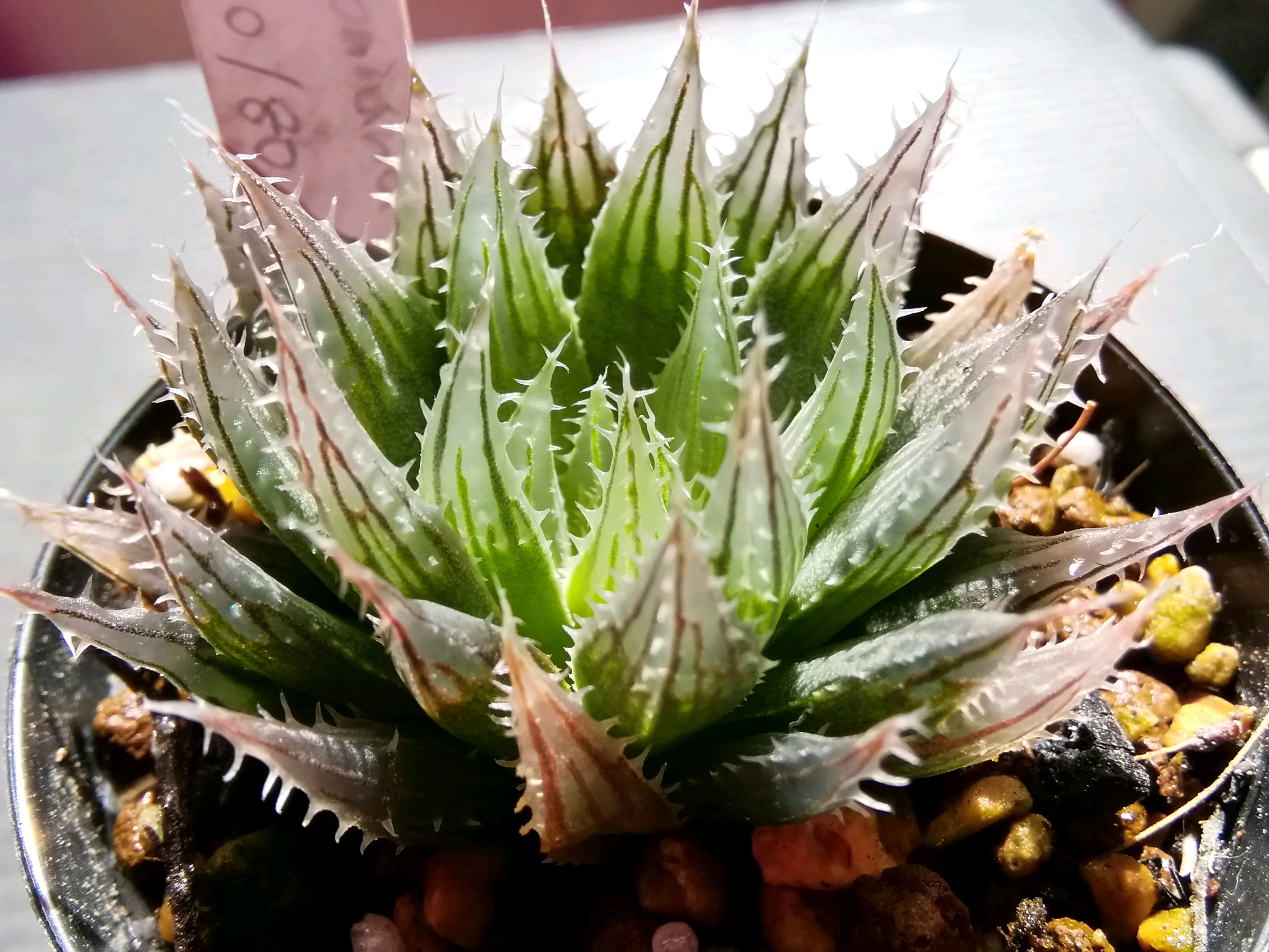 H. oculata (H. picturata to transiens) MBB 6789 Komdomo ピクツラータとトランシエンスの中間種、ってことですかね。株は大きくならず小さいままガンガン子株を吹く種類。絶賛徒長中。