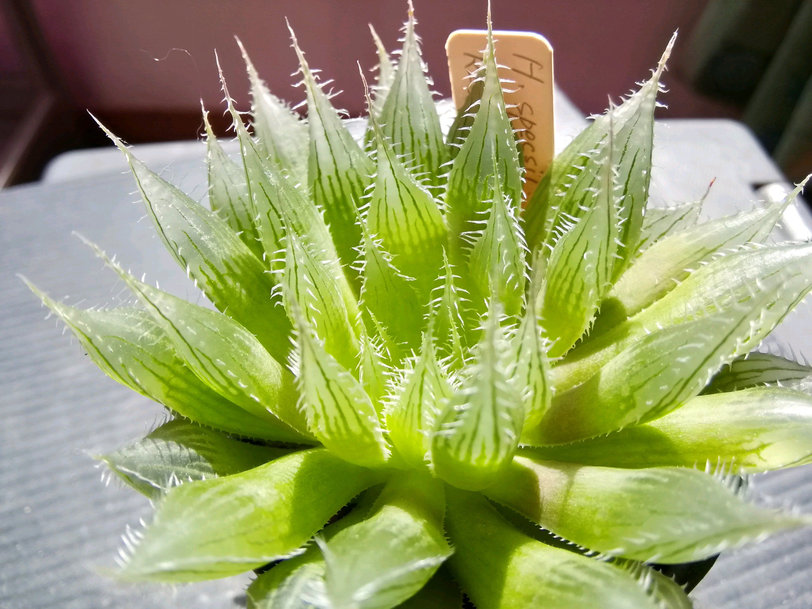 H. aquea n.n(srecksii) DMC s.n hill, 10km N of Waterdown Dam 人気のアクエア。ただし、本来アクエアは鋸歯のない個体を指すらしいのでそういう意味ではアクエアを名乗るのでなくスペックシーの方がいいのかも。私の持ってる元の株は実生株のため個体差で鋸歯がでたものと推定。コンディションを整えれば大きな窓に水を連想させる蒼碧の美しい窓が大変美麗