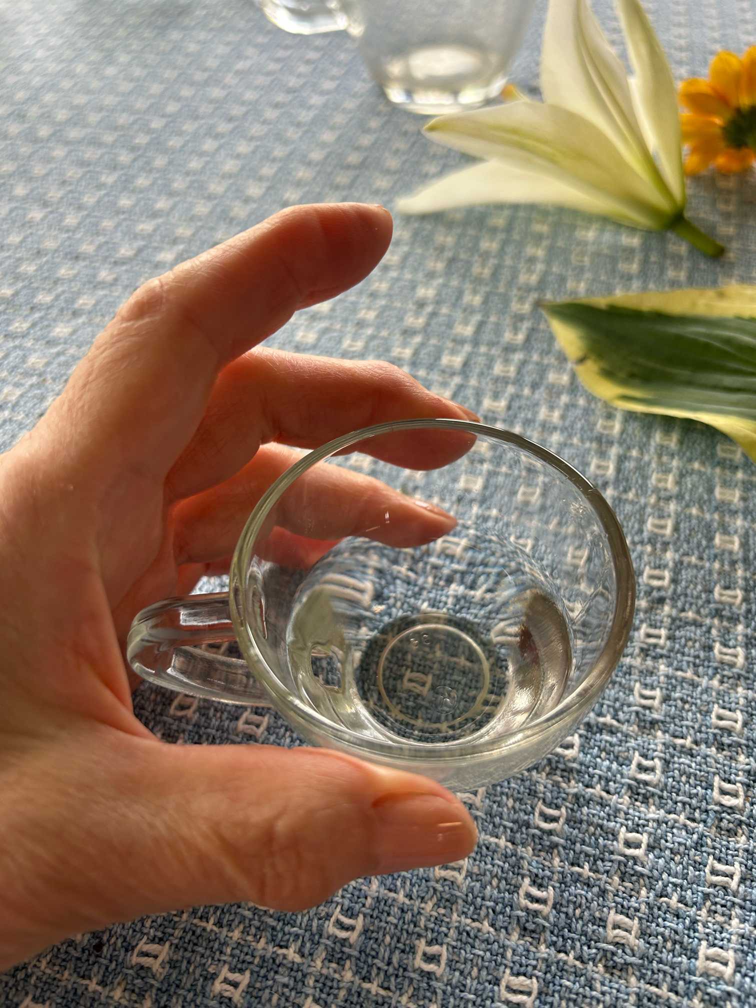 カップの持ち手をたがいちがいにするのがバランスの秘訣です。