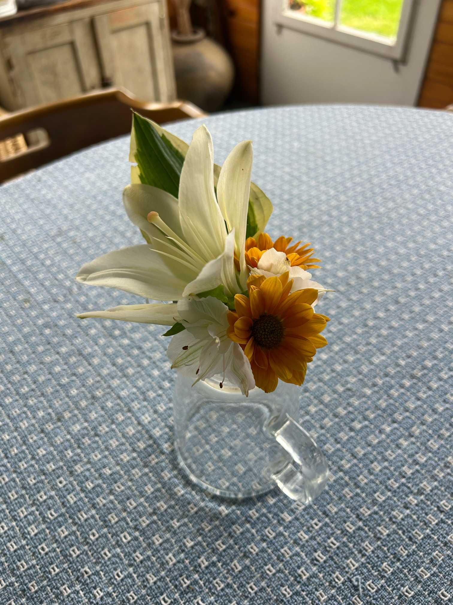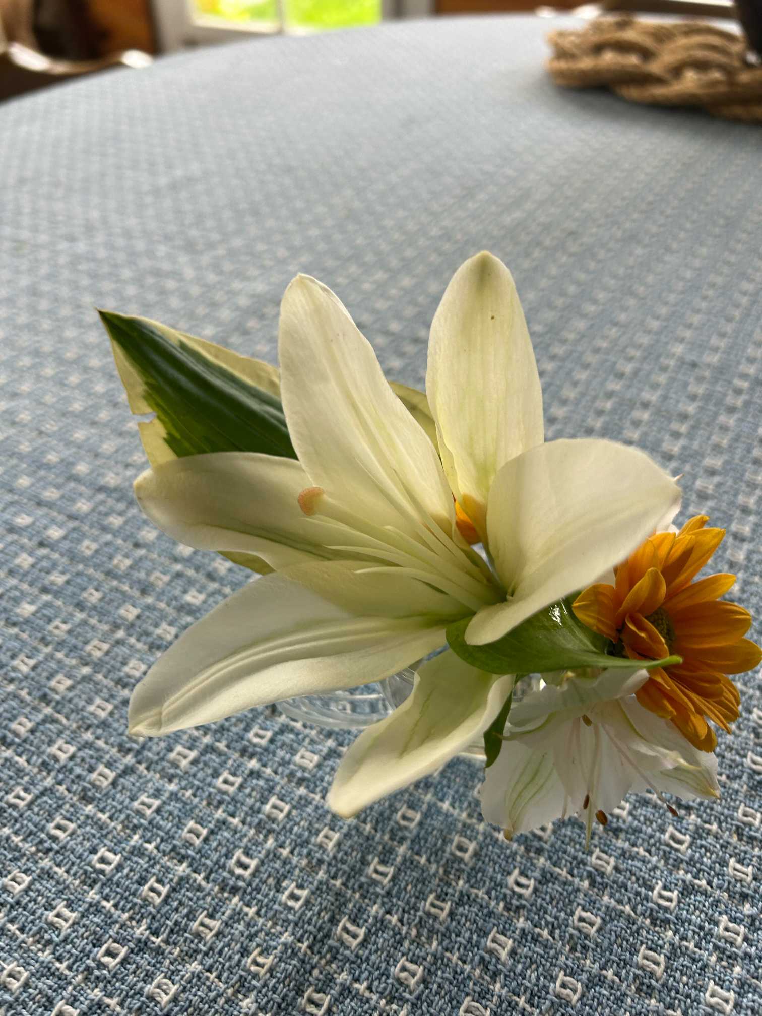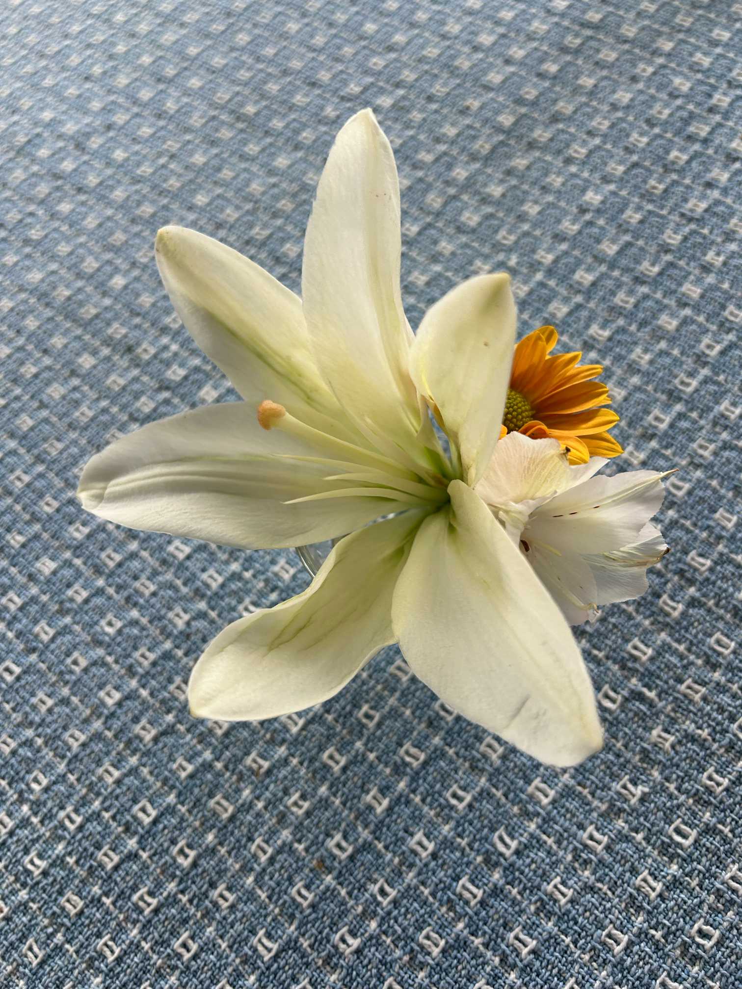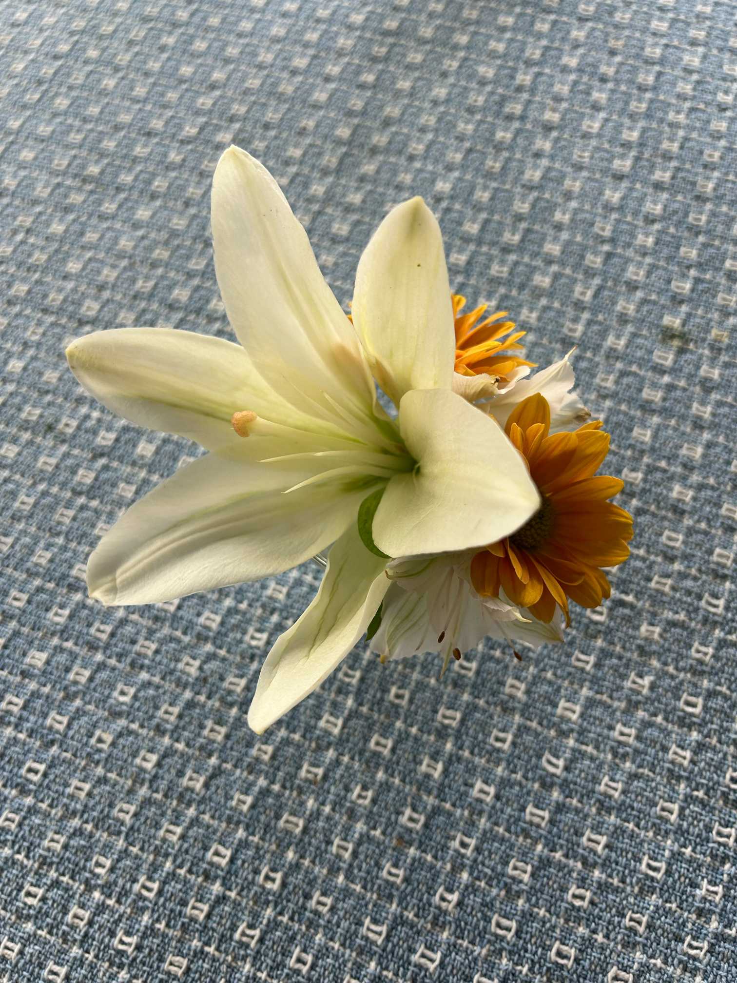 生け花のクラスで花を移動する時、新鮮なのに折れたりすることがあります。少ない花でリサイクルアレンジ作ります