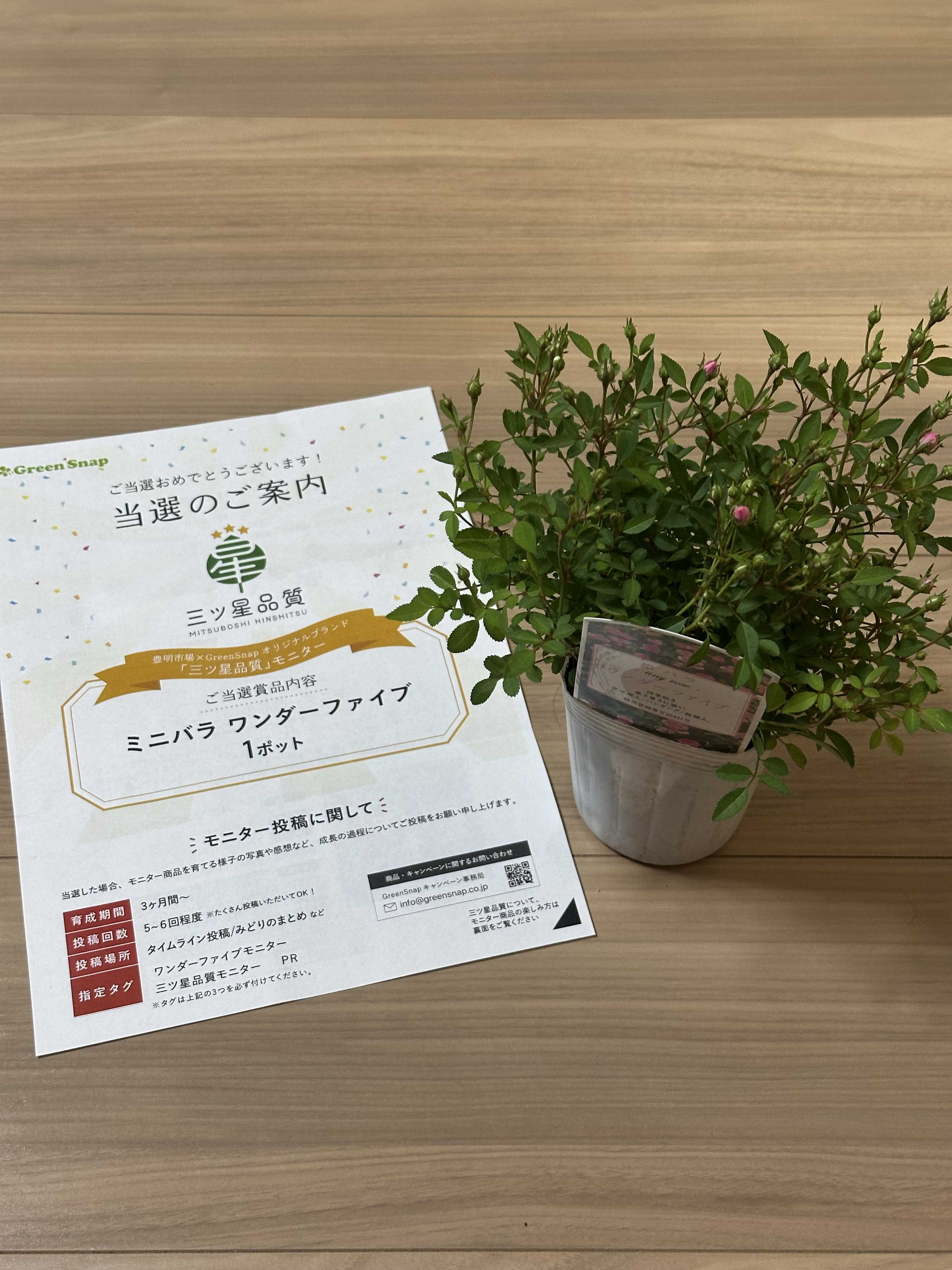この度「三ツ星品質 ミニバラ ワンダーファイブ」のモニターに選出頂きまし