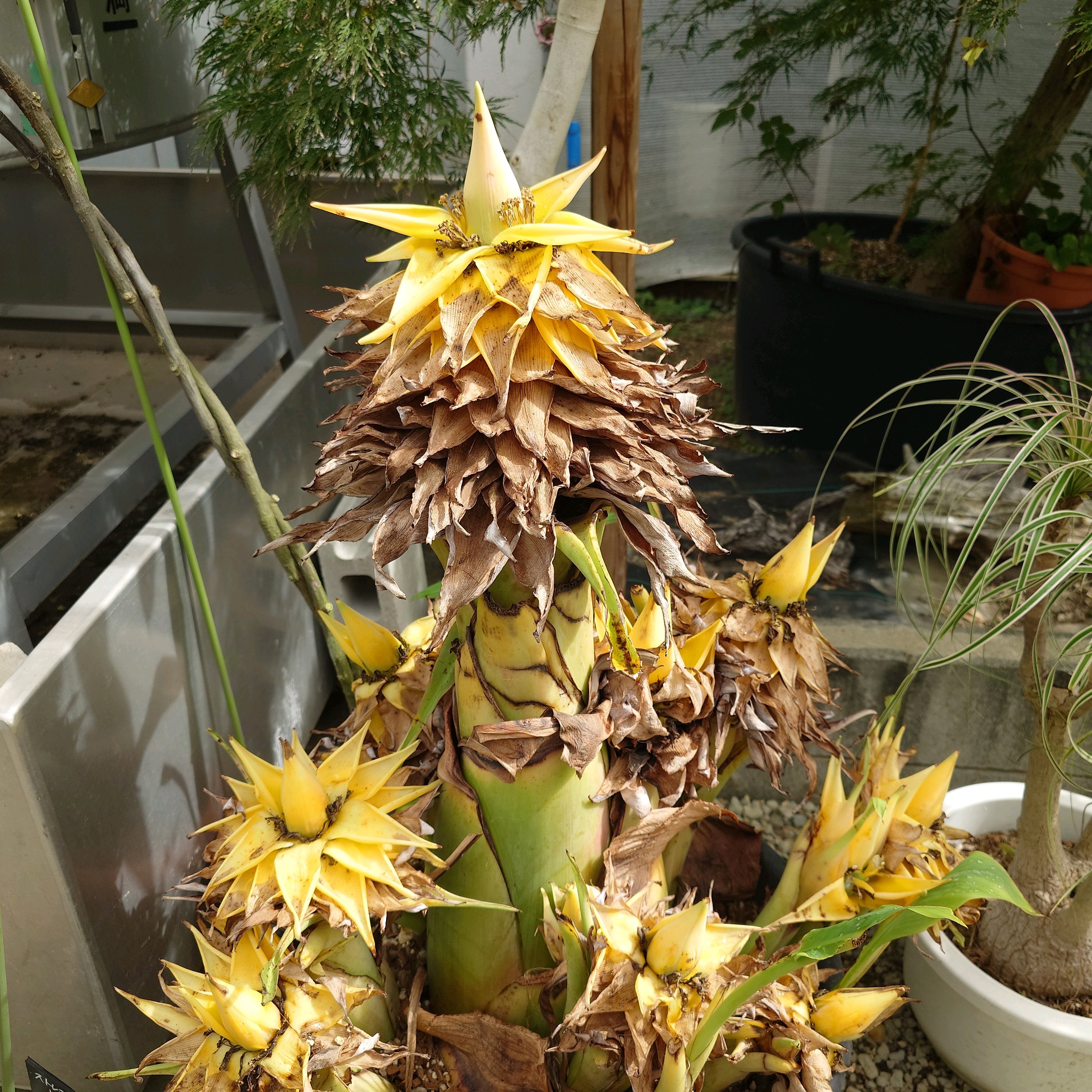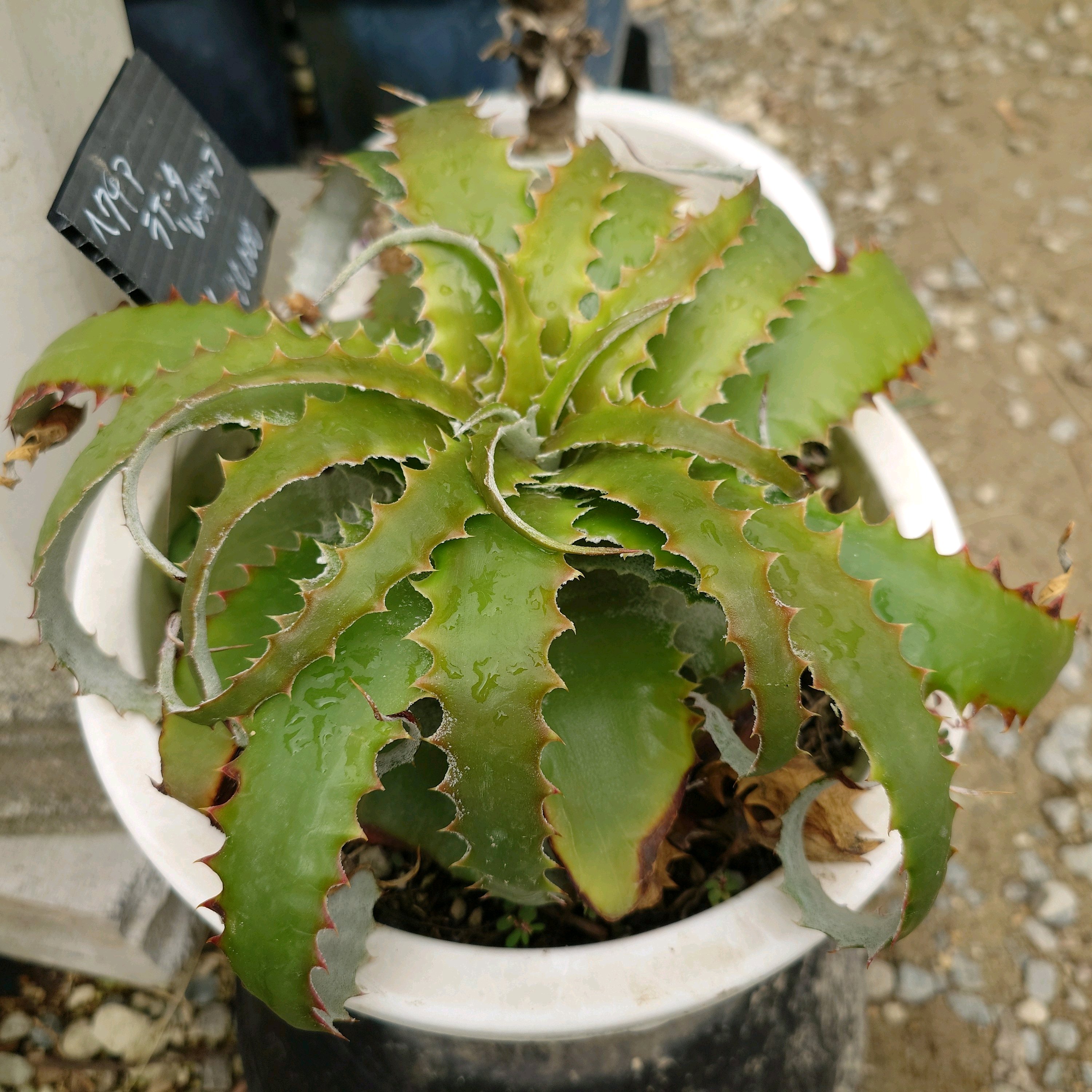 2シーズン、1年半でここまで大きくなるとは。一回結実性なので、花が咲いたら枯れて、子株が出るんですが、花は咲いていません。はたして、どうしたもんですかね。。。