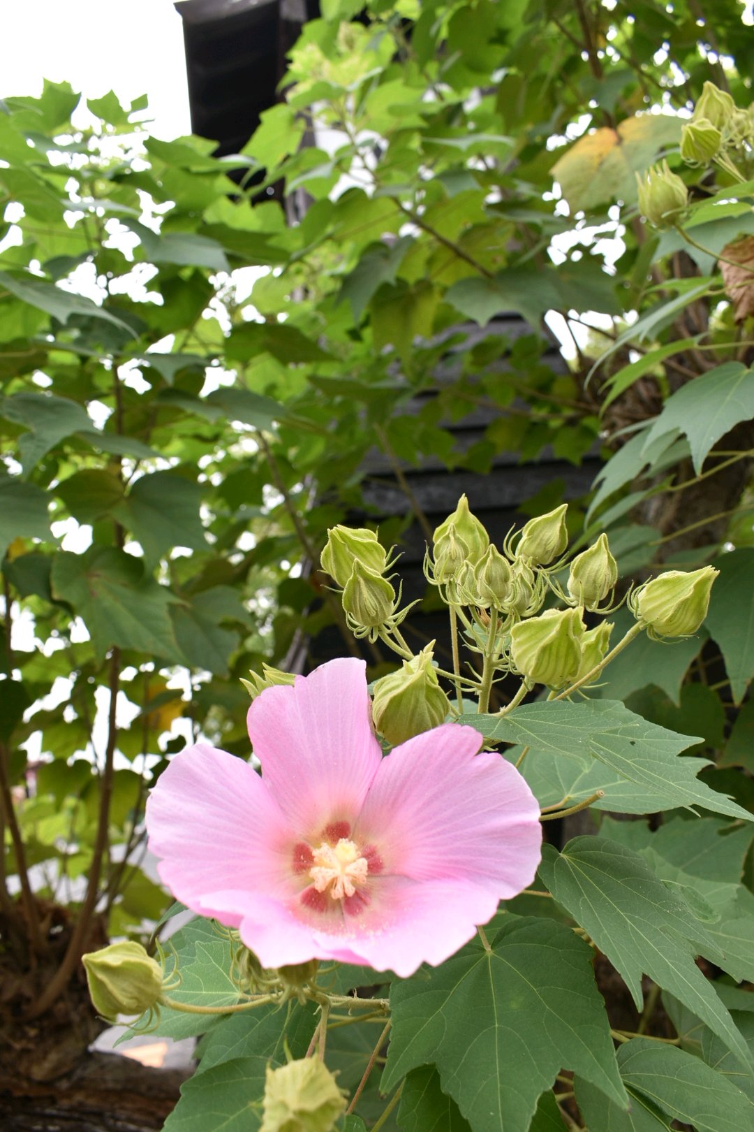 うどん屋さんの前に咲いてたムクゲ