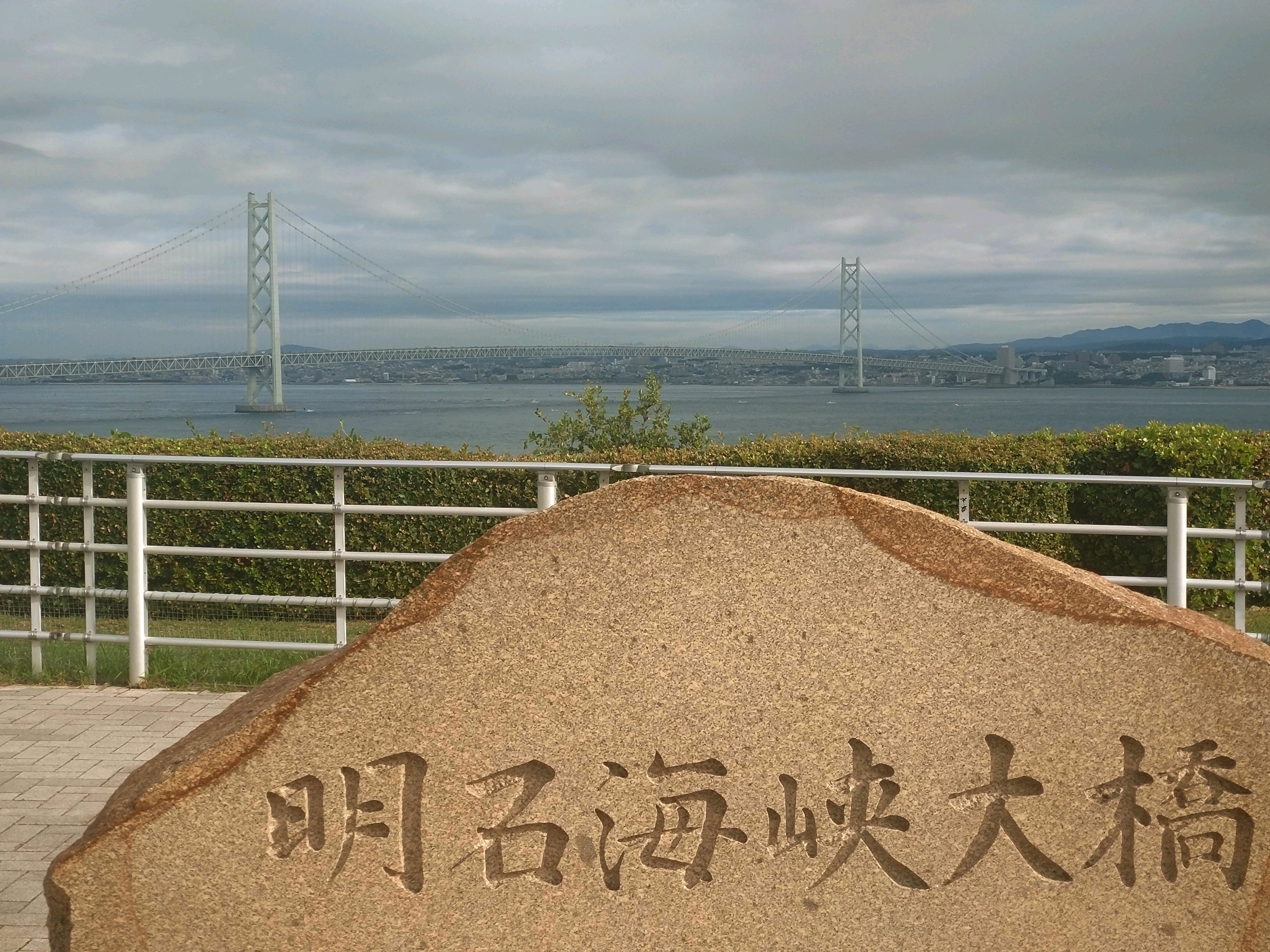 曇り空ではっきり見えませんが、明石海峡大橋が存在感あります‼️
