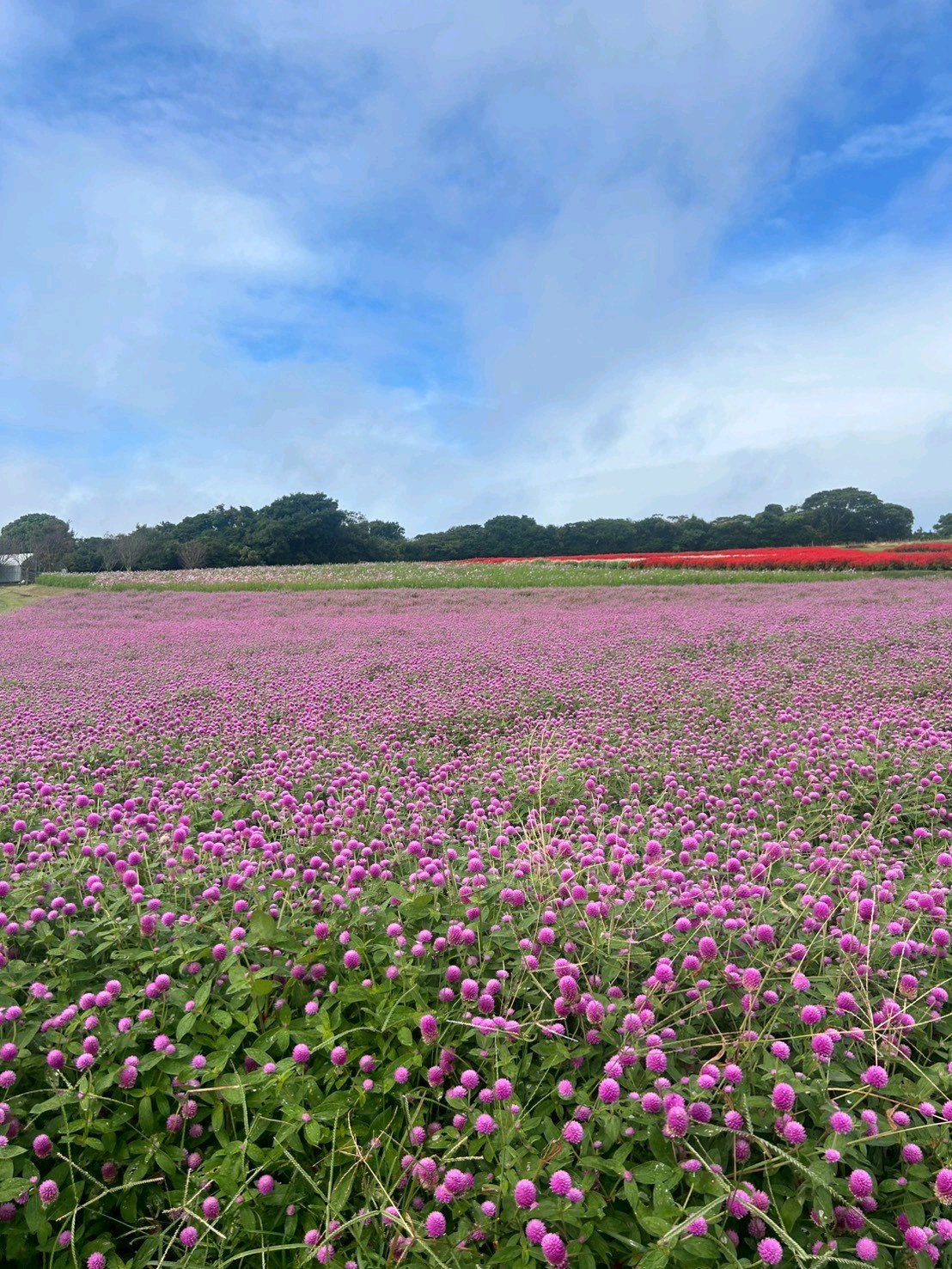 千日紅のピンクのじゅうたんと青い空
