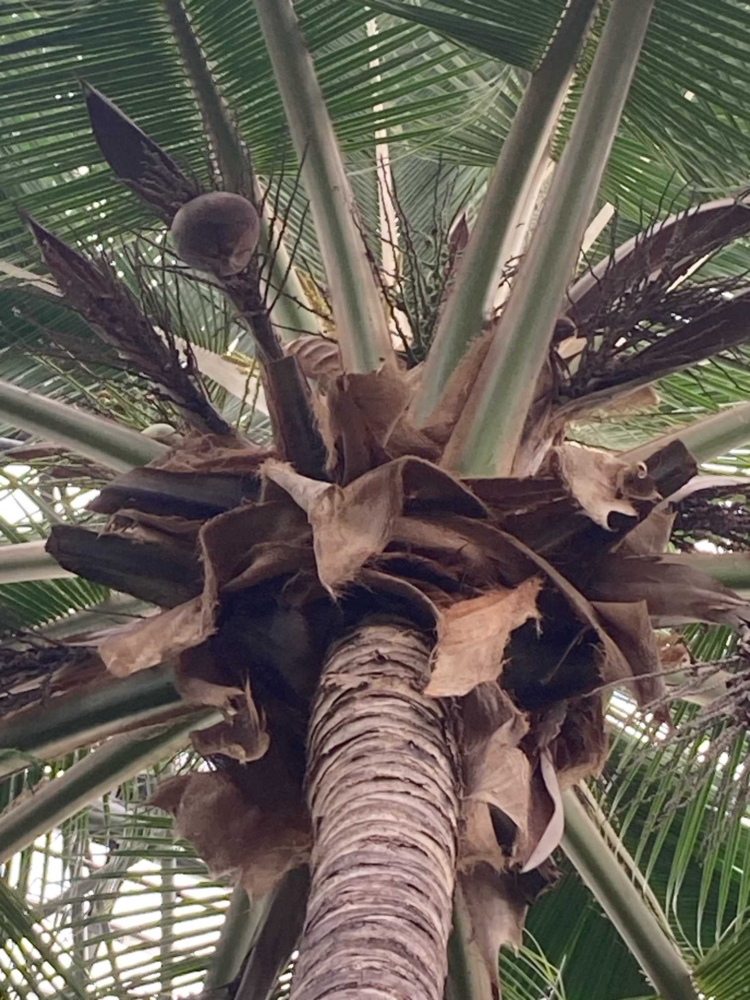 実がなっているので、頭上注意と書かれていたココヤシ😆