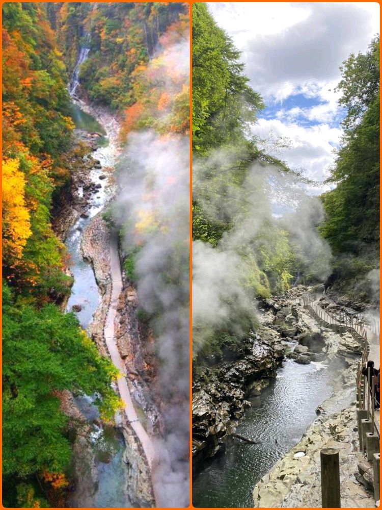 秋田県湯沢市、小安峡♨🍂🍁期待したけど🌿🌳緑でした~~^^;