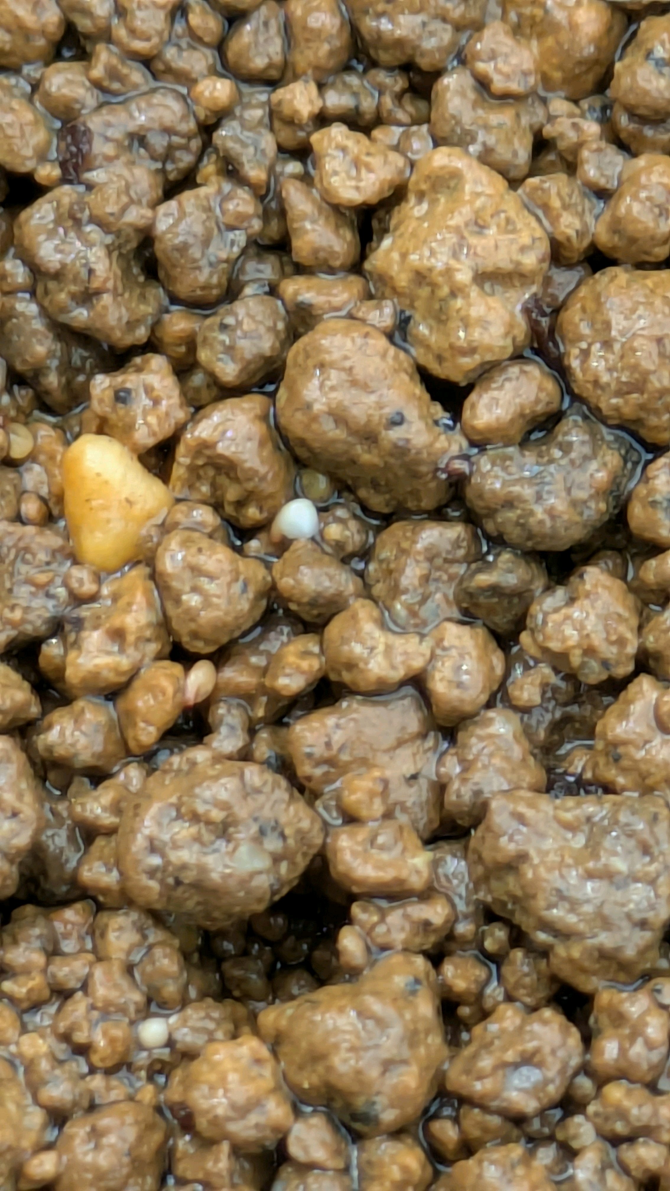 今日、リトープス、コノフィツムミックスの発芽を確認!もしかしたら、カリキュラスも、と思いカメラで拡大。