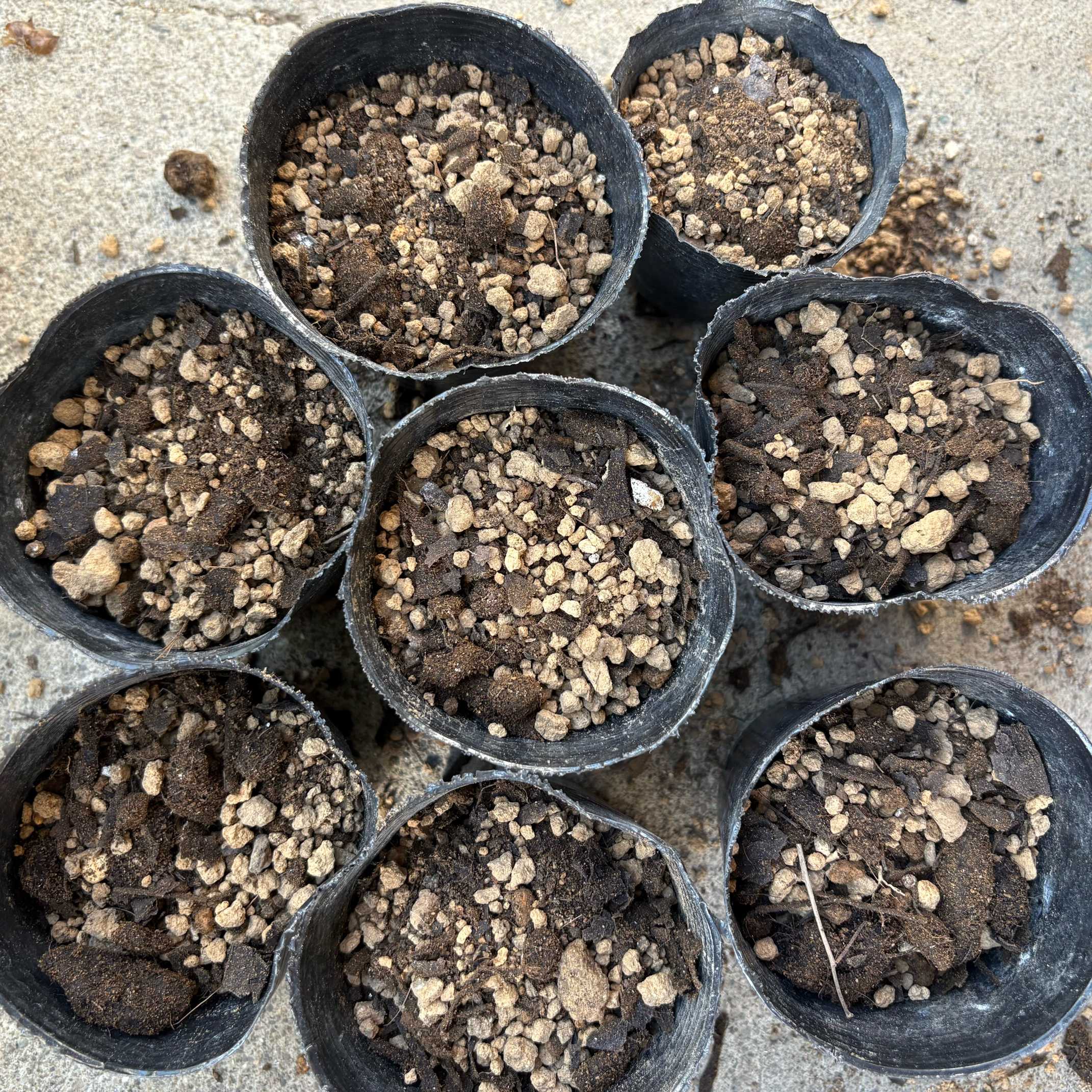 一粒の球根がどんな育ち方をするか、まずは一粒ずつポリポットに植えてみました