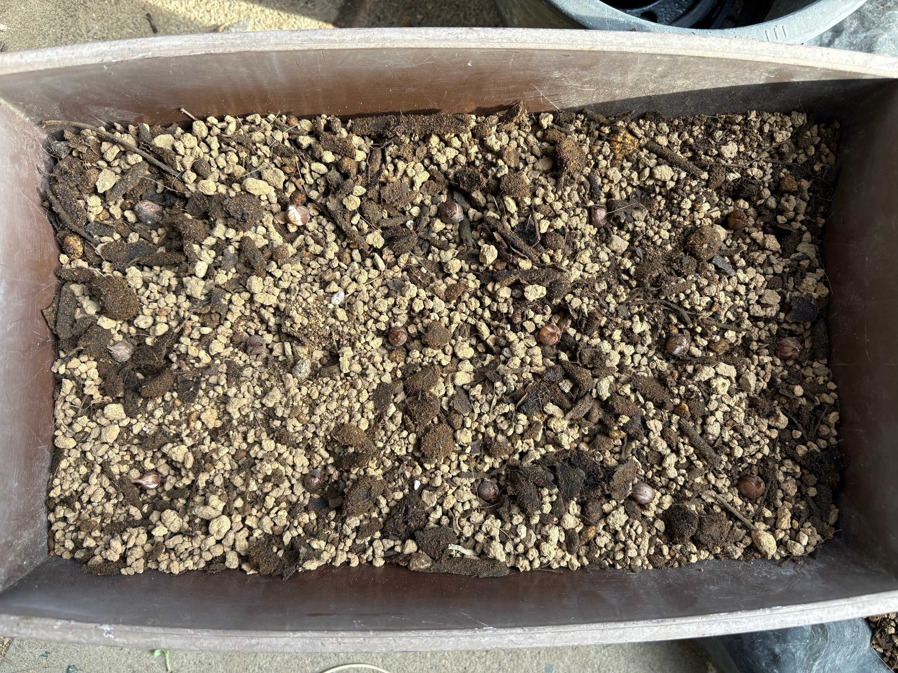 ●モリモリにお花を咲かせたくて詰め気味に球根を植えた。残った小さい球根がもったいなくて、さらに上から追い球根。