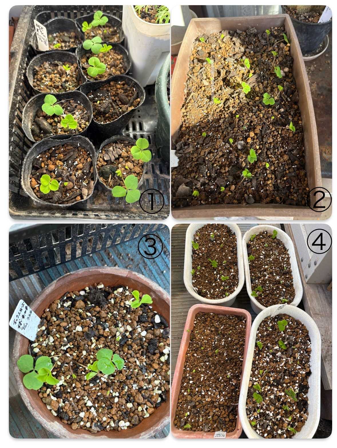 ③9月21日④9月22日に植え付けた鉢発芽確認しました。植え付けから2週間ちょっとくらいです。