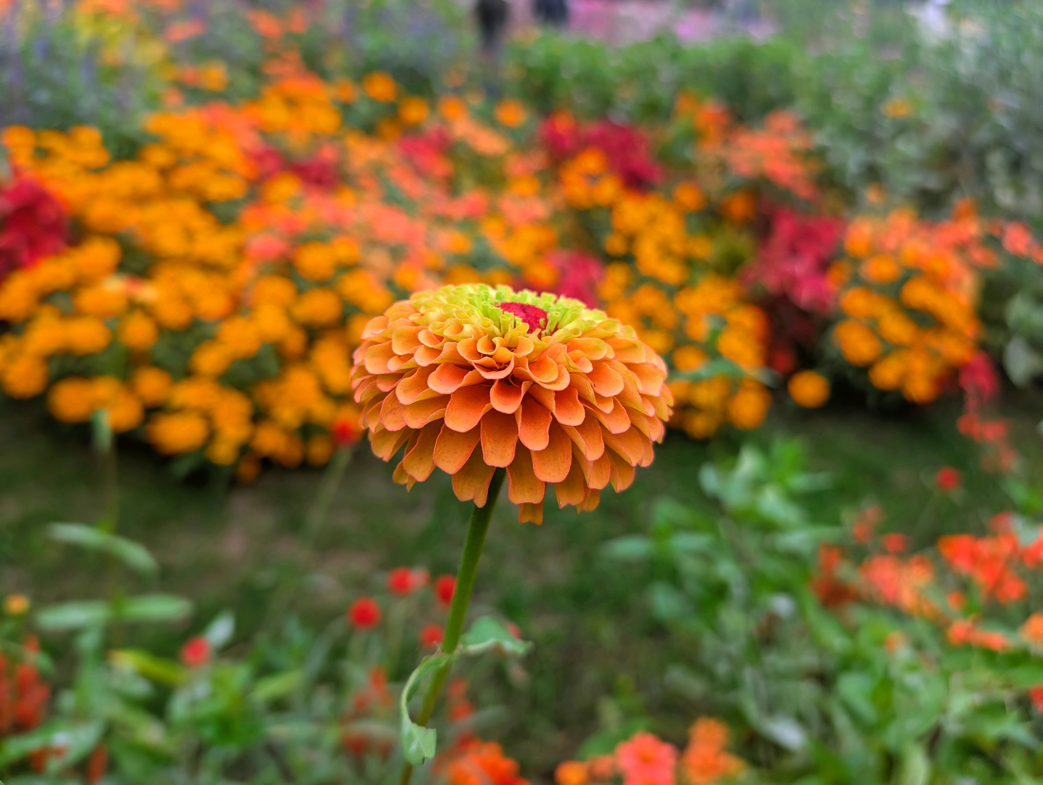 百日草で出来たオレンジの絨毯が綺麗でした
