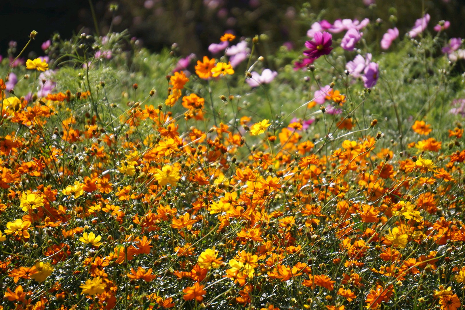 今年で3年目で、初めてキバナコスモスも蒔いたと