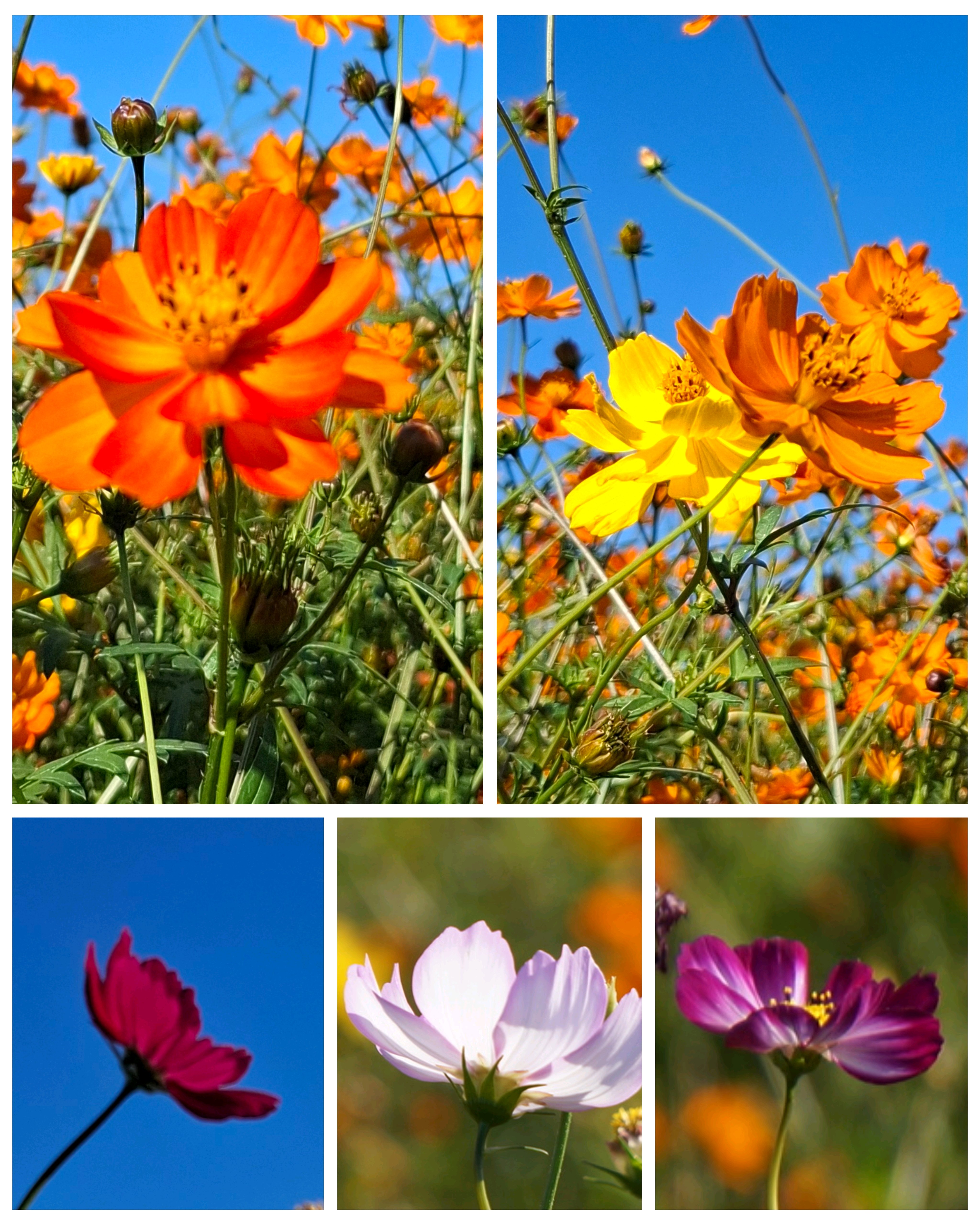 秋桜🌿🩷💗🤍🌿の濃淡も、黄花コスモス🌿🧡💛🌿の濃淡も、グラデーションが見事😍