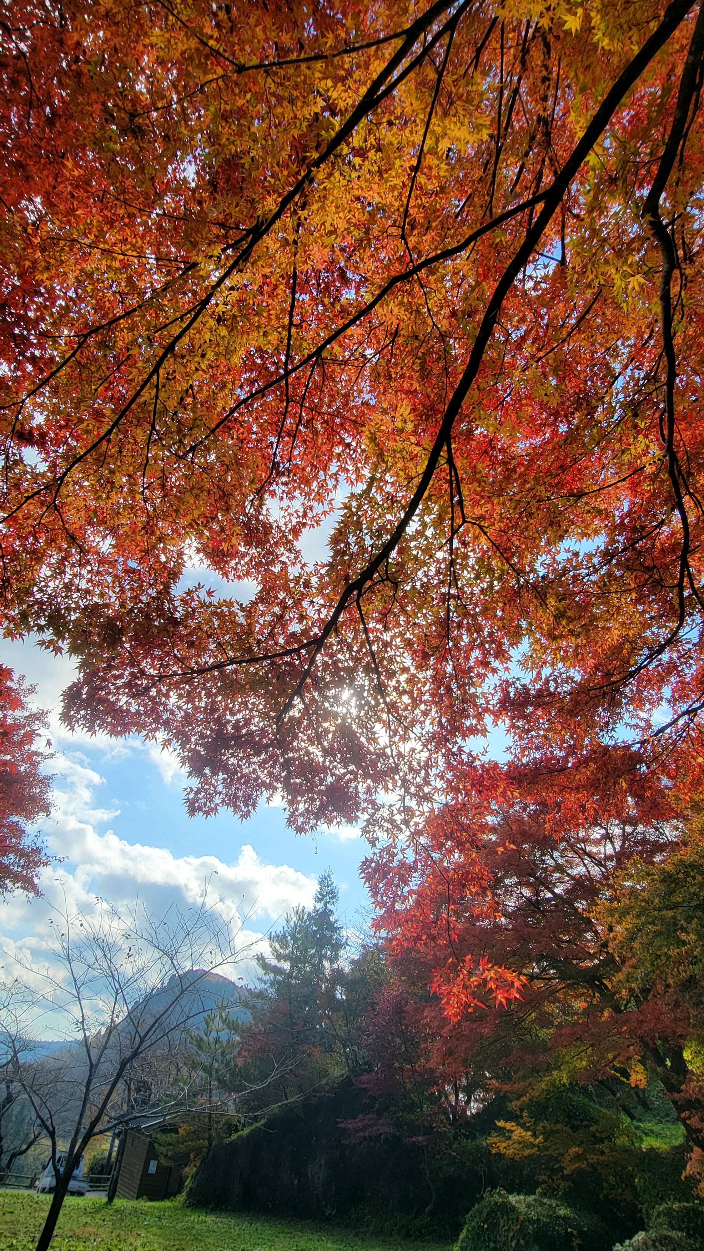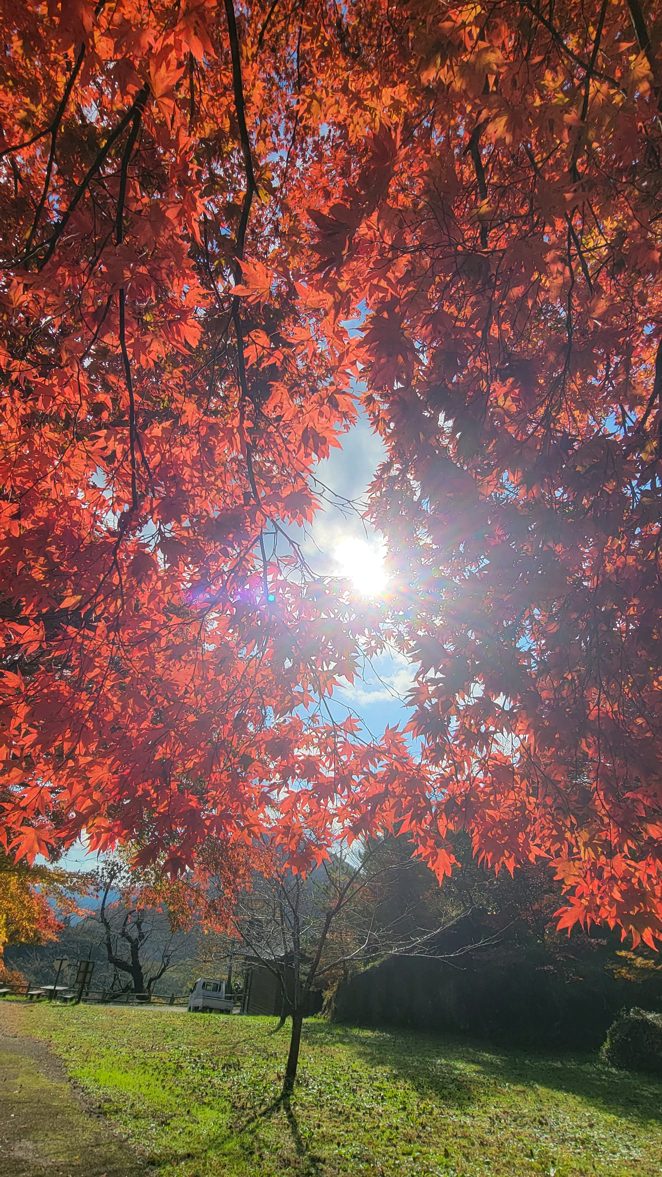 紅葉🍁の間から太陽☀️