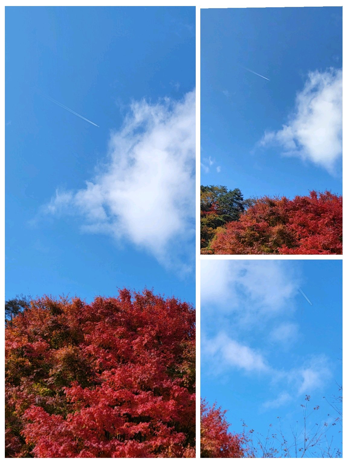 紅葉🍁と遠~~~くに飛行機雲✈️