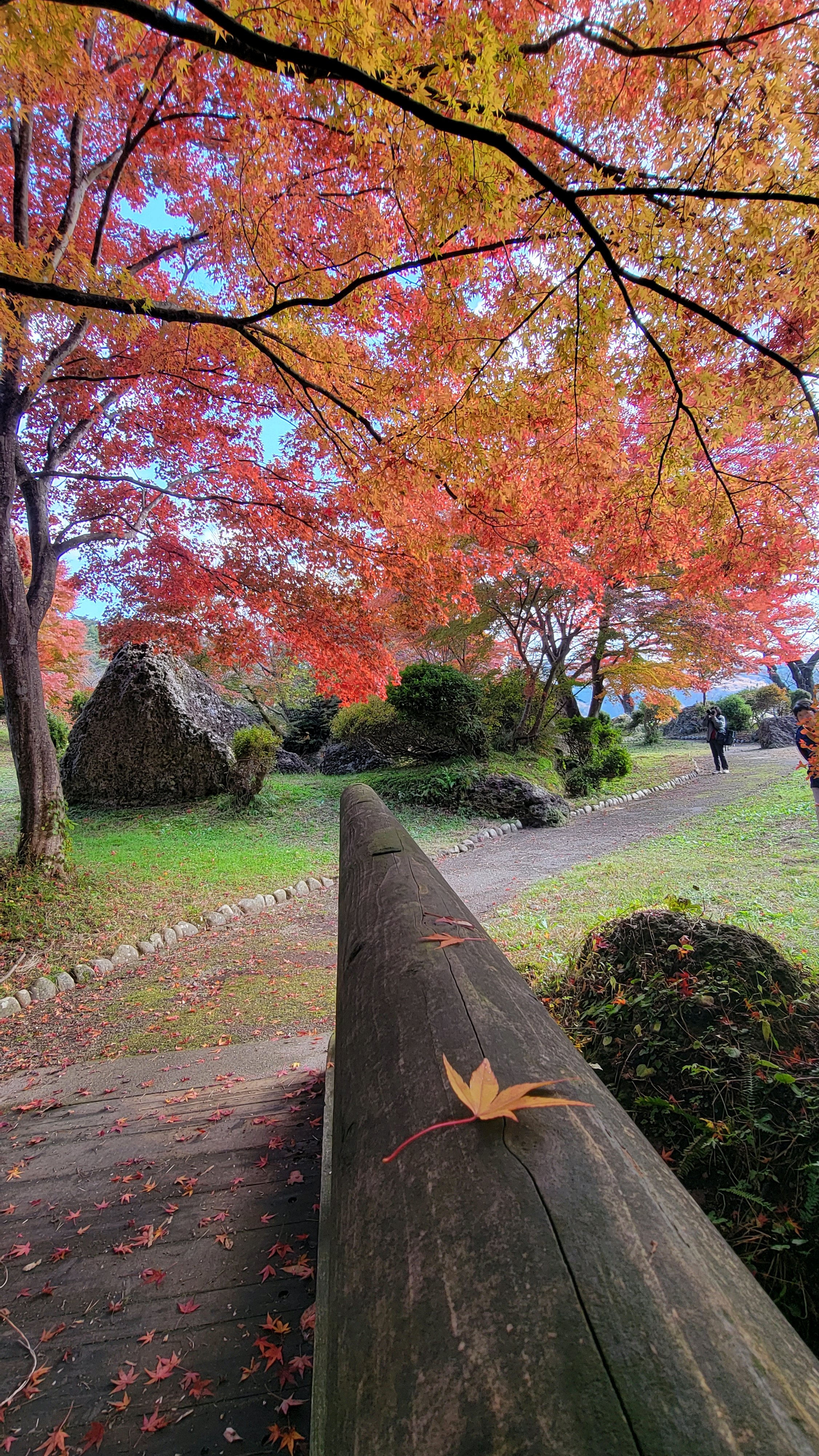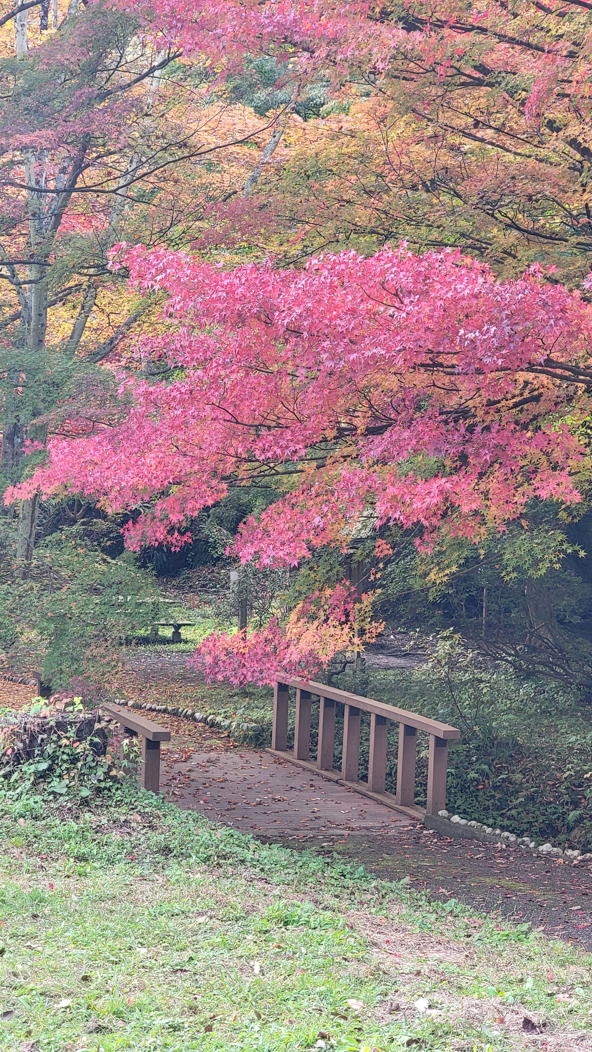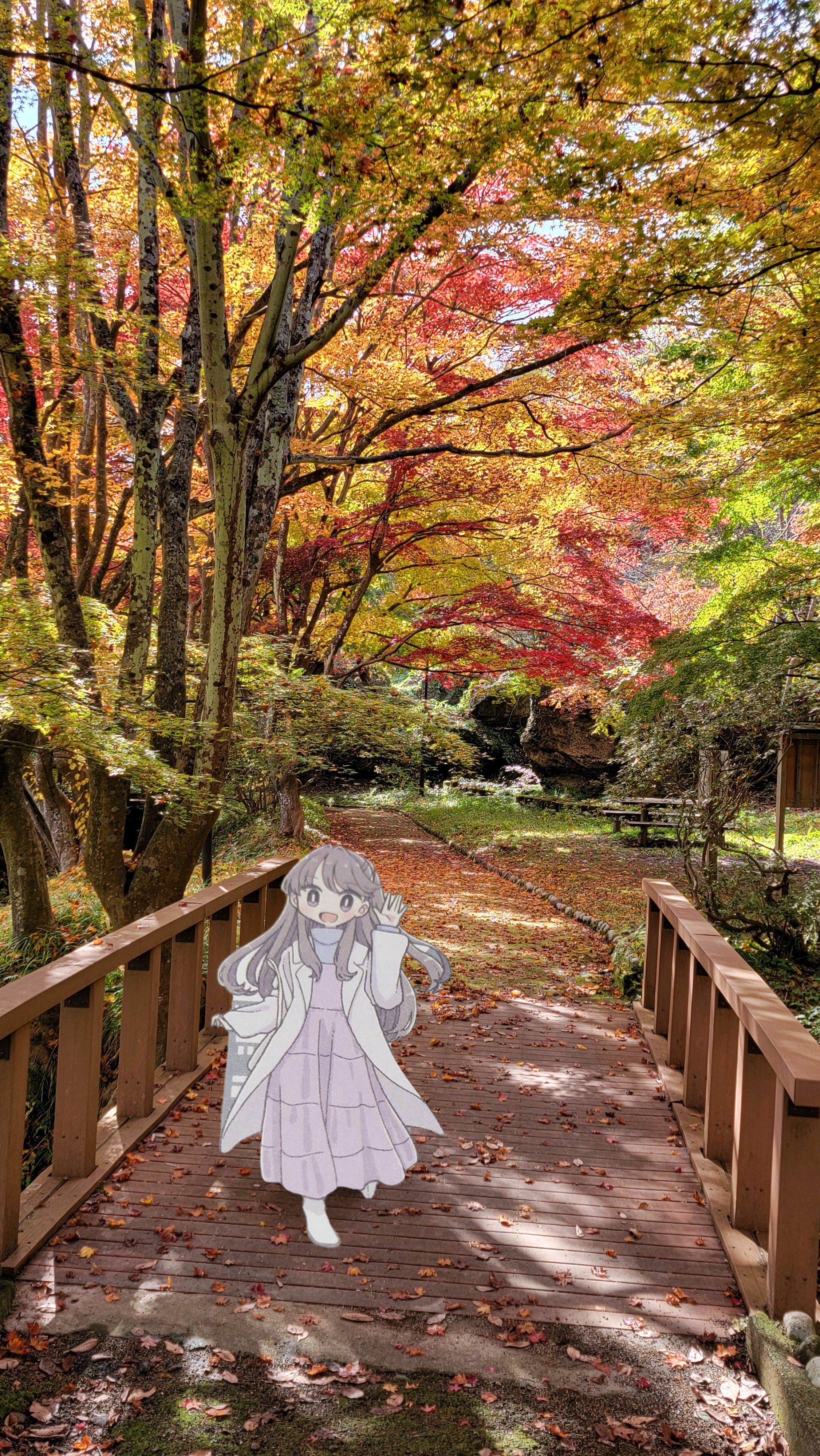 わたり橋手すりに🍁と紅葉🍁