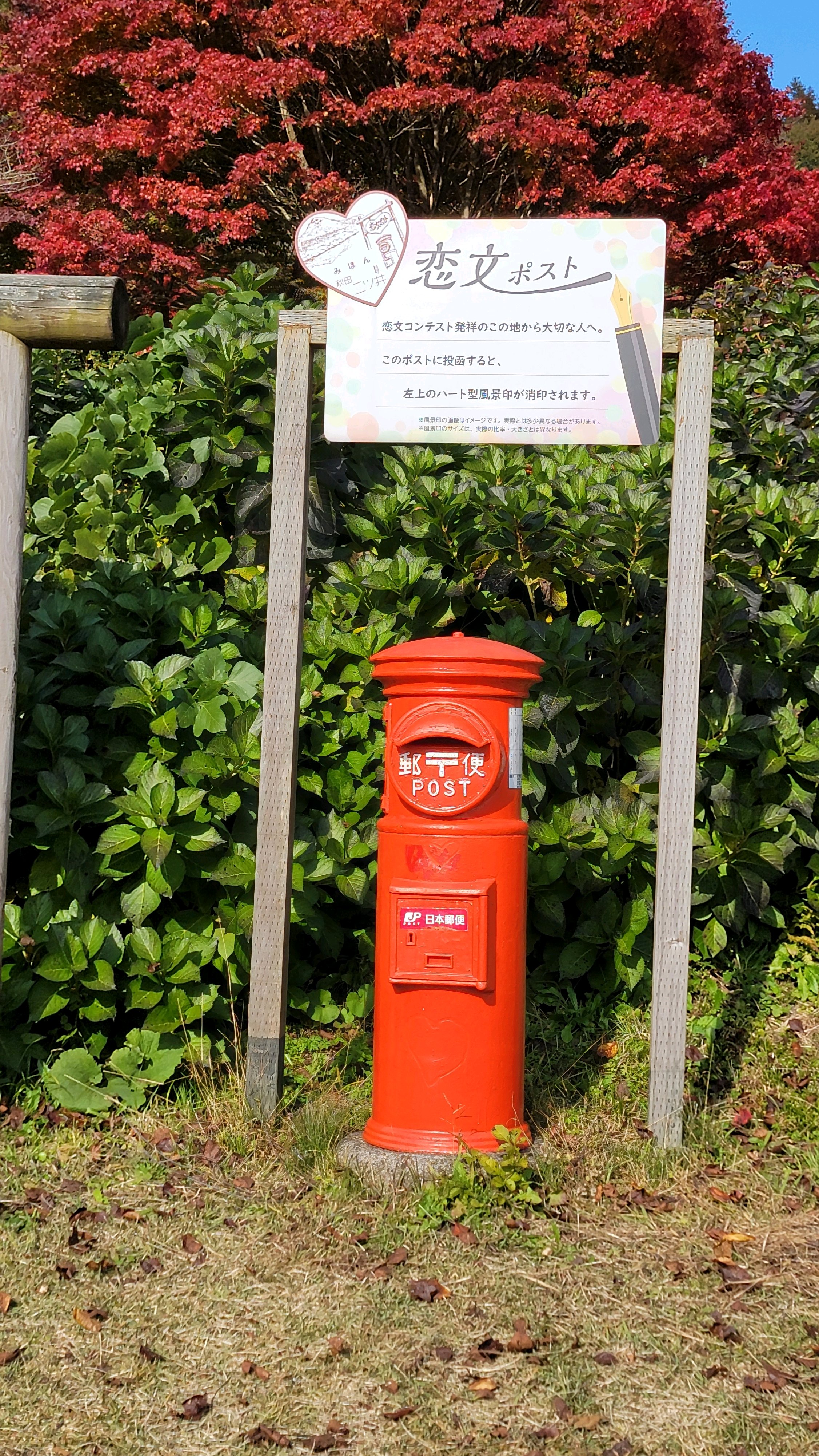 恋文ポストは「ハート型、風景入り、日付印」が押印されます