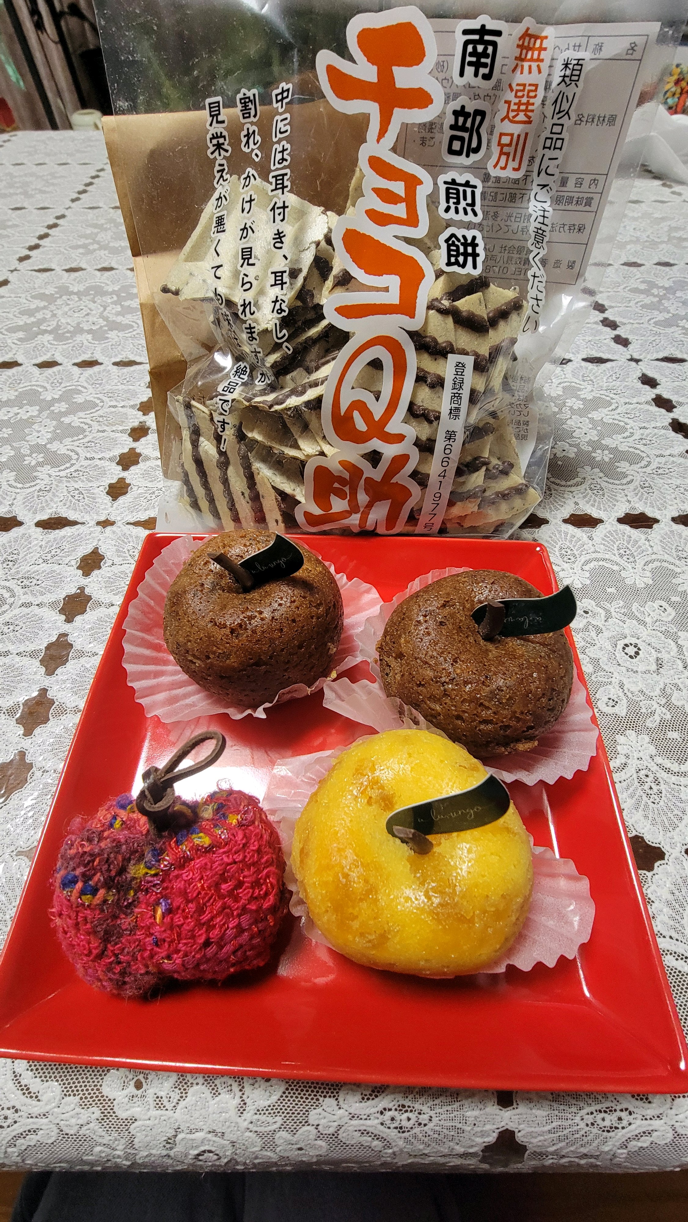 友達から頂いたお菓子🍎しっとり美味しかった😋1個はブローチだよ😄