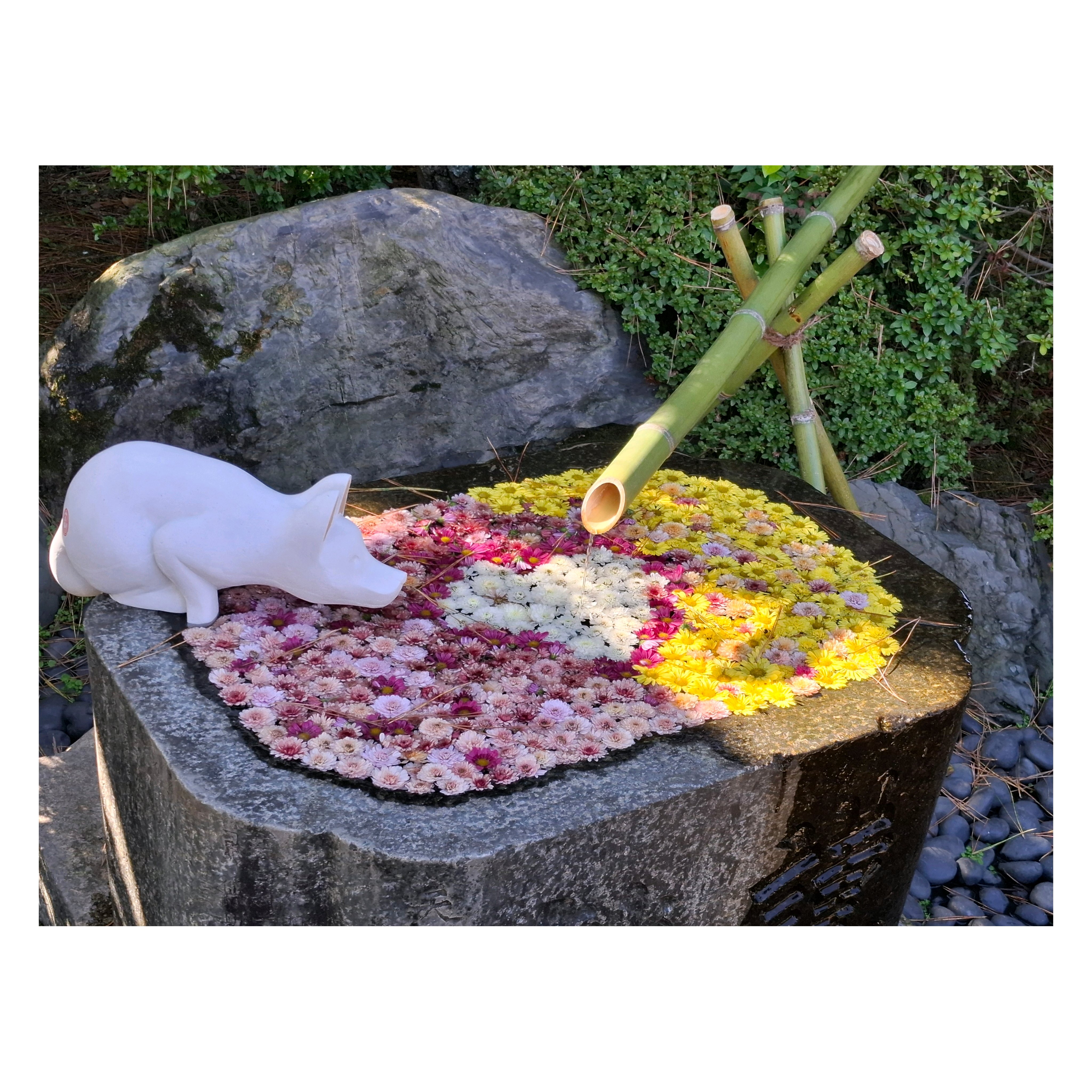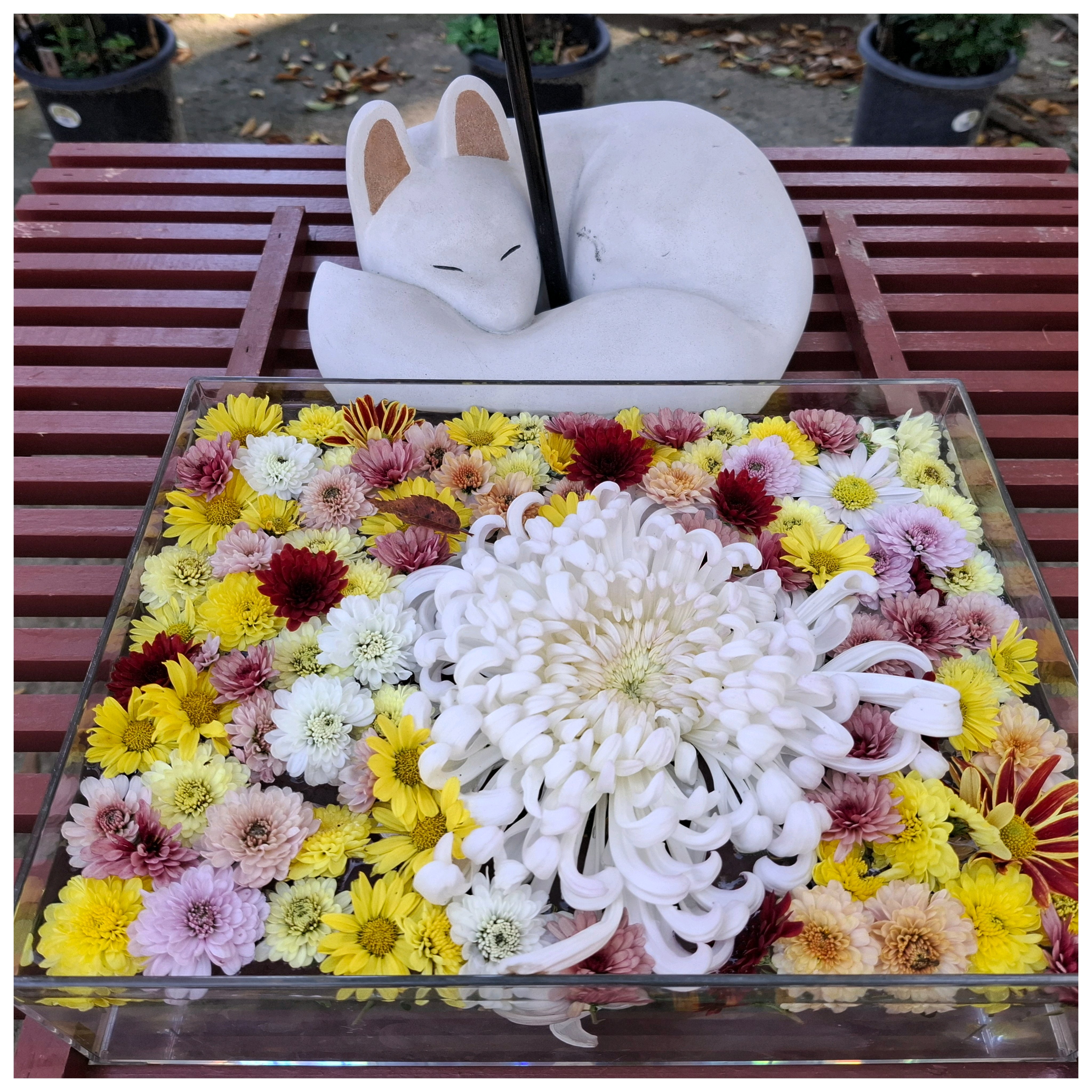 白狐も可愛い💕花手水💐とのコラボが微笑ましいね😄