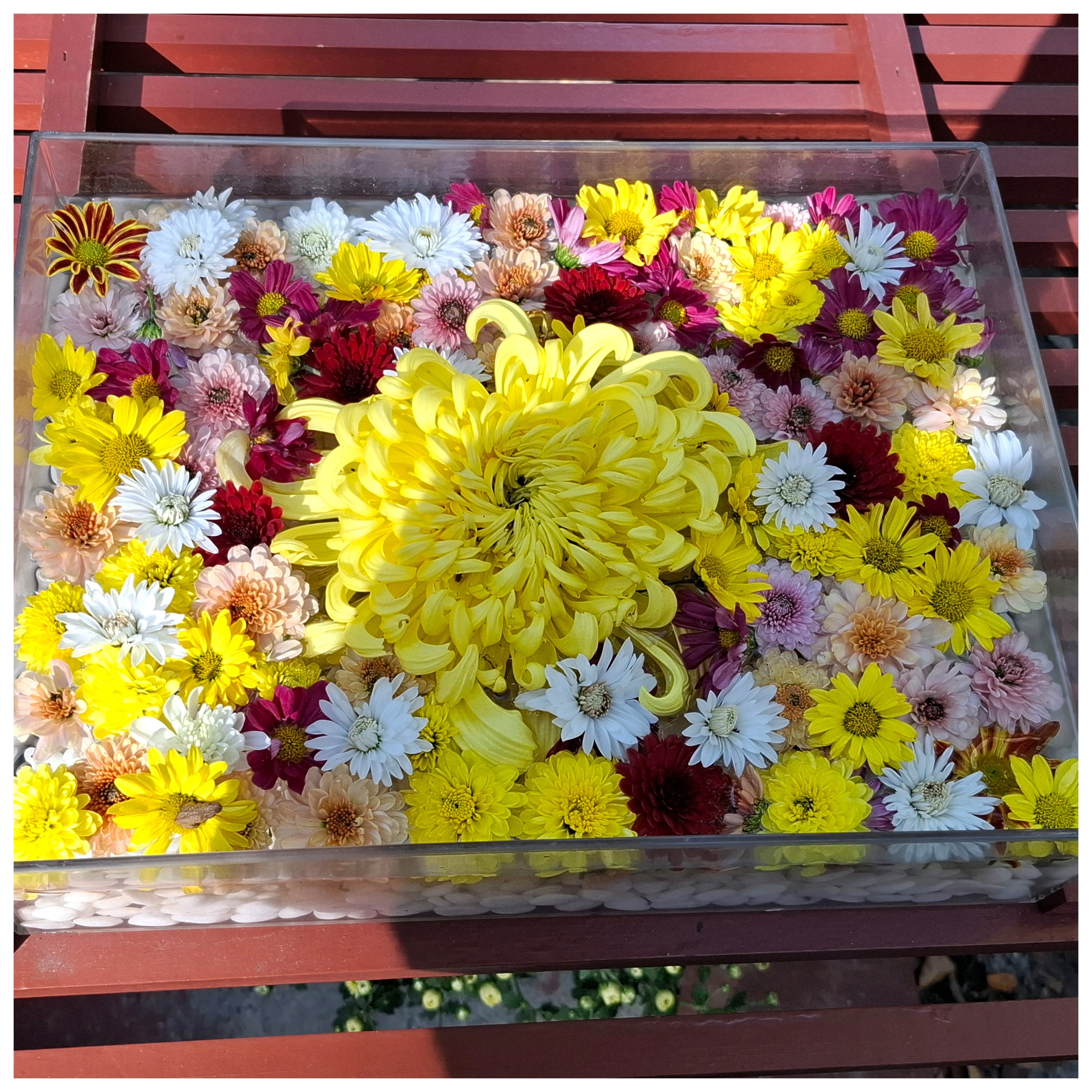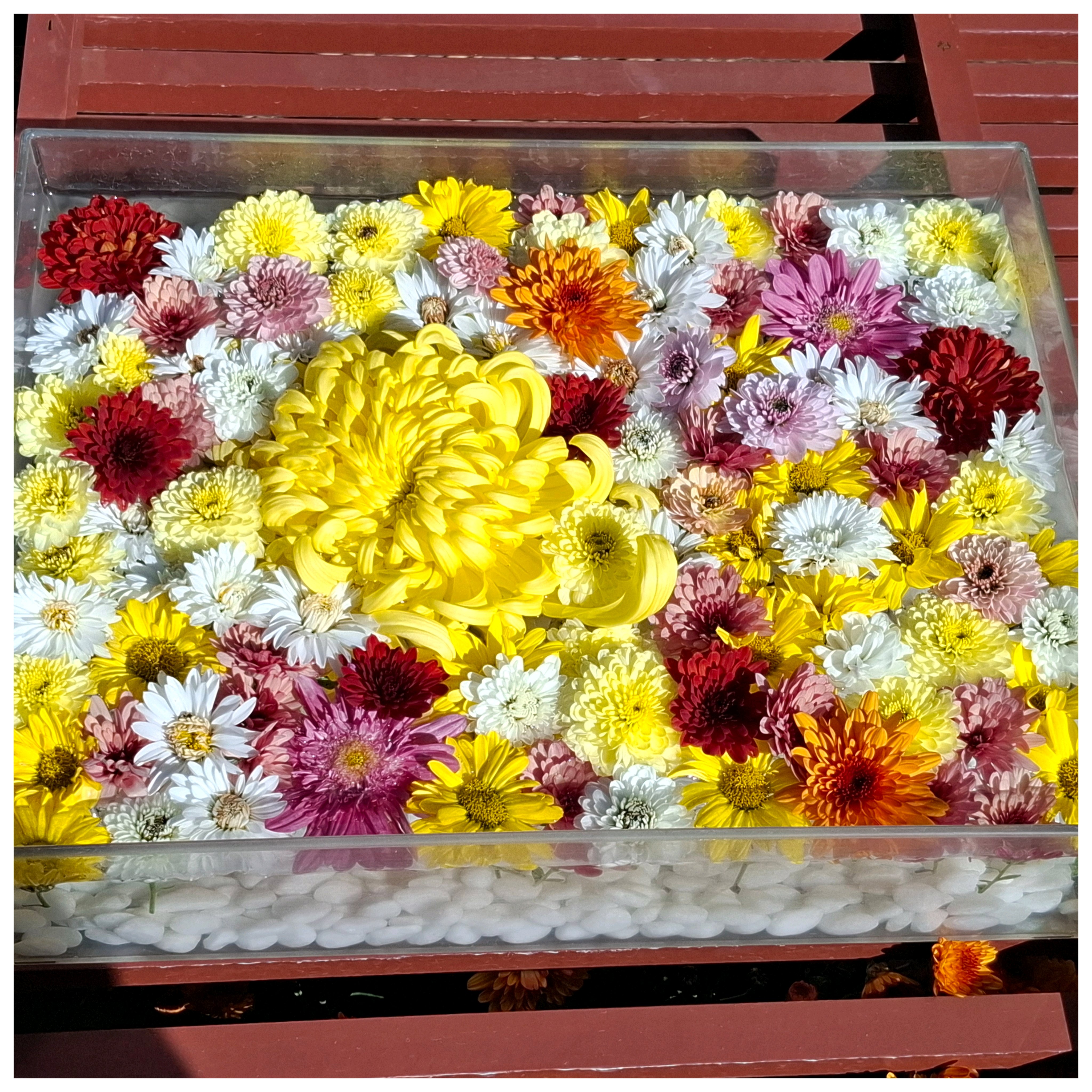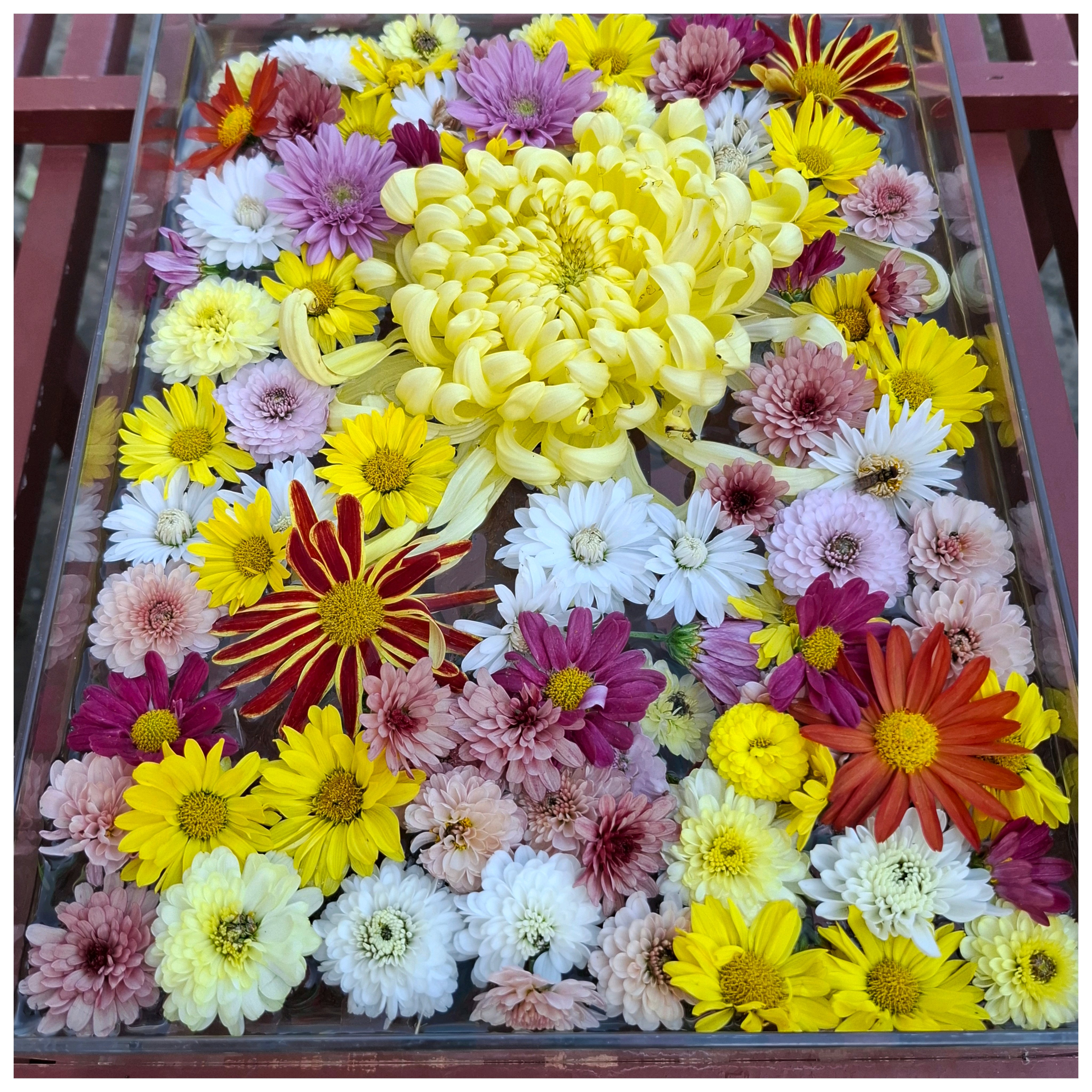 菊だけの花手水 見事です👏👏👏