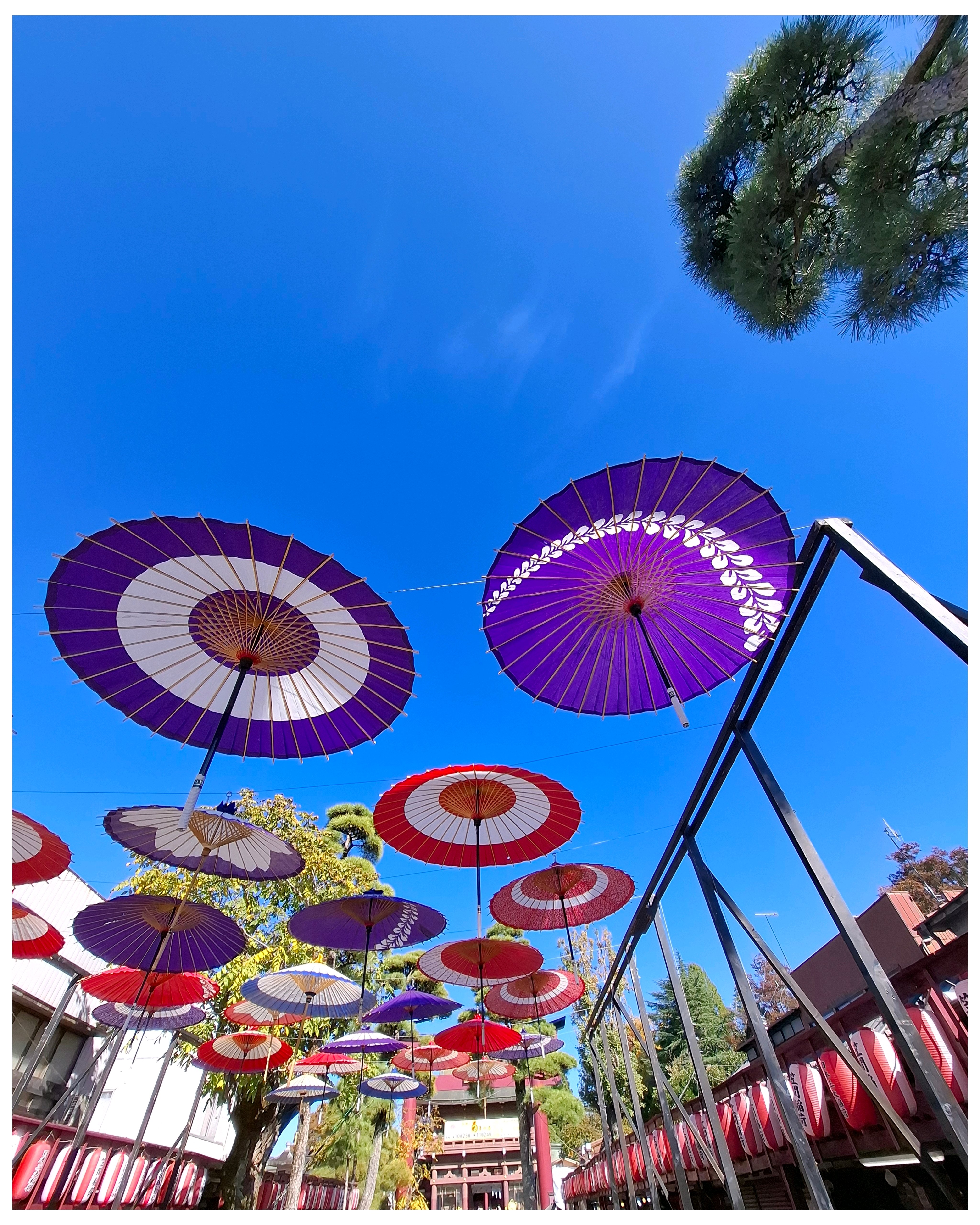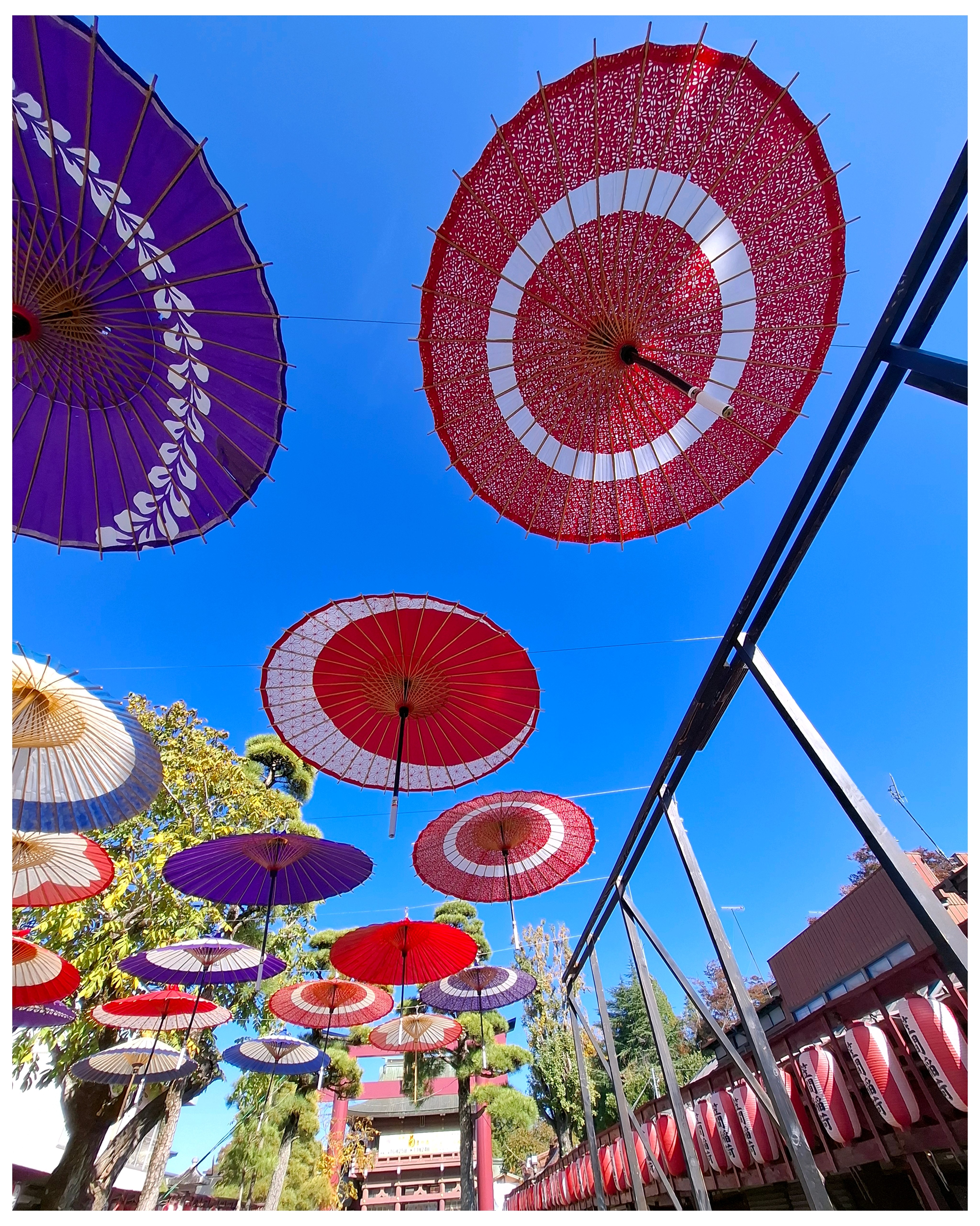 青空に舞う和傘、良いですね💕