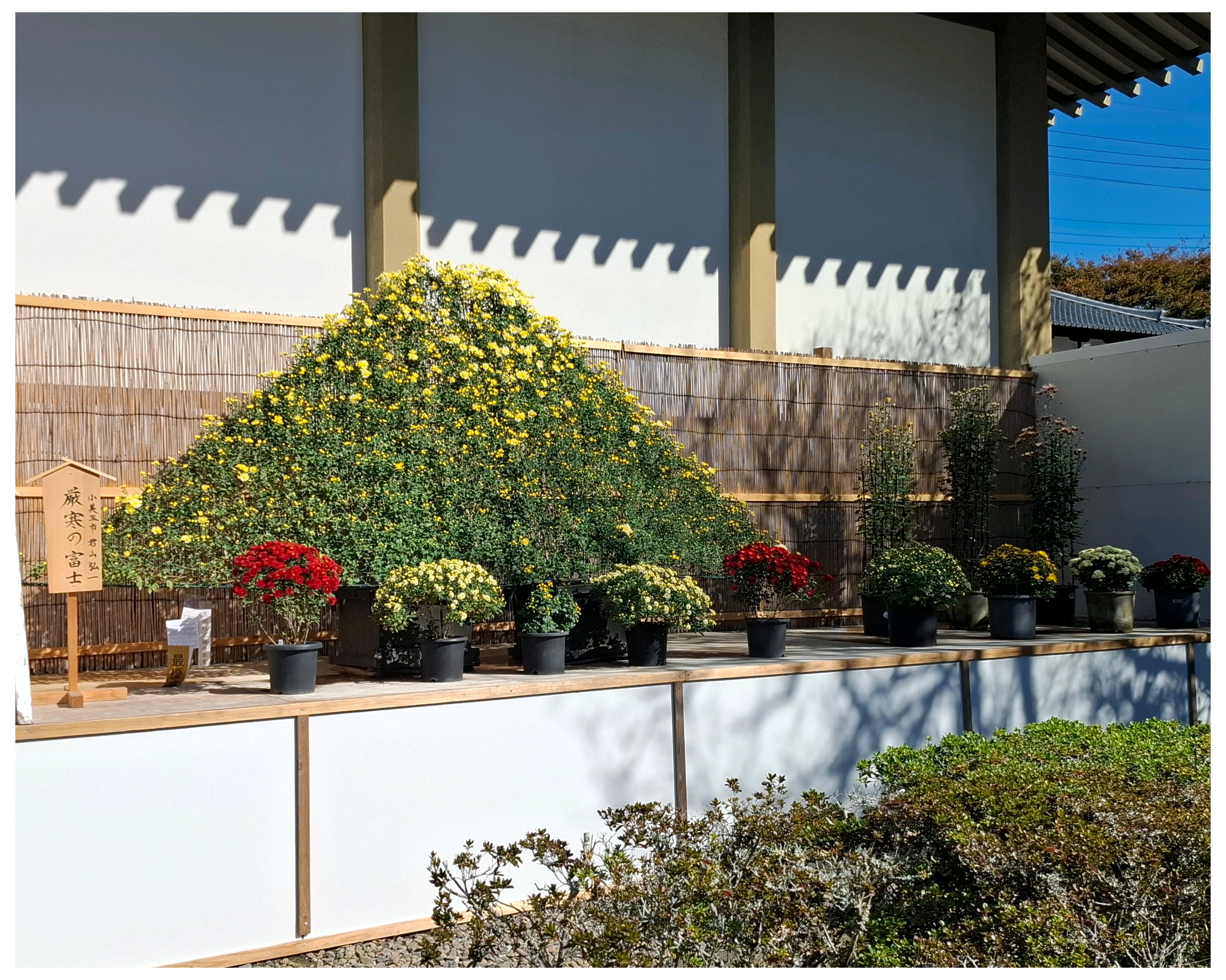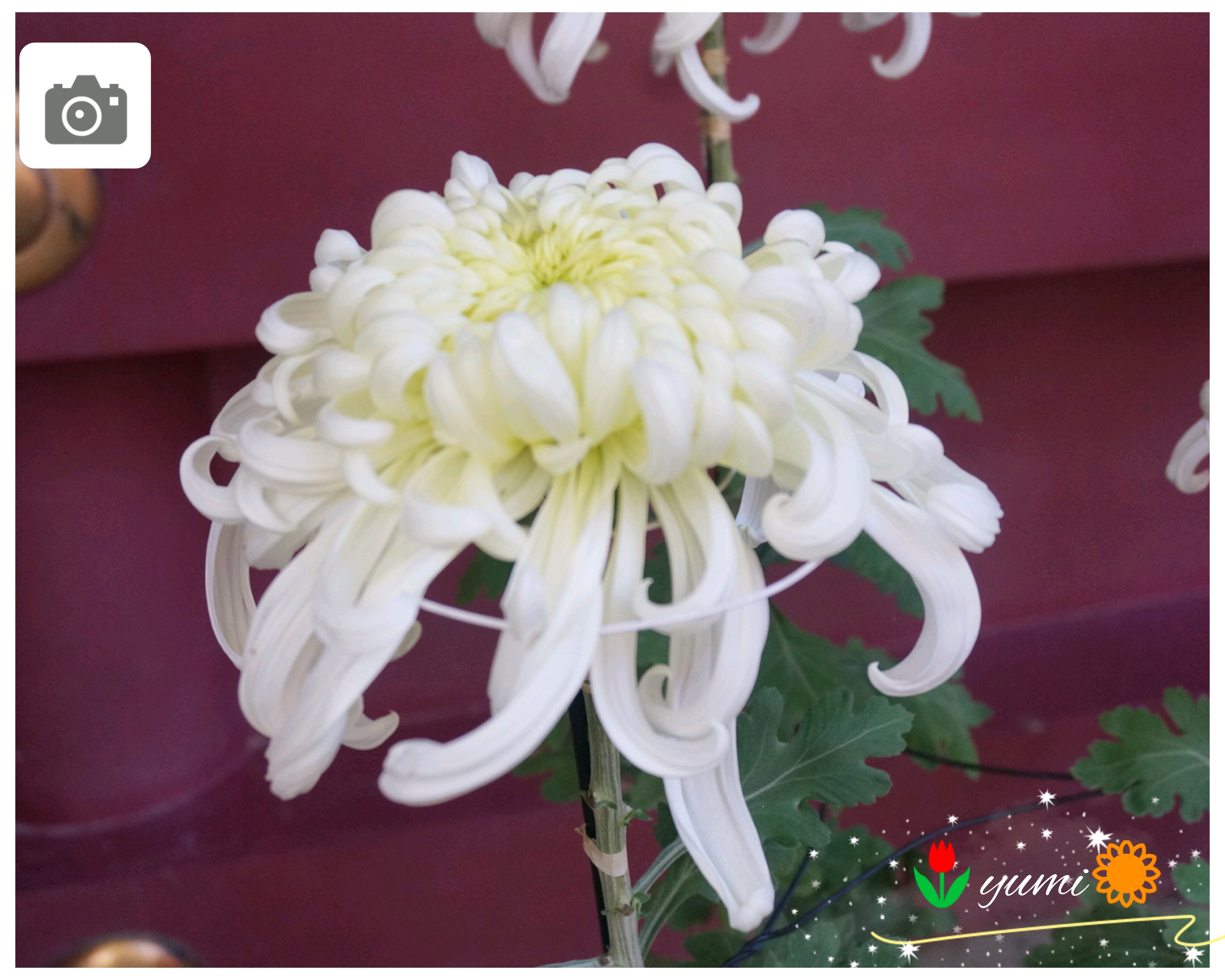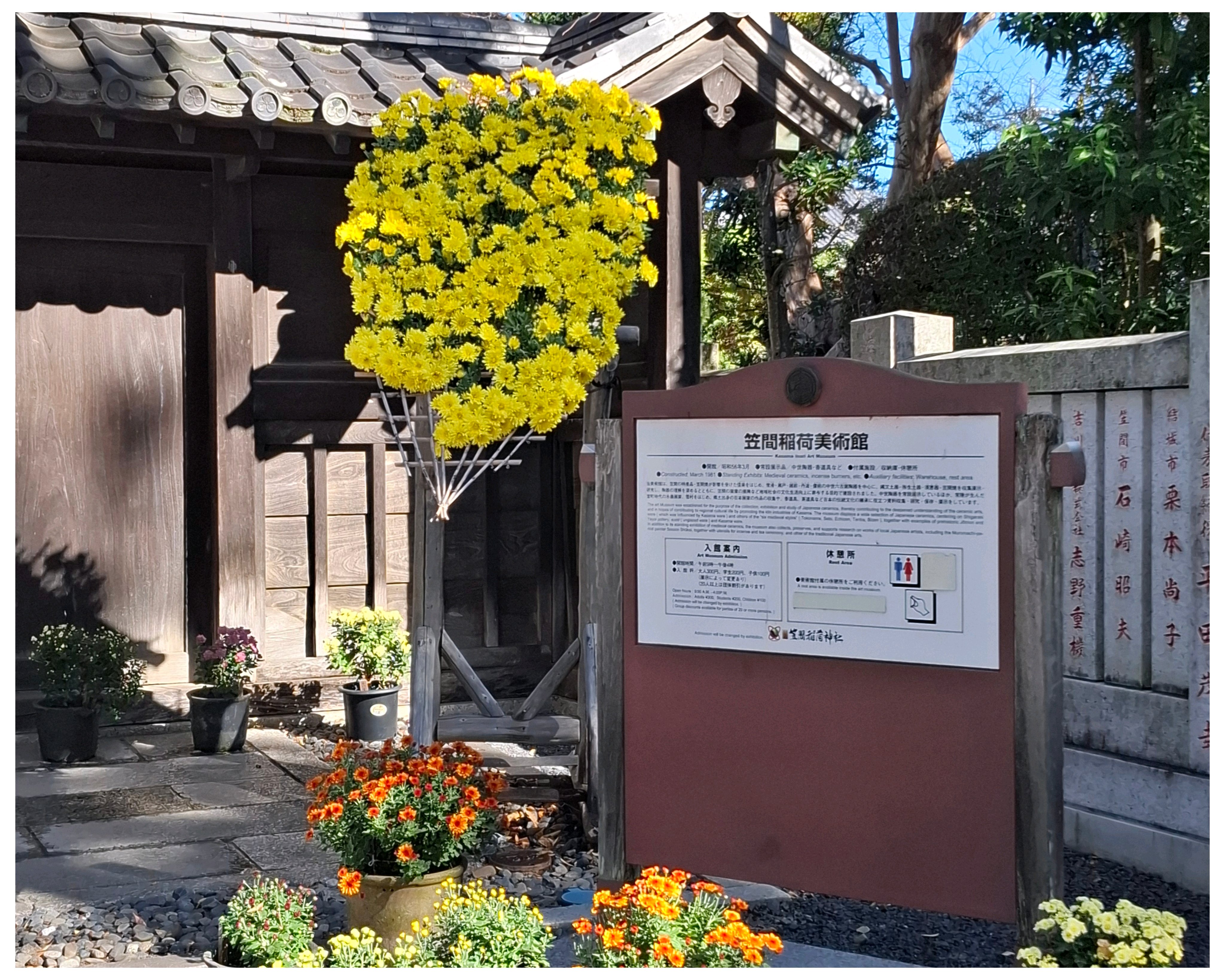キツネ🦊の顔がまだ緑の葉っぱ🌿が多い。黄色い💛菊の花が咲いて、黄色い🦊になったところも見てみたい😆。