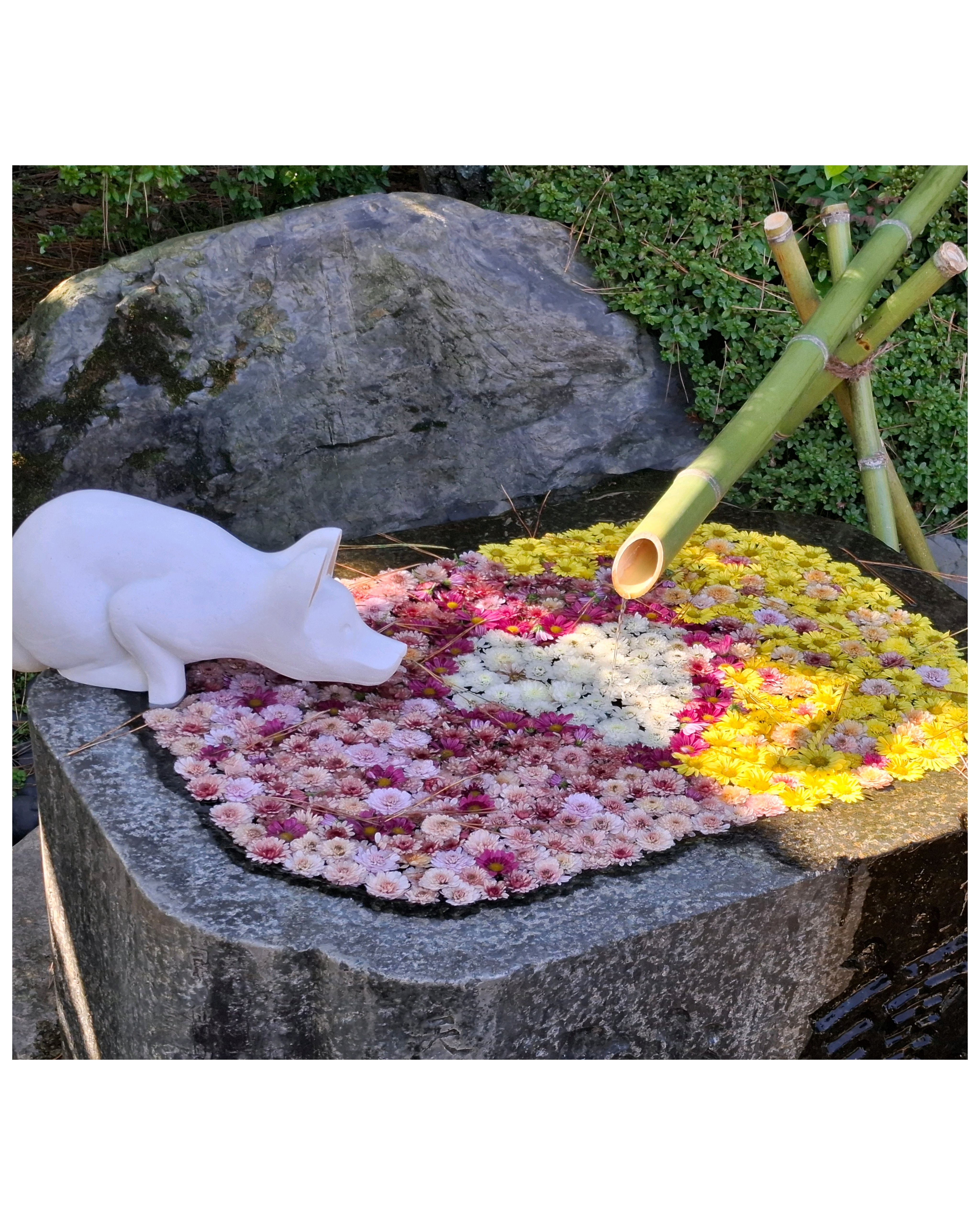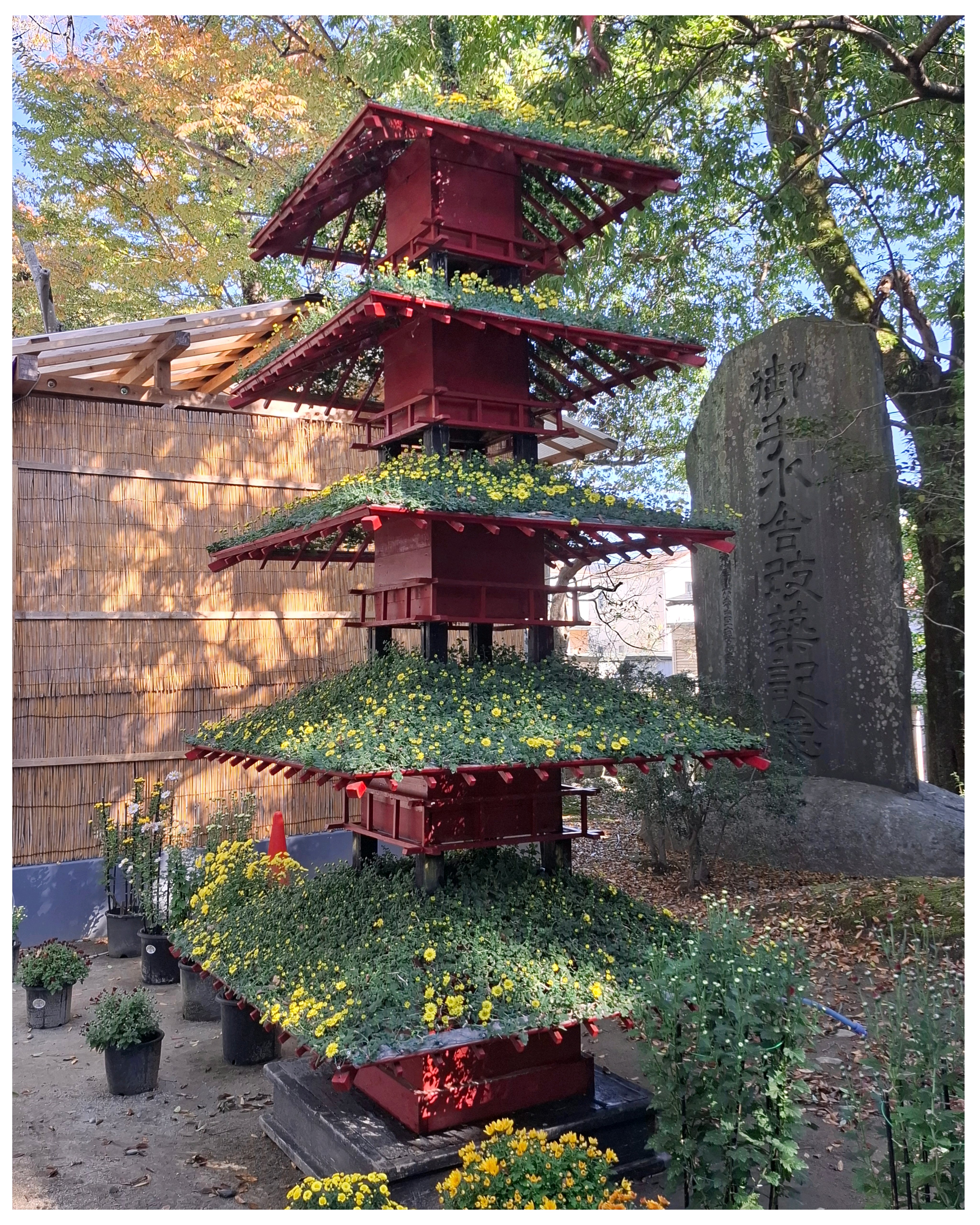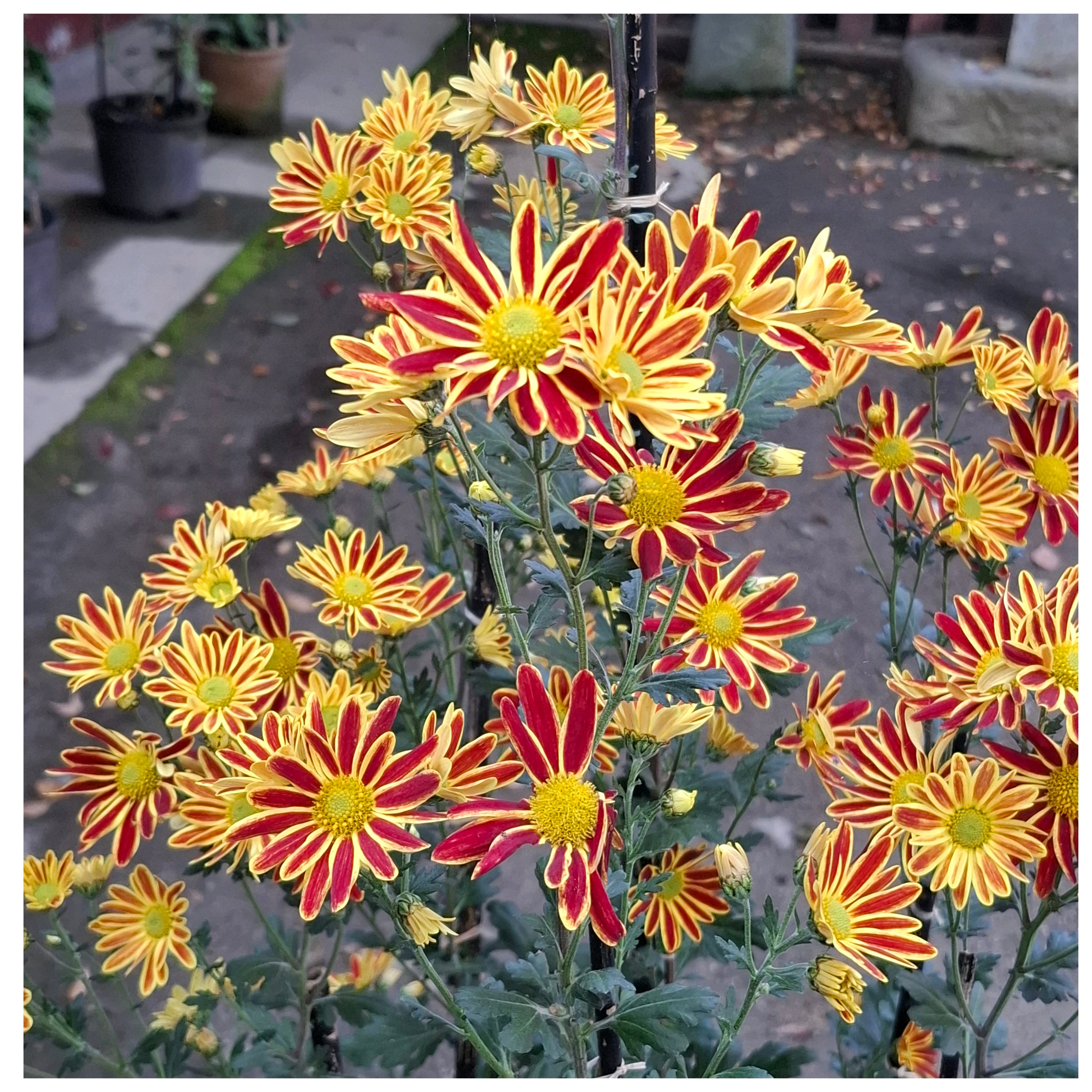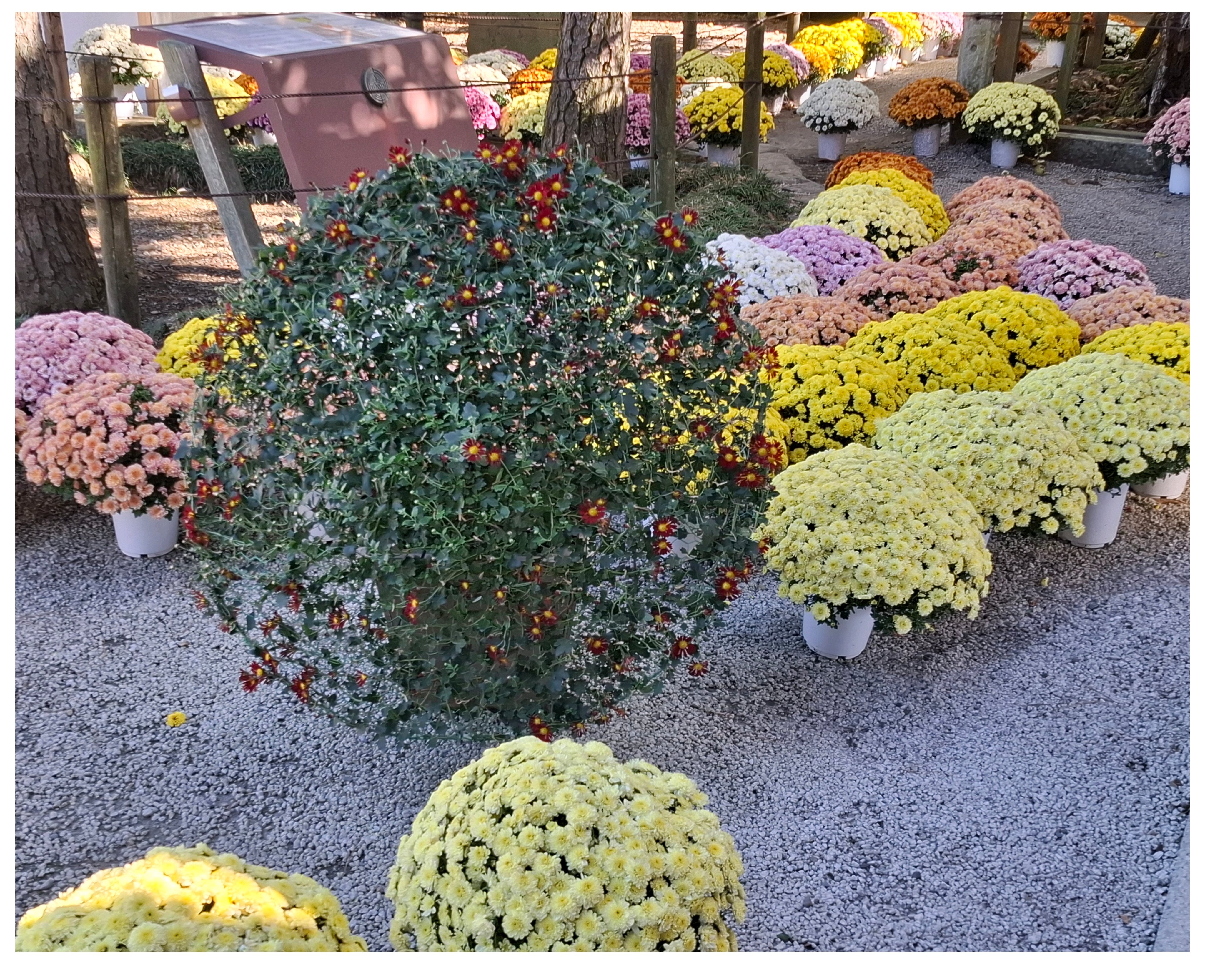 キツネ🦊の顔がまだ緑の葉っぱ🌿が多い。黄色い💛菊の花が咲いて、黄色い🦊になったところも見てみたい😆。