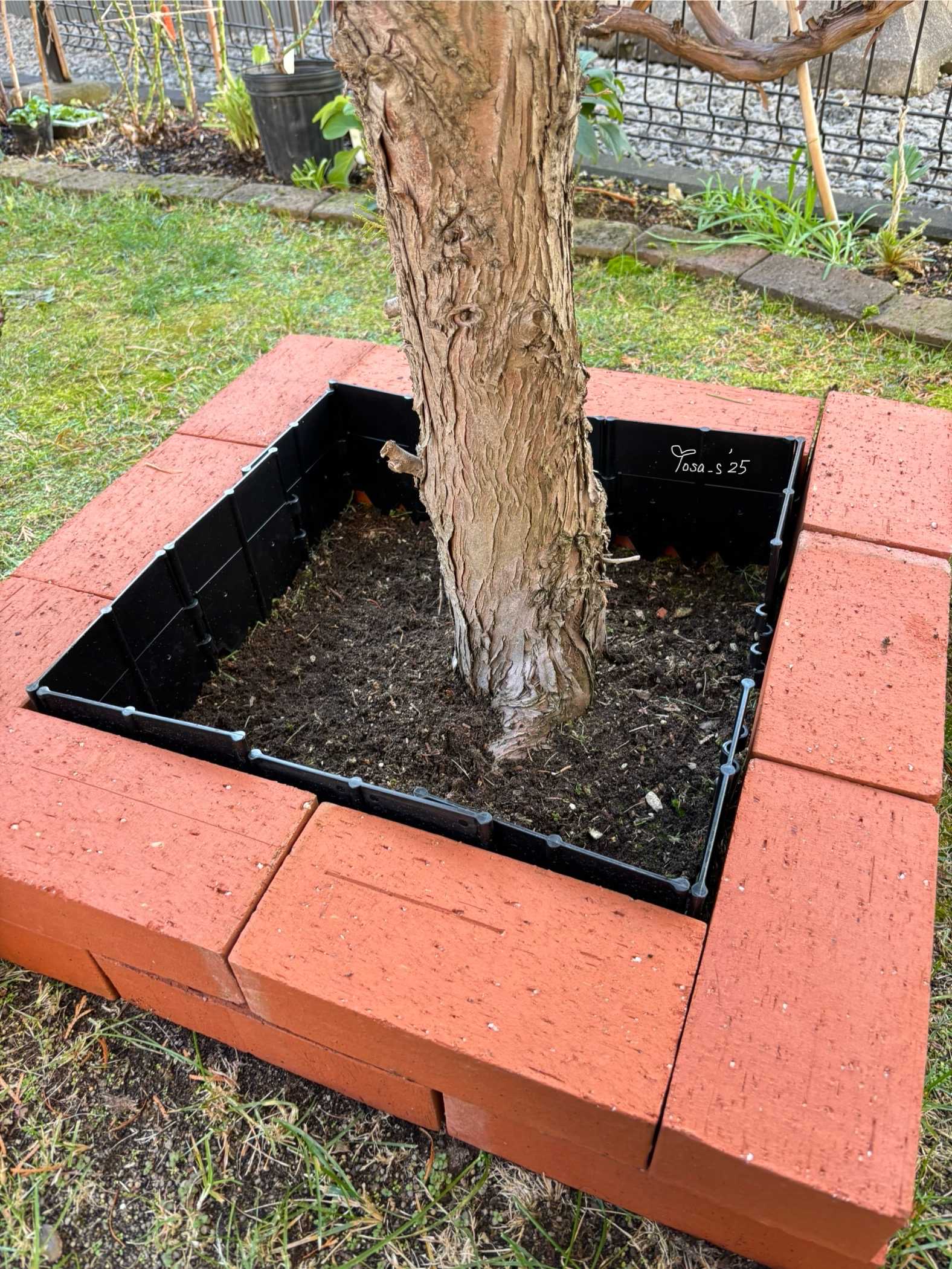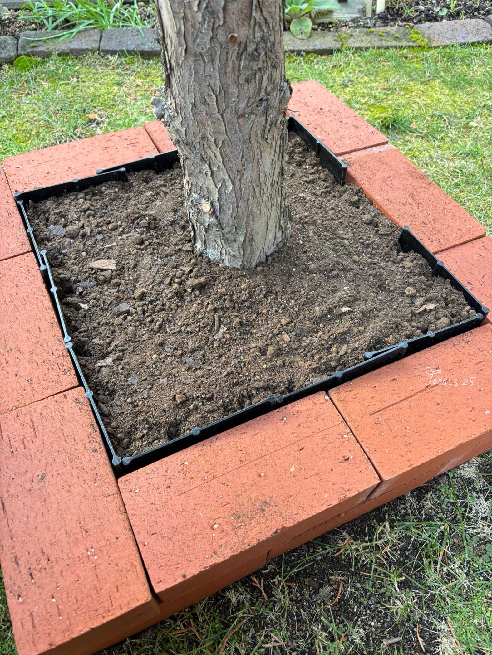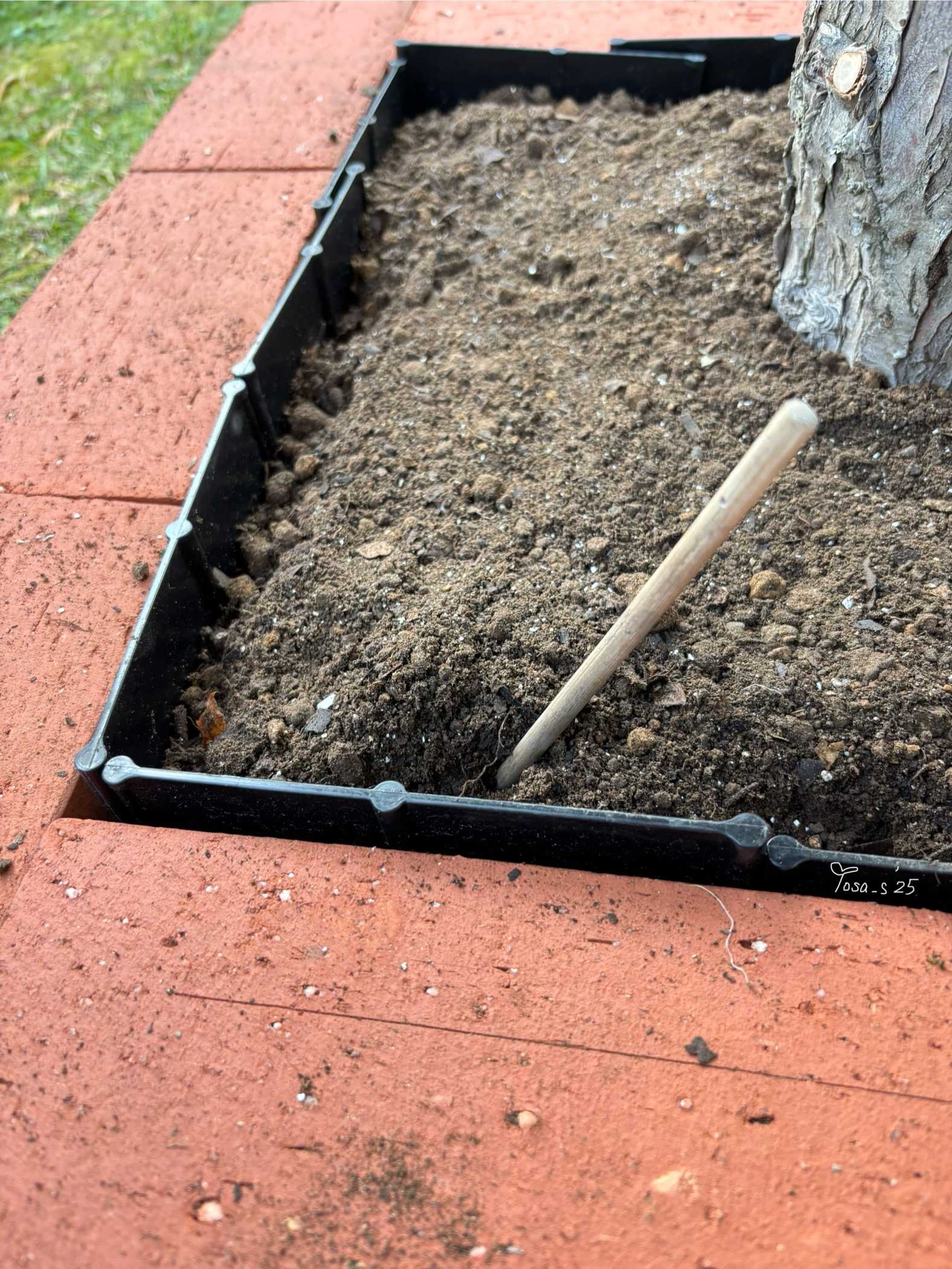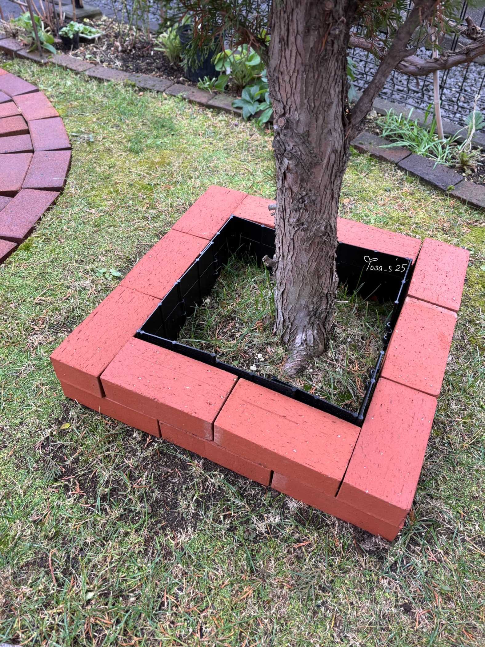 物置で余っていた土留めストッパーも内側につけています☺️(横から撮影)