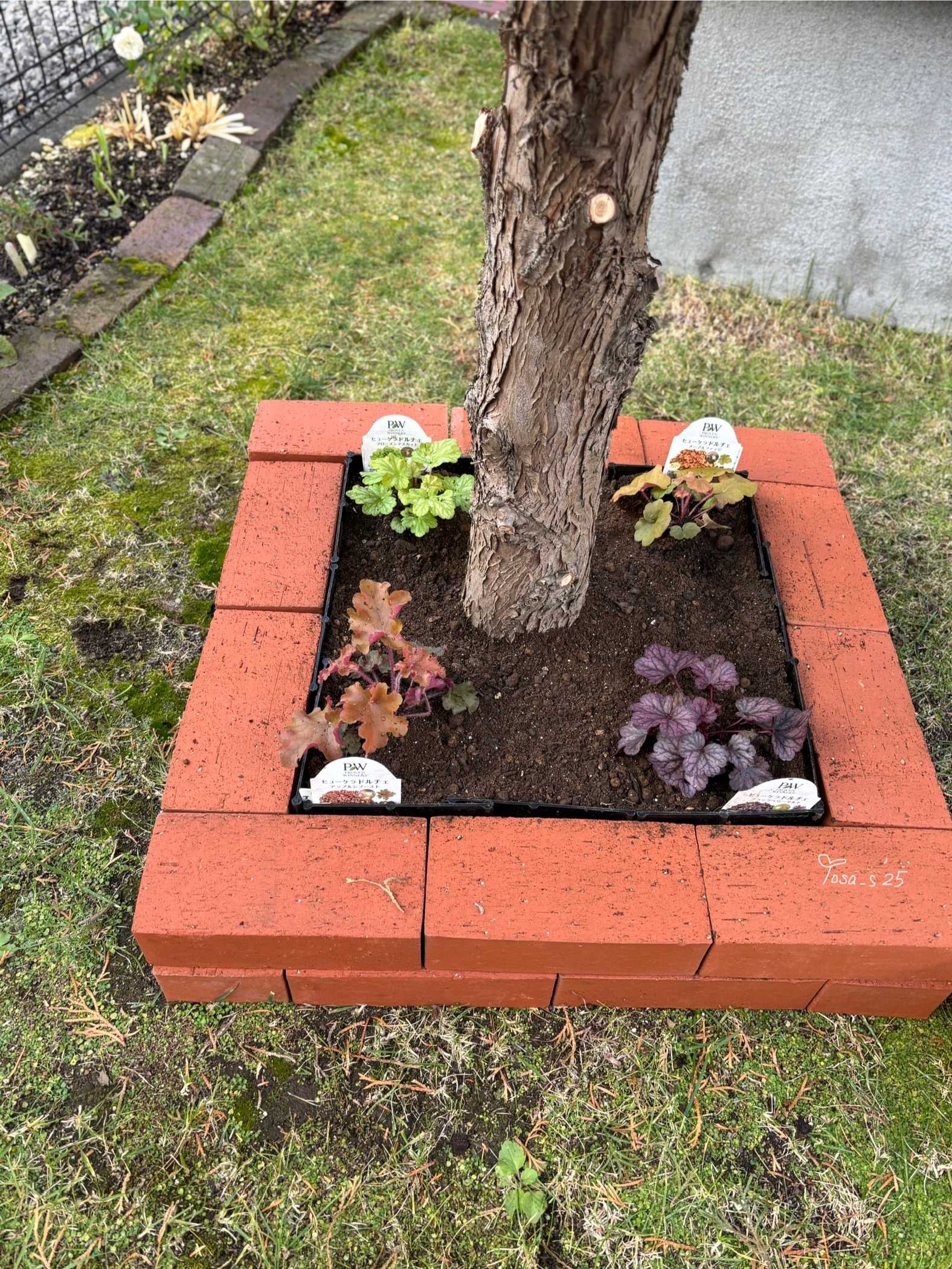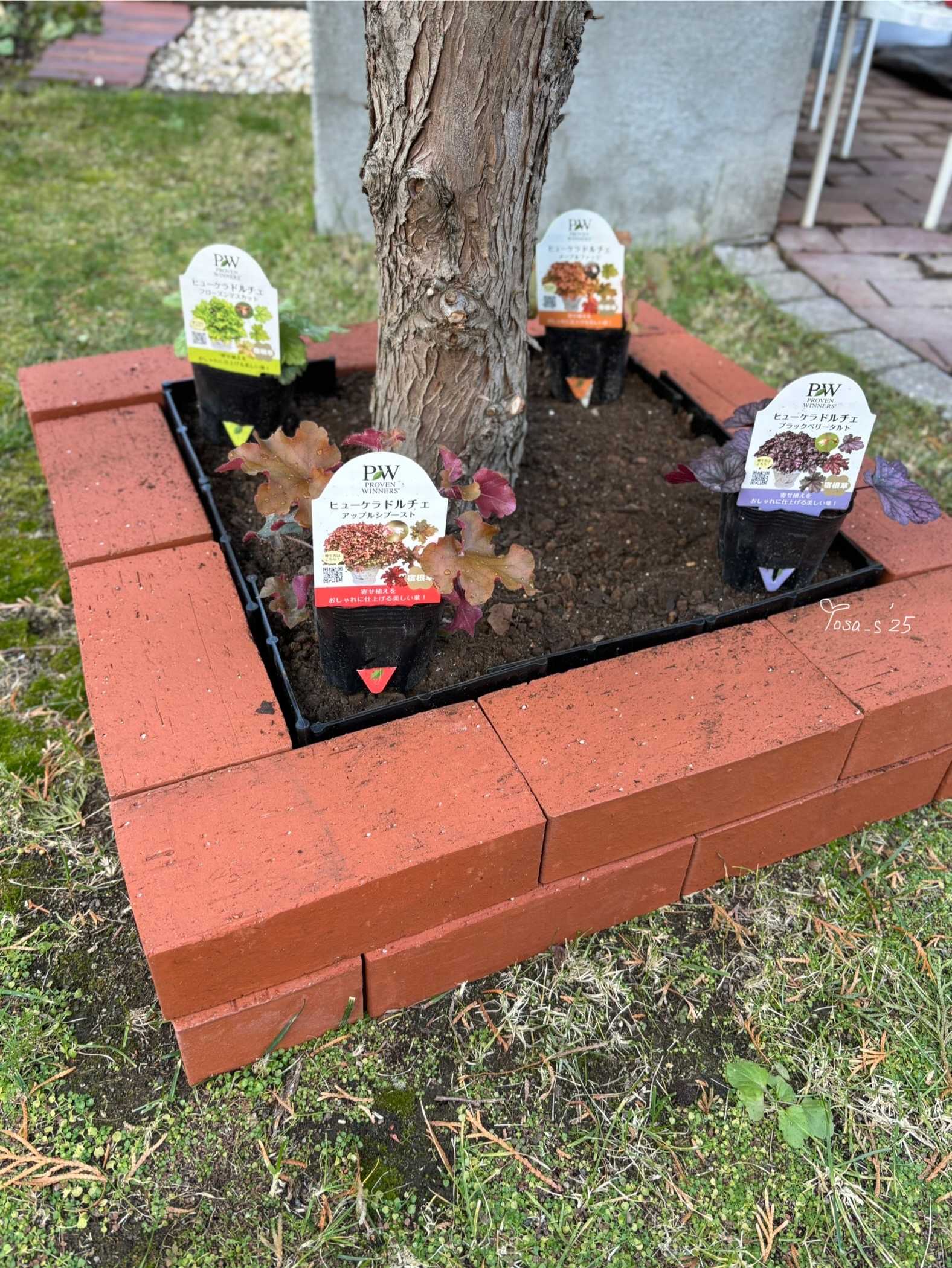 PWアンバサダーで選んだヒューケラ4株はレンガ🧱2段で積むだけの簡単な花壇にしようかな〜妄想中🤭9/24撮影