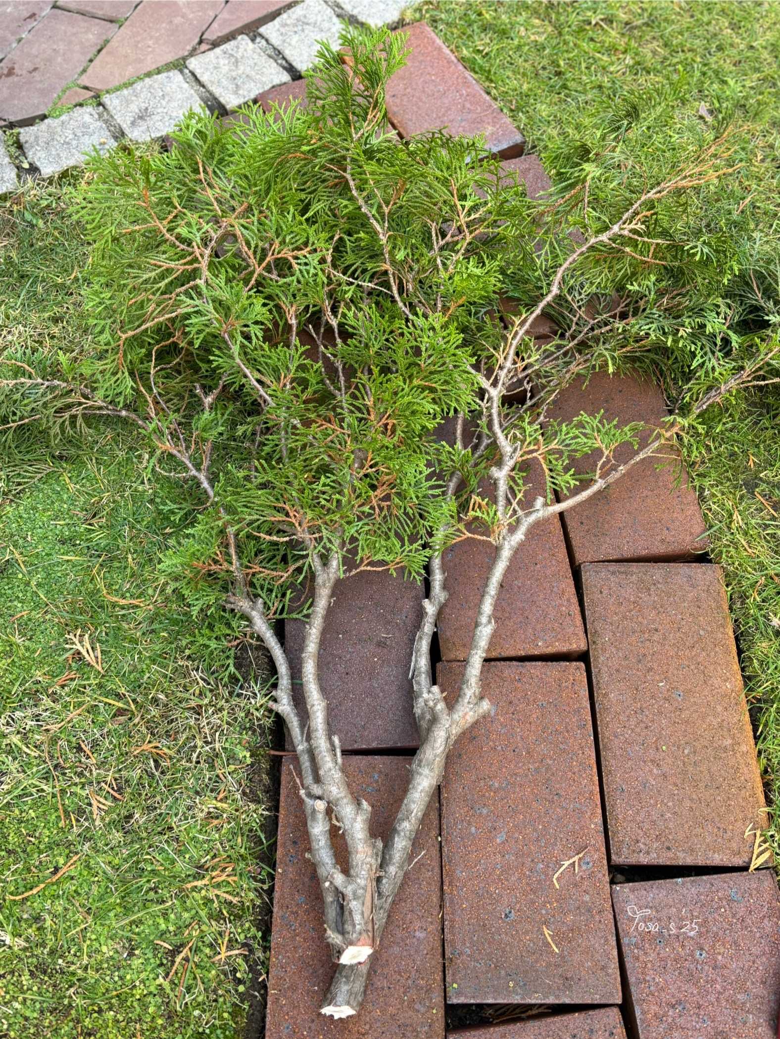 途中 🌲エメラルドグリーンの下枝を切り…