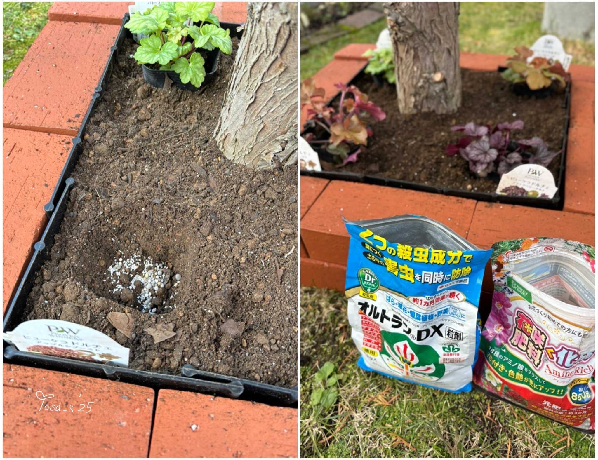 その上からPWガーデンブーストを混ぜたのでヒューケラのまわりが汚れちゃいました😅その後リキダス水を潅水 🚿