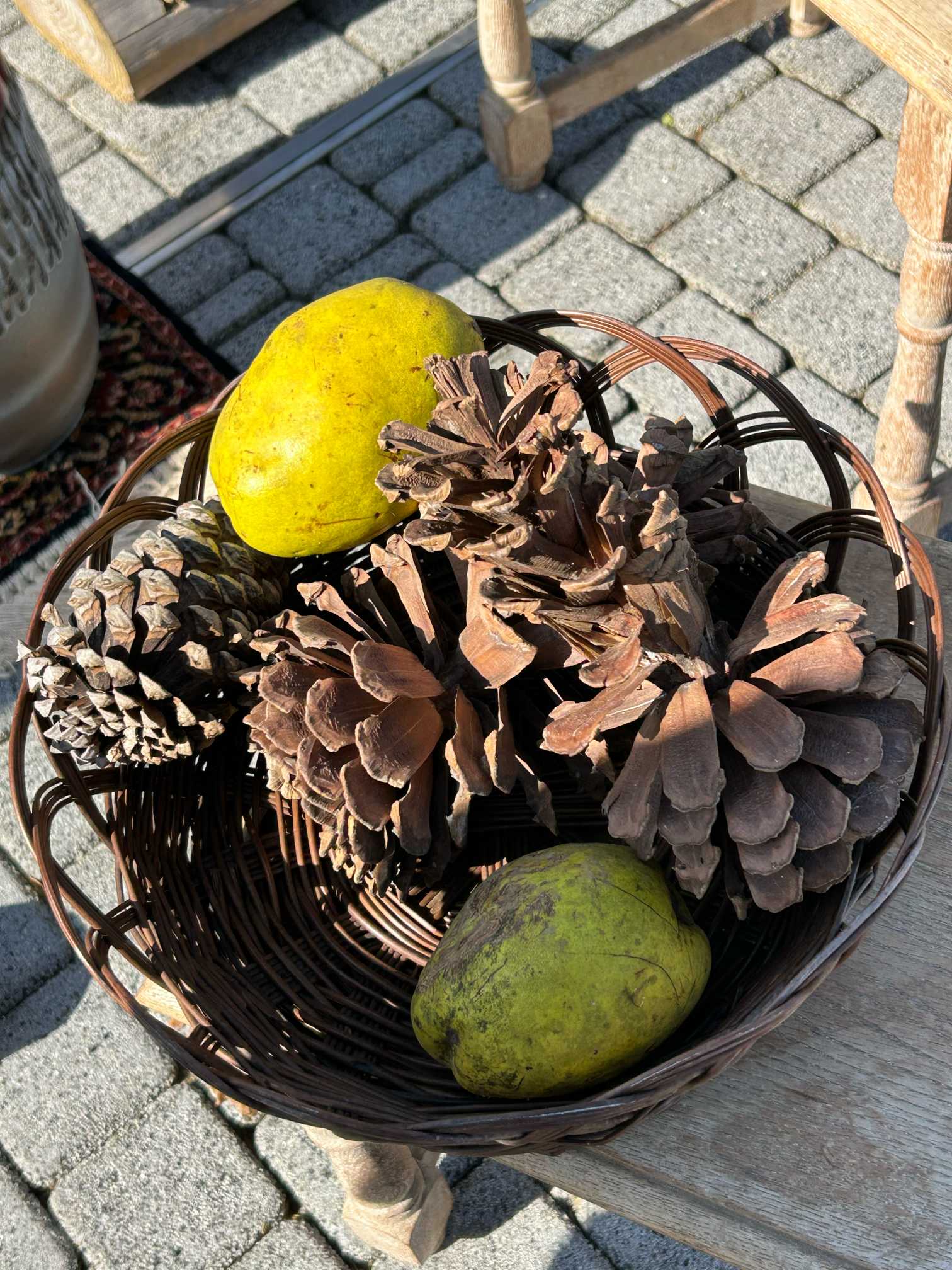 入り口には大きなカリンと松ぼっくりが!
