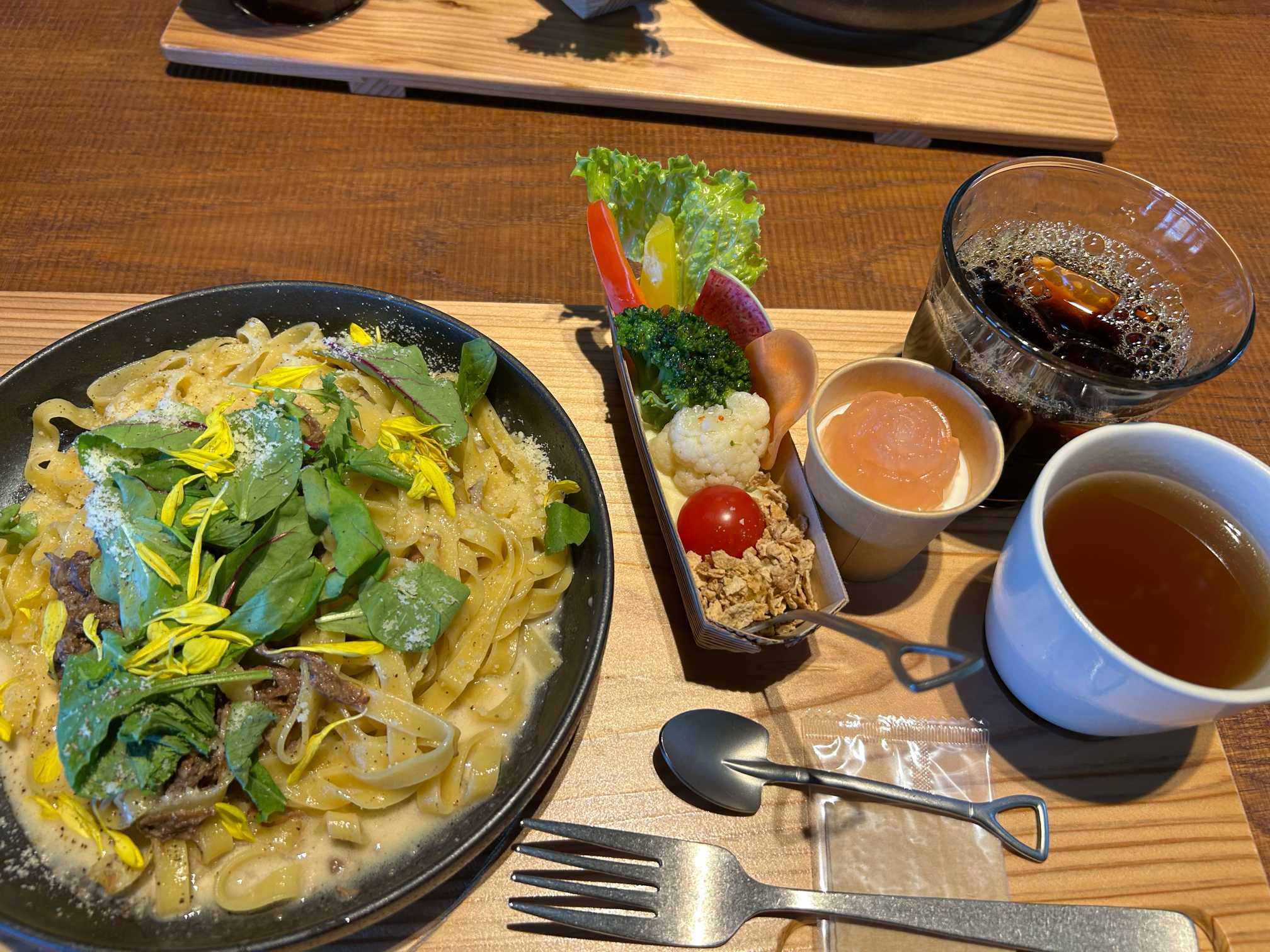 フラワーパークの中のレストランでパスタを食べました