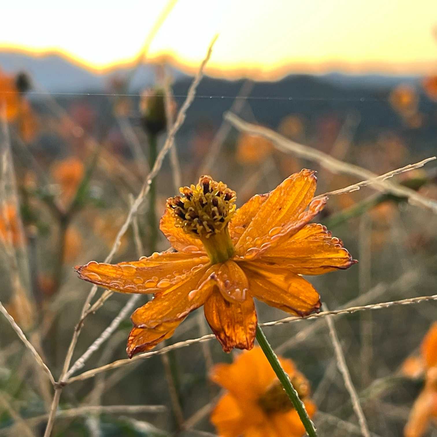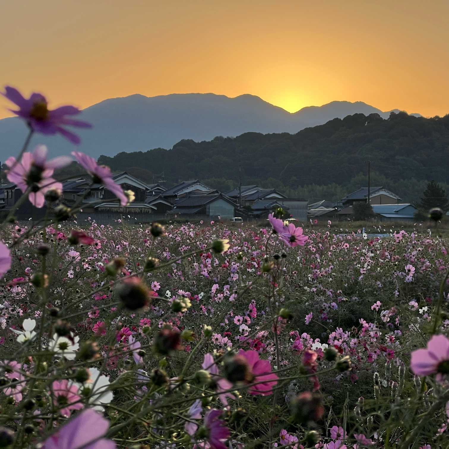 キバナコスモスと日の出