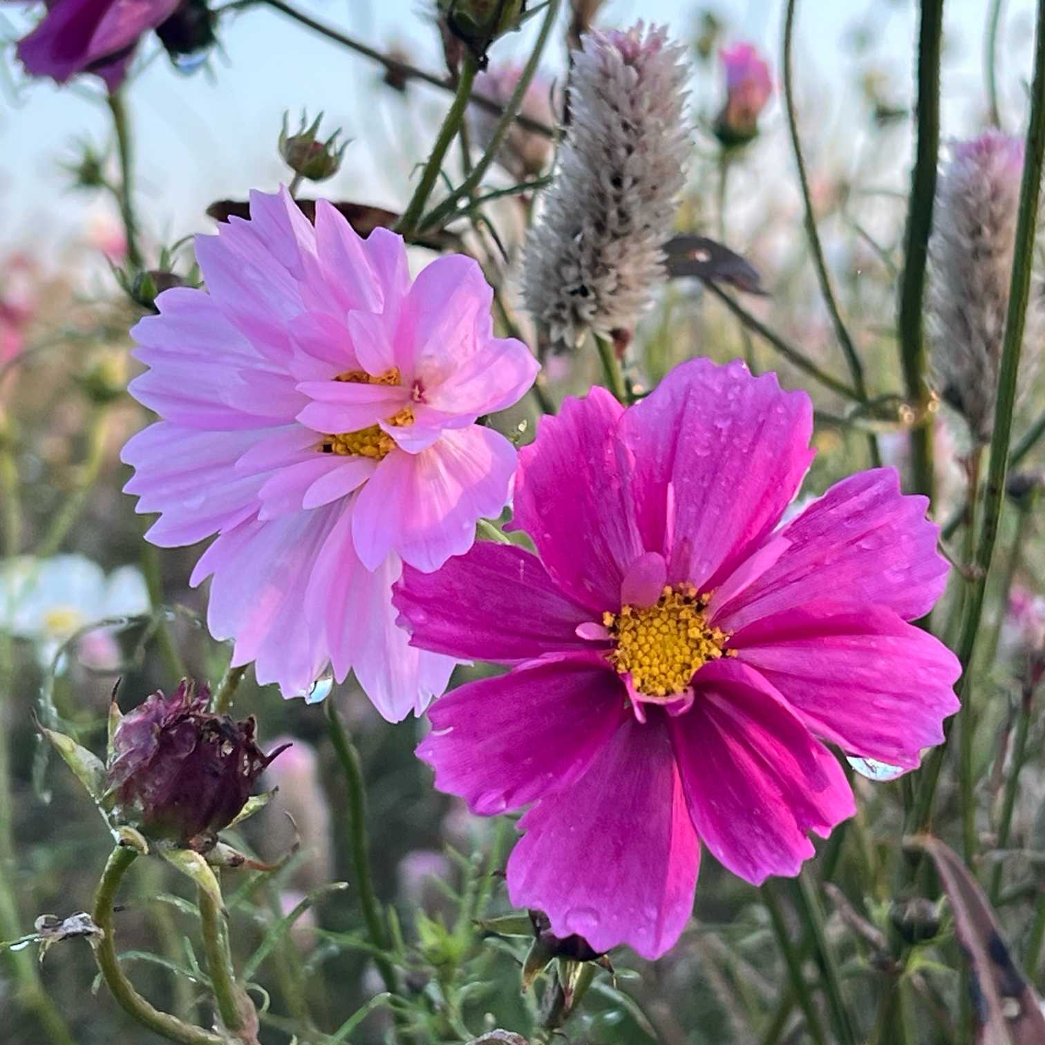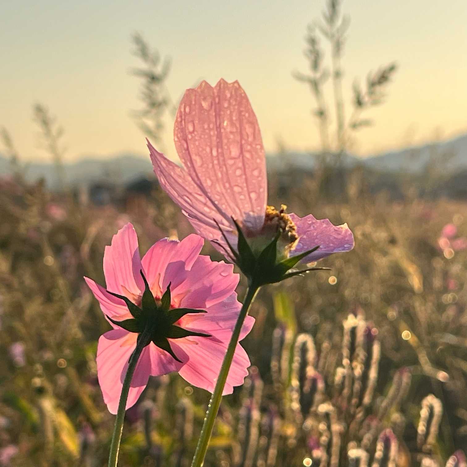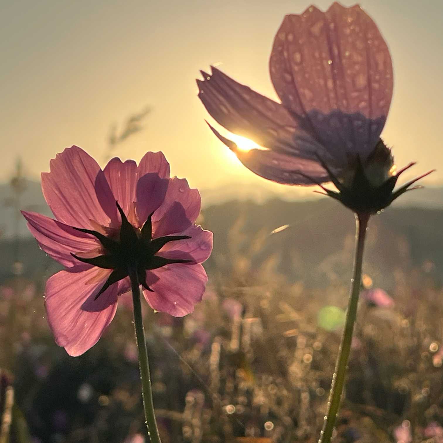 朝陽にキラキラ🌸秋桜