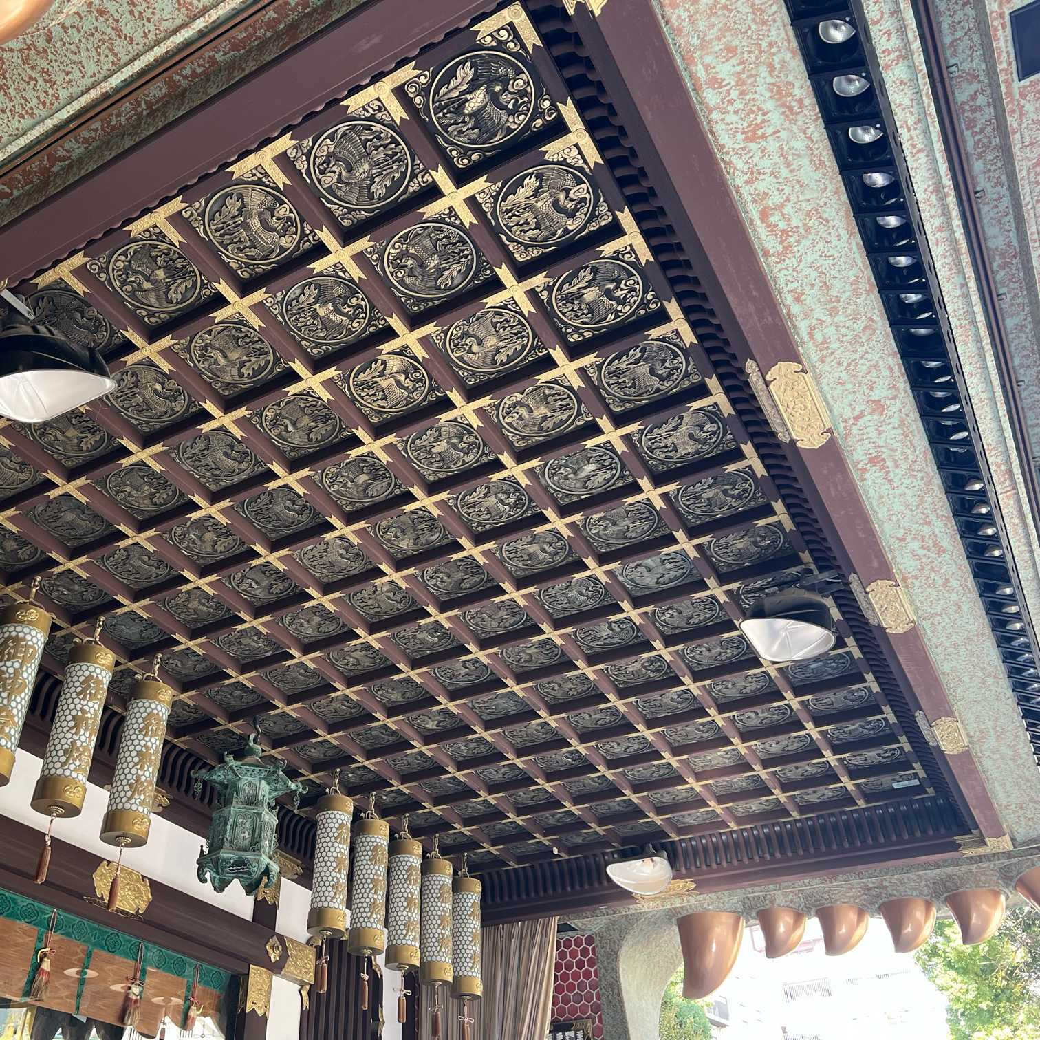 細やかな模様の鏡板の格天井でした