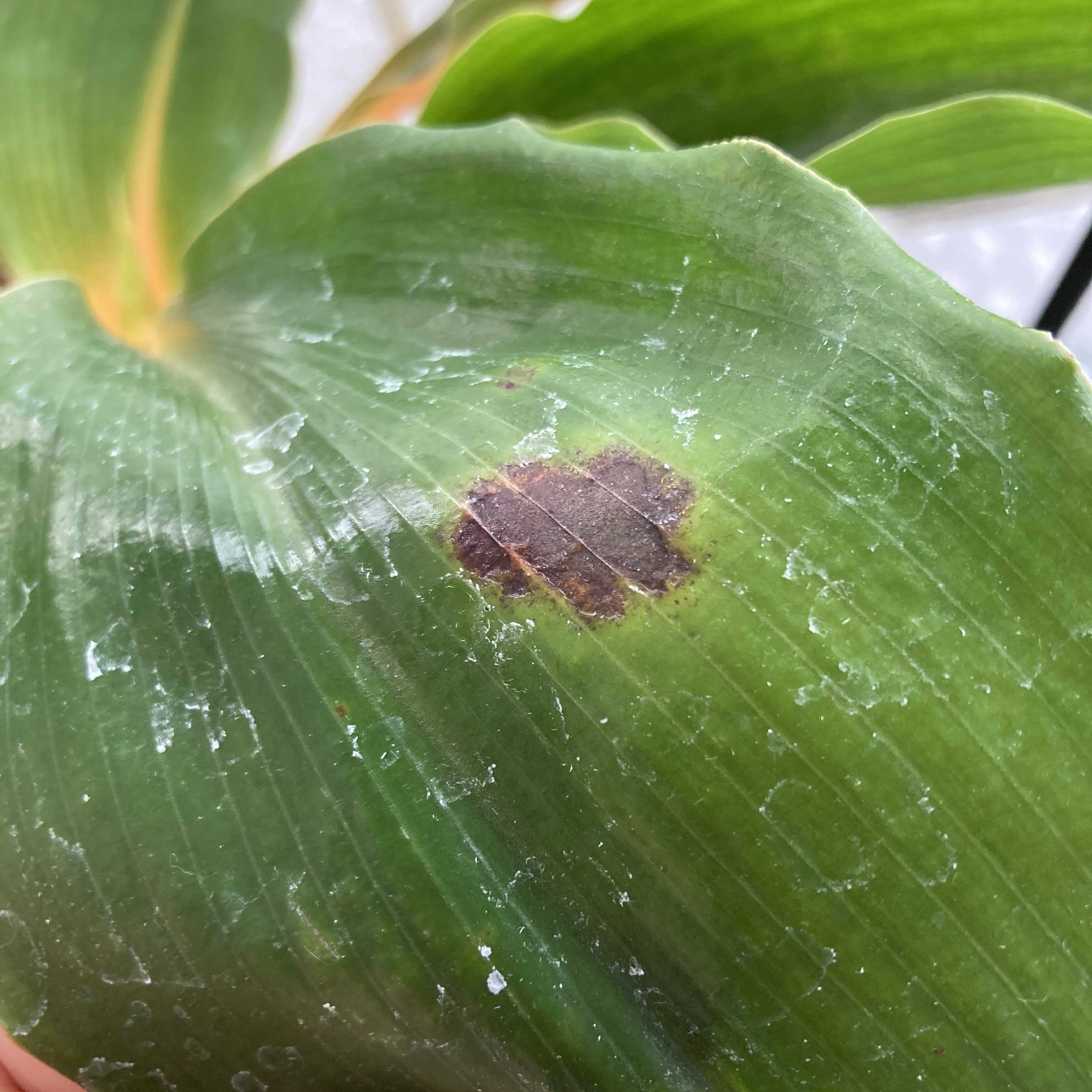 葉っぱのシミが黒くなり、葉先が痛み始めた。
