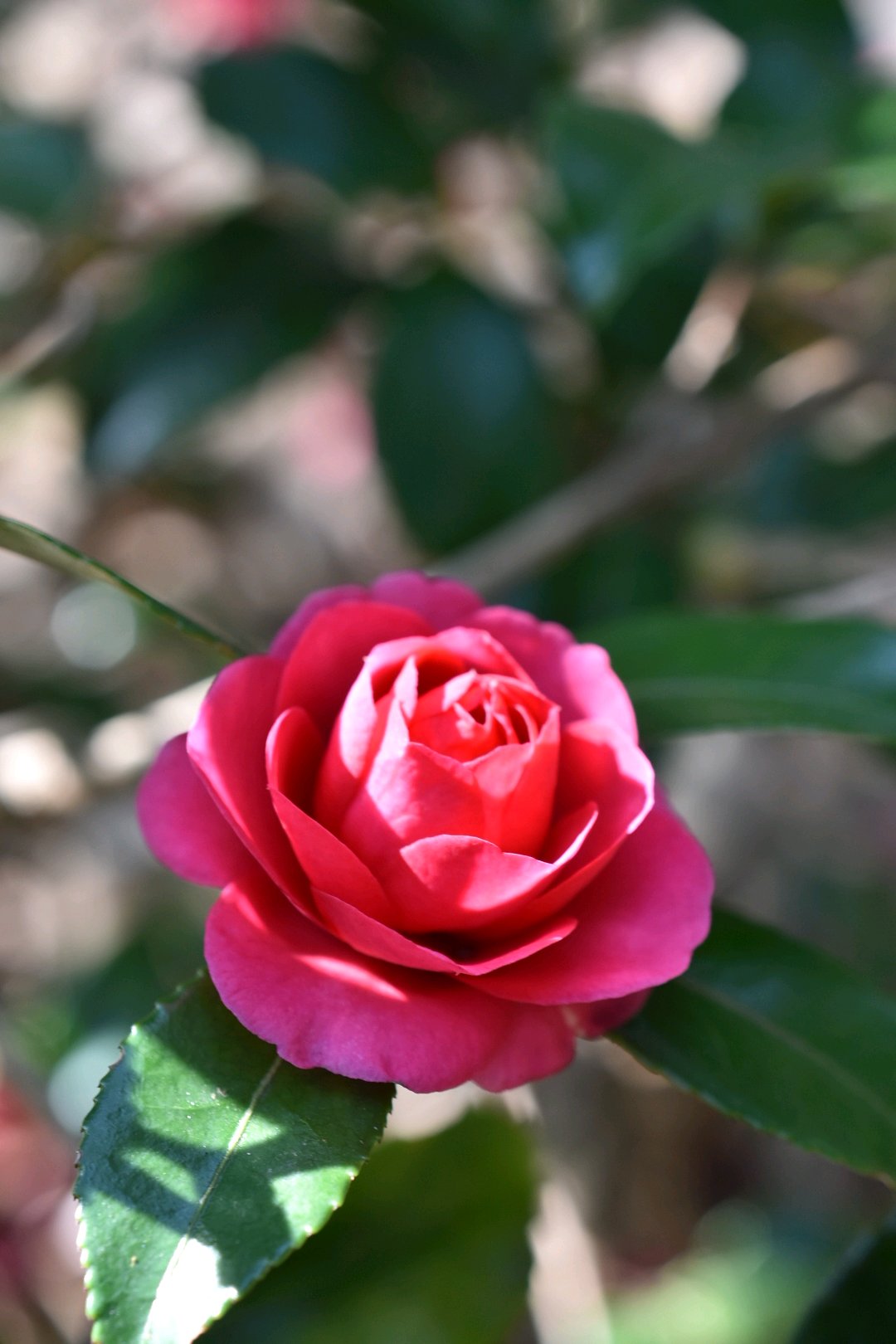絞りが綺麗で素敵な紅色の椿✨✨‼️