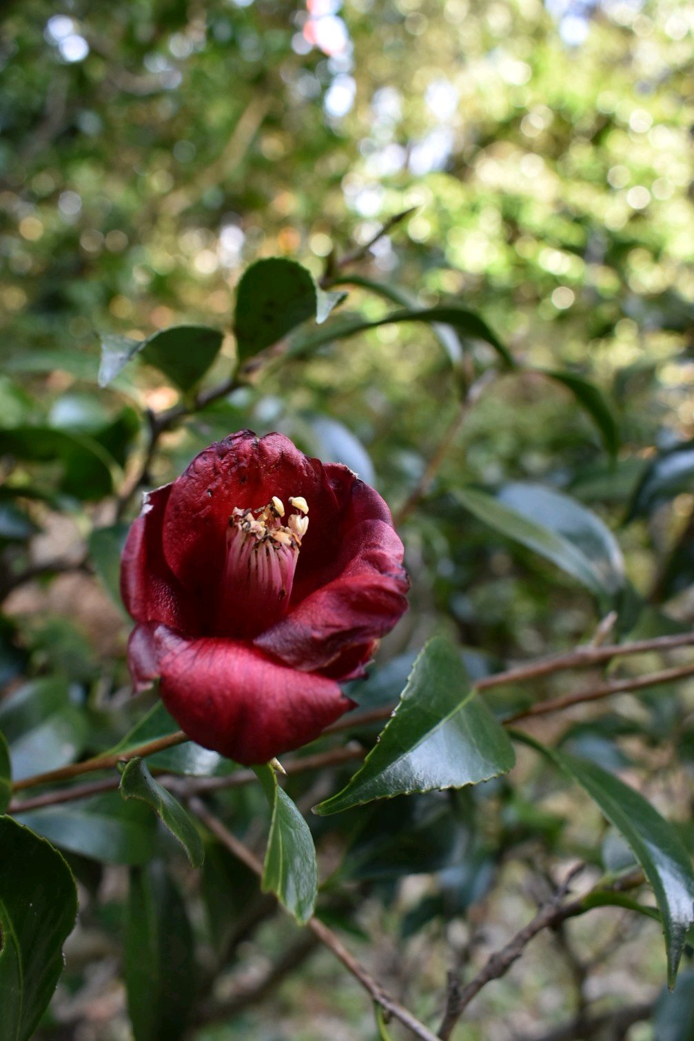 暗紅色の一重、筒咲き✨✨‼️