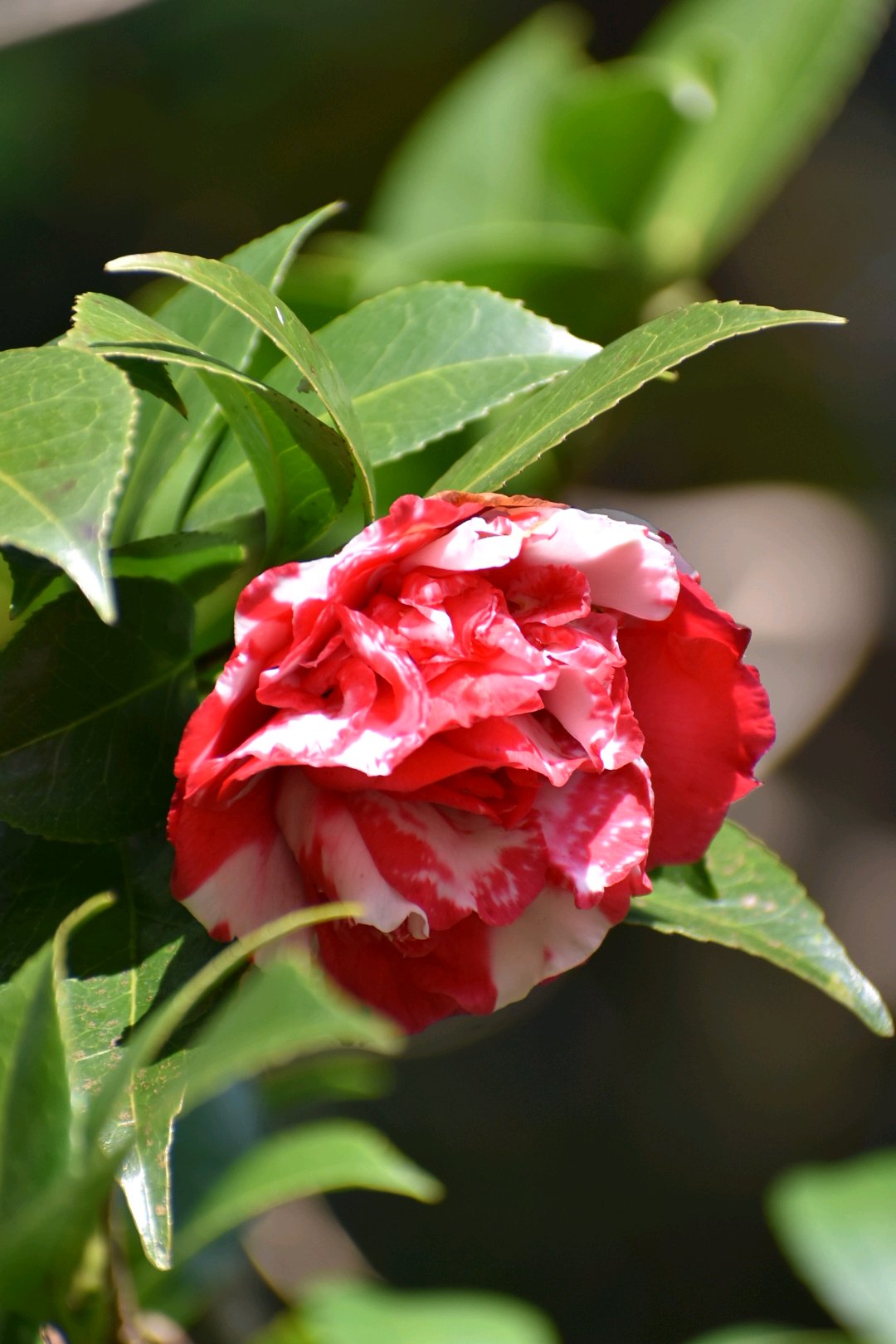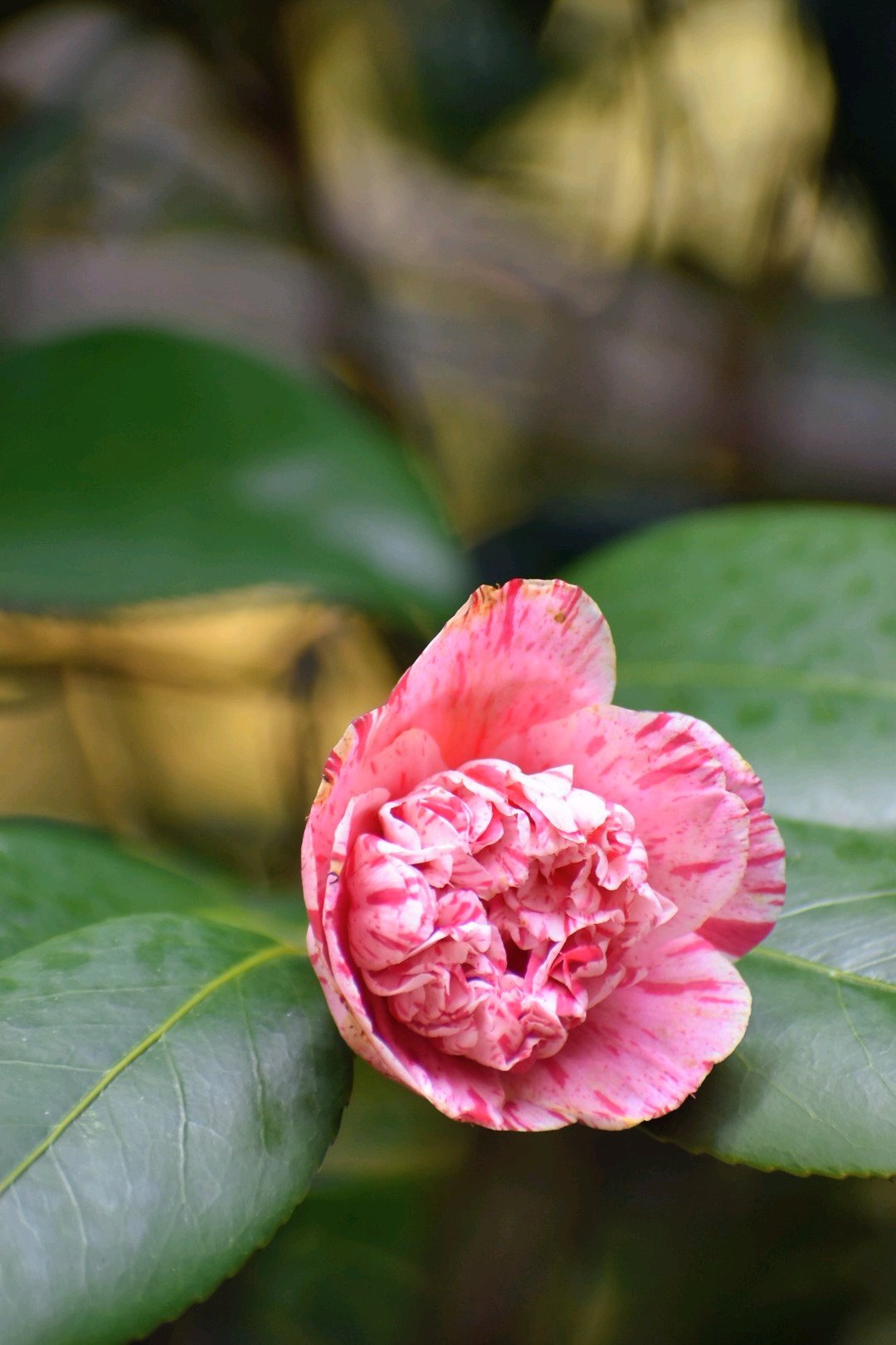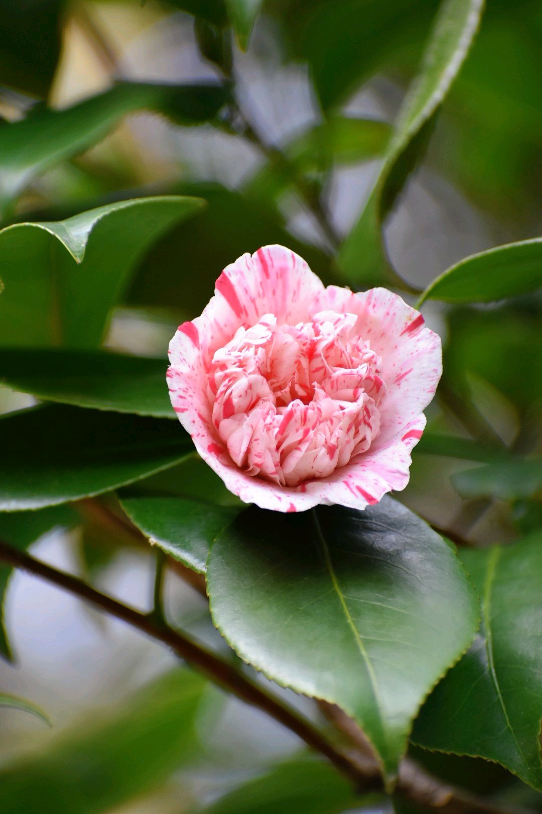 斑入りの八重咲きの椿✨✨