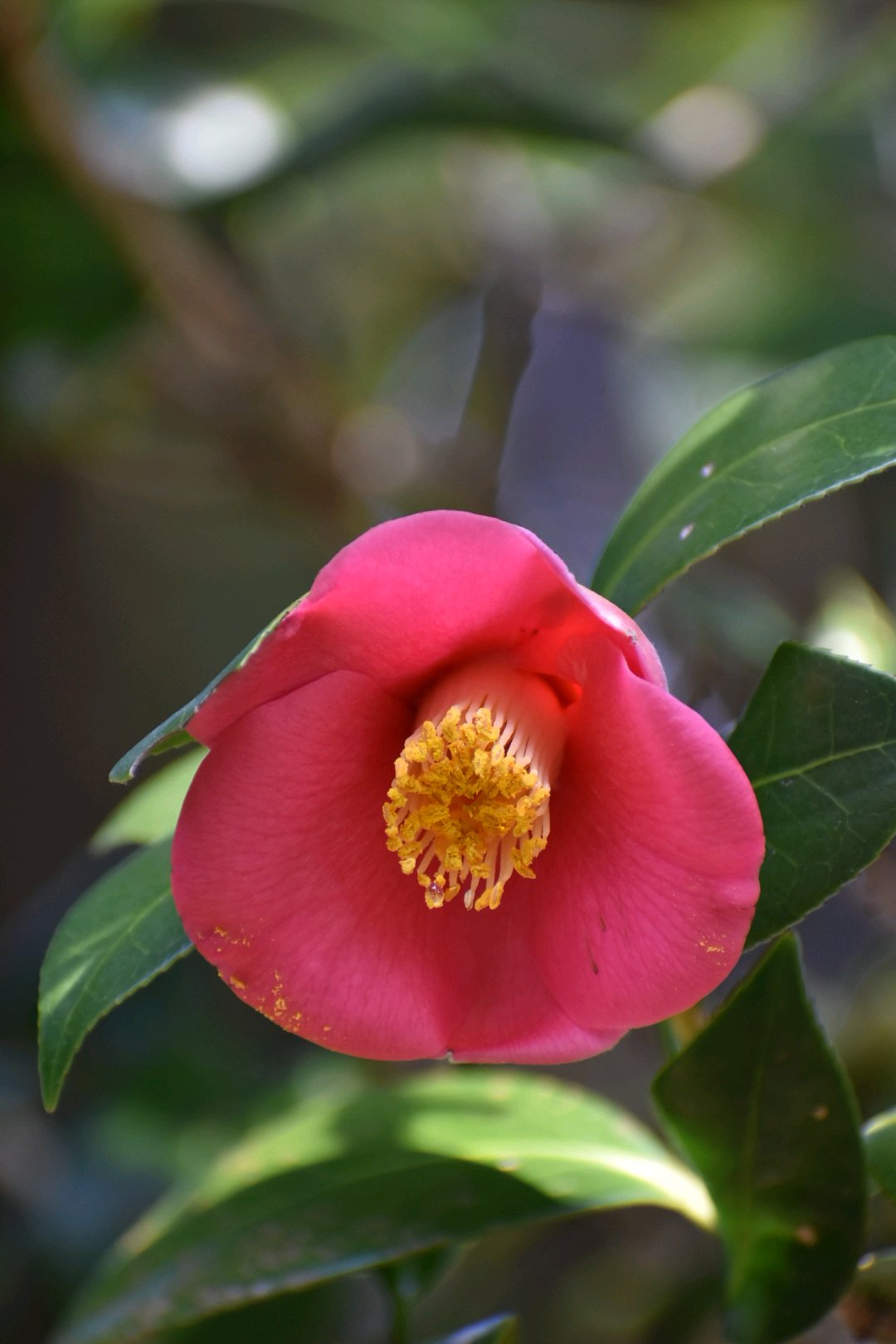 京都の浄瑠璃寺で発見された一重咲きの椿