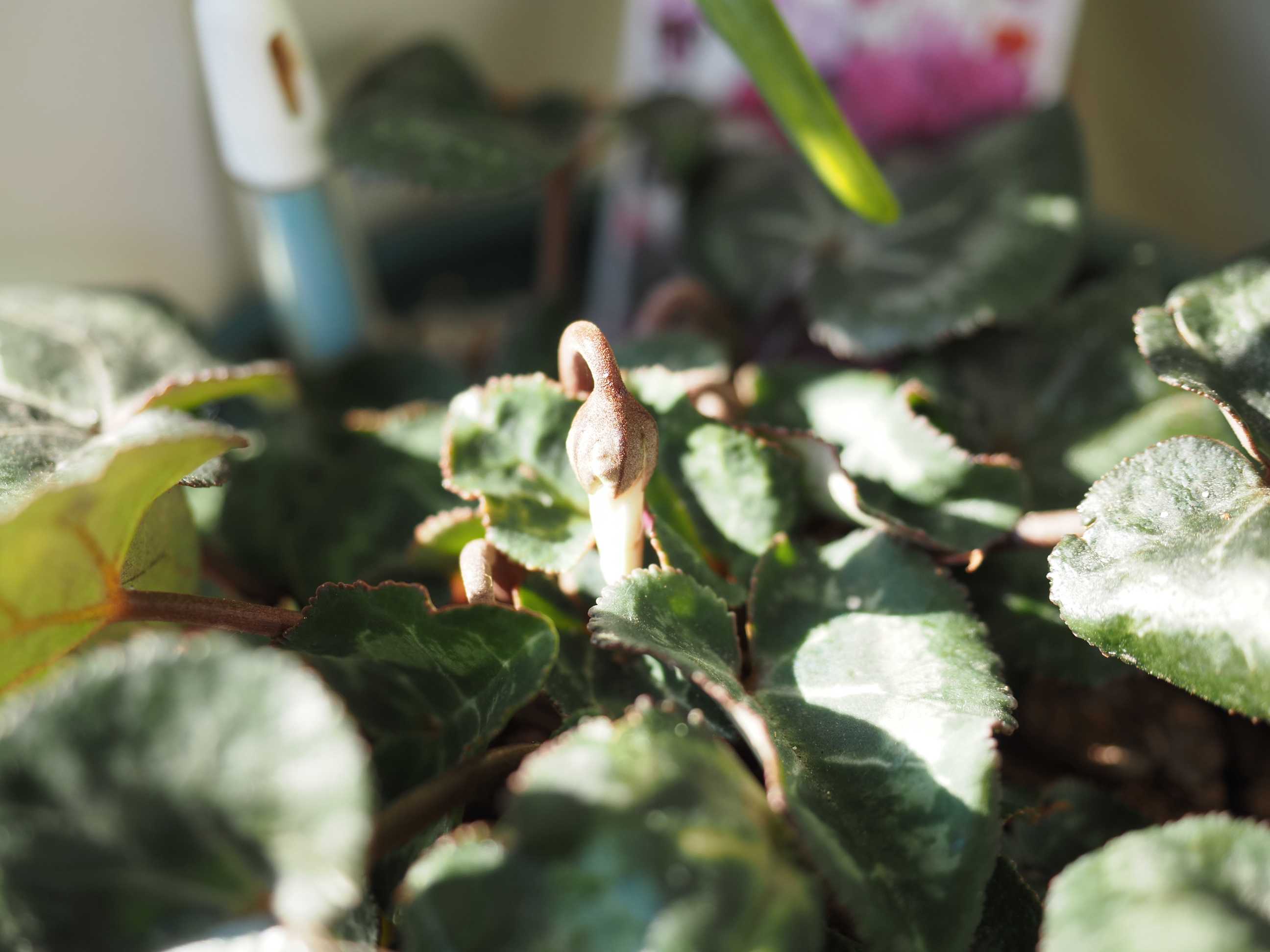 夏越しできたガーデンシクラメンのツボミがようやく見えてきました。
