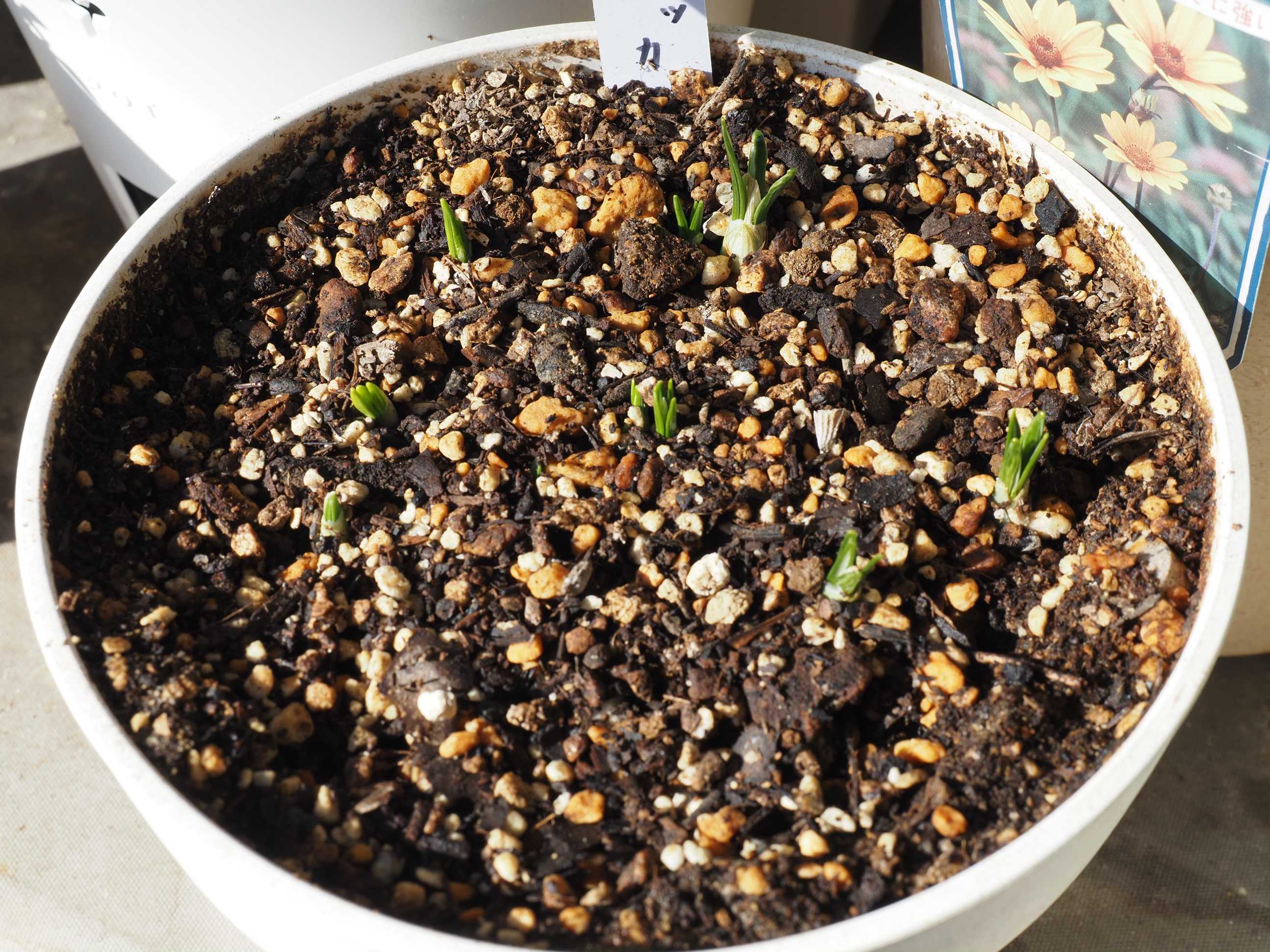 クロッカスの芽も出てきました。