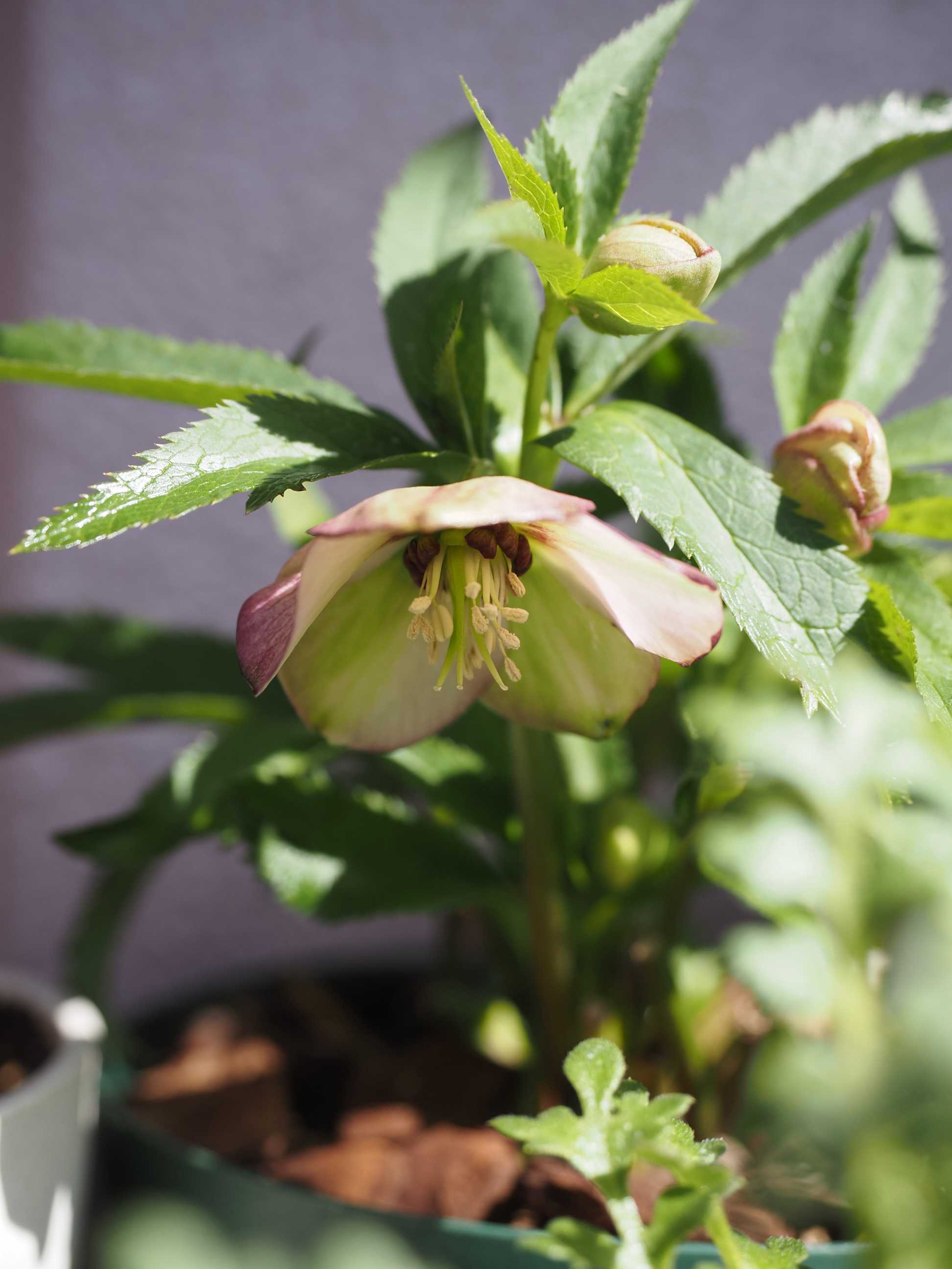クリスマスローズ プチドール紬。購入した昨年は花は咲きませんでしたが、2年目の今年は咲いてくれました。