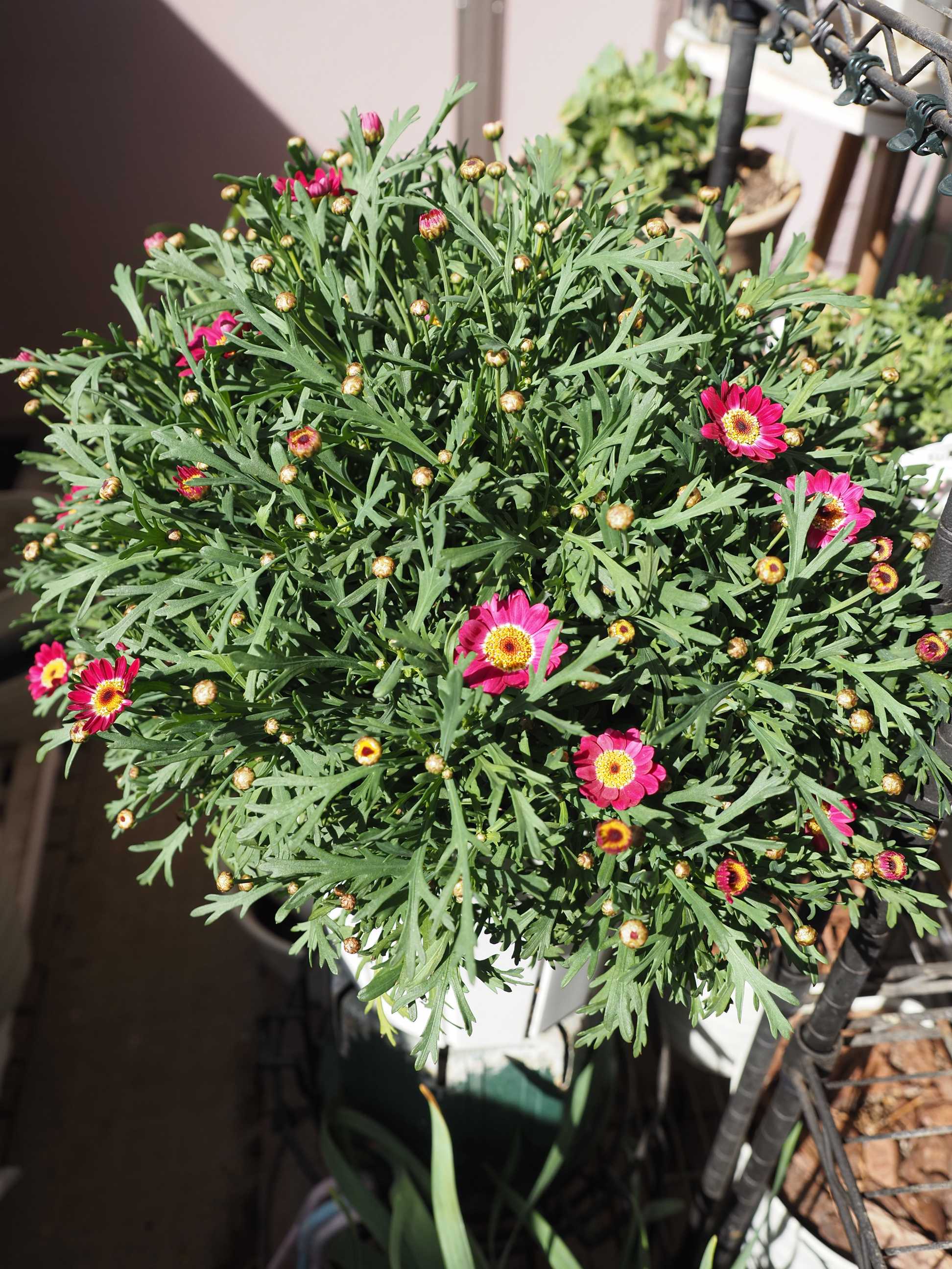 サントリーフラワーズさんのボンザマーガレットもちらほら花が見え始めました。