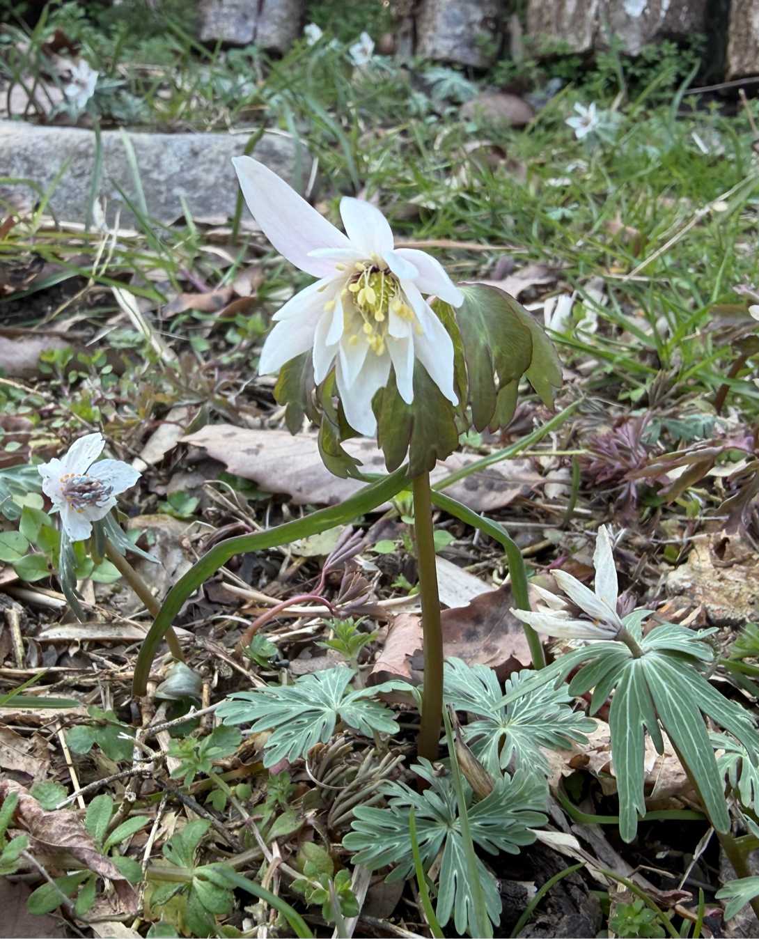 セツブンソウという名前ですが、節分よりちょっと後に咲き始めます。