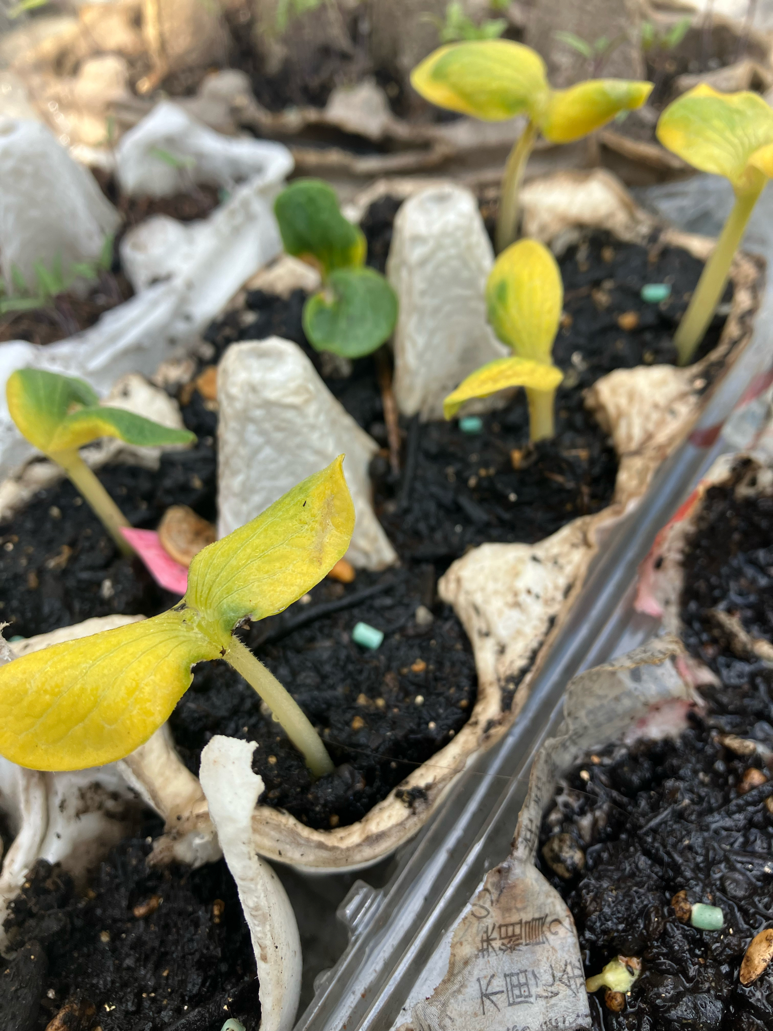 葉がとても黄色いのとナメクジがたくさんいるのが気になりすぎてます。一つは成長点が食われてしまって。もうダメもしれませんが諦めず見守っています。