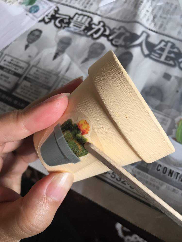 プラスチック製の容器にニスを出してハケで塗り塗り😉